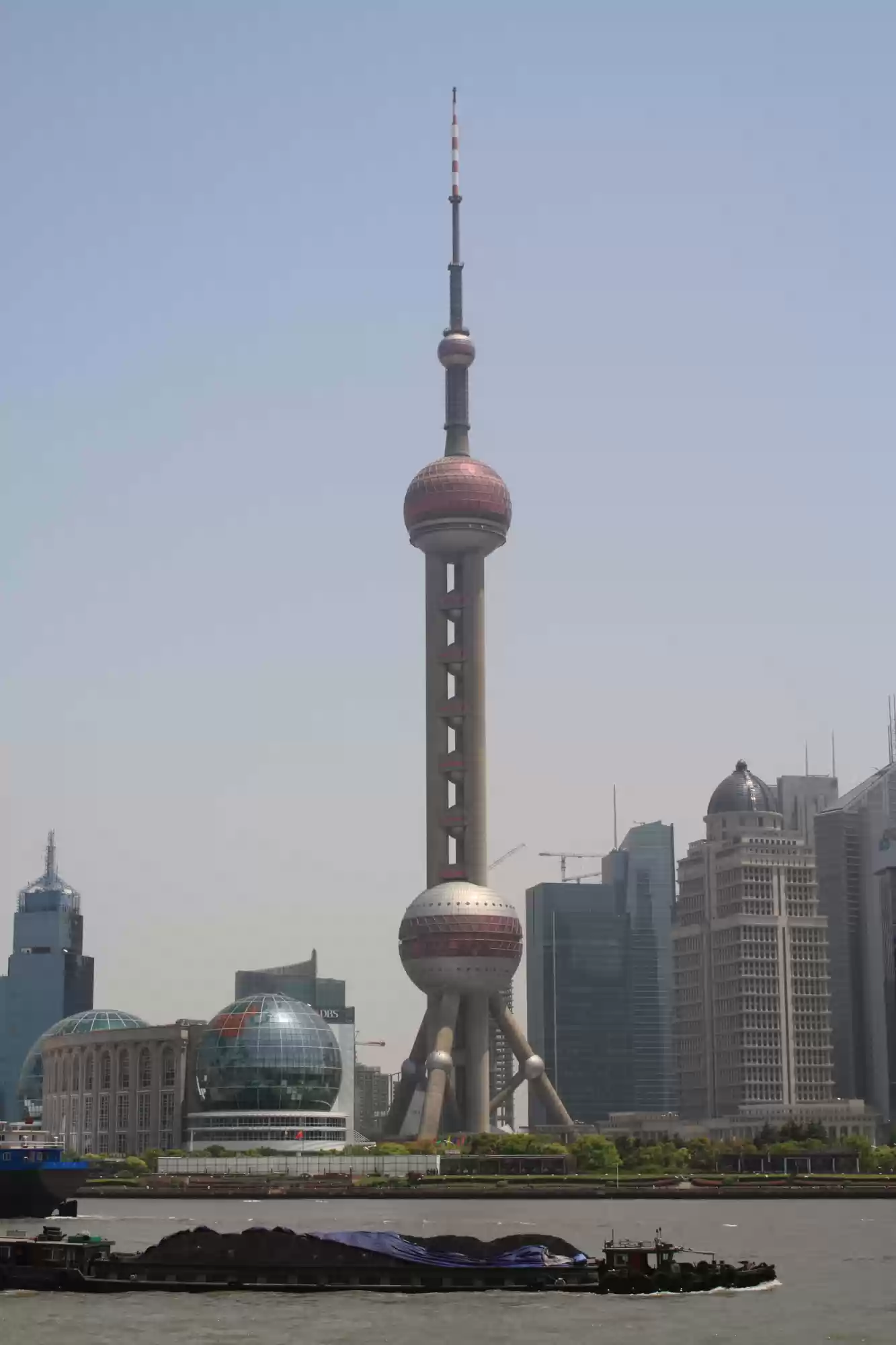 Pudong, opposite the Bund, is the symbol of the opening of China to the West. The Oriental Pearl TV tower, built in 1994, 468m high. Inside the Oriental Pearl. Jinmao tower (1998; 88 storeys; 420m) and World financial center (2008; 101 storeys; 494m). Jinmao tower and World financial center. Jinmao tower and World financial center. Jinmao tower and World financial center. Jinmao tower and World financial center. World financial center. World financial center. Old Chinese town Labels