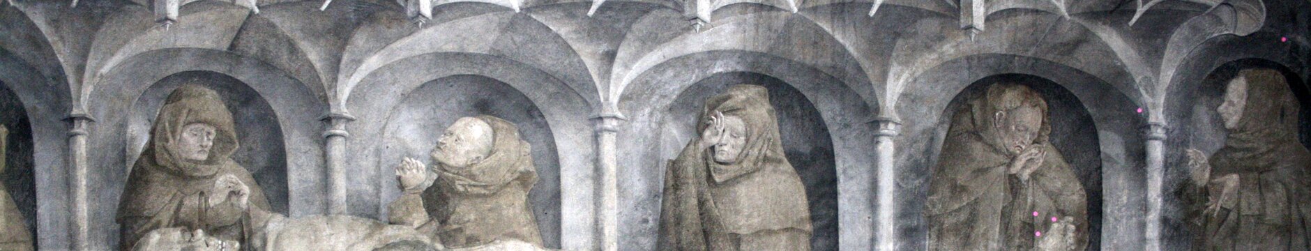 Saint-Maurice church is the oldest church in Annecy (1422-1491); it spans a canal. Choir stalls. Choir stalls. Trompe-l'oeil tomb of Philibert de Monthouz, advisor to the Duke of Savoy, 16th century. Trompe-l'oeil tomb of Philibert de Monthouz, advisor to the Duke of Savoy, 16th century. Weeping Dominican monks. Saint-Peter cathedral Labels