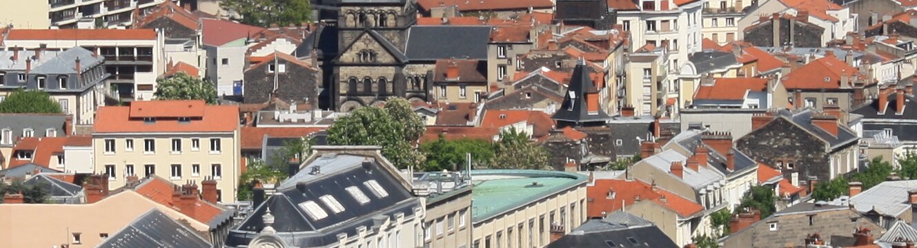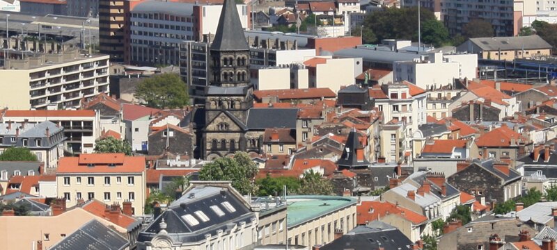 The 12th century romanesque basilica replaces a former 6th century church. The front gate was added in the 16th century. The current tower, built in 1823, replaces two towers that were destroyed during an earthquake in 1490. The 19th century tower, made of Volvic lava stone. The octogonal tower was added in 1843. The octogonal tower was added in 1843. Apse. Apse. Apse. Apse. Apse. Cathedral Labels