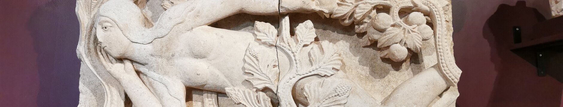Hotel Rolin, 15th century. Mosaic of the Greek authors, from a Roman villa. Head of a male deity. Neptune mosaic, 2nd-3rd century AD. Roman glass, 1st century BC-1st century AD. Roman glass, 1st century BC-1st century AD. Crater mosaic. Plate with a lamb, late 5th century. Plate with a lamb, late 5th century. Sarcophagus of Saint Francovée, 6th century. Sarcophagus of Saint Francovée, 6th century. Mosaic of Bellérophon, riding Pegasus, slaying the chimera, 2nd century, heavily restored. Mosaic of Bellérophon, riding Pegasus, slaying the chimera, 2nd century, heavily restored. Shale and bone objects, 2nd-3rd centuries. Bronze keys, Roman era? The ravishing of Mary Magdalene (?), ca. 1125-1150, limestone. The temptation of Eve, ca. 1125-1150, limestone. From the entrance of the Saint Lazarus cathedral. The temptation of Eve, ca. 1125-1150, limestone. The temptation of Eve, ca. 1125-1150, limestone. Military highschool Labels
