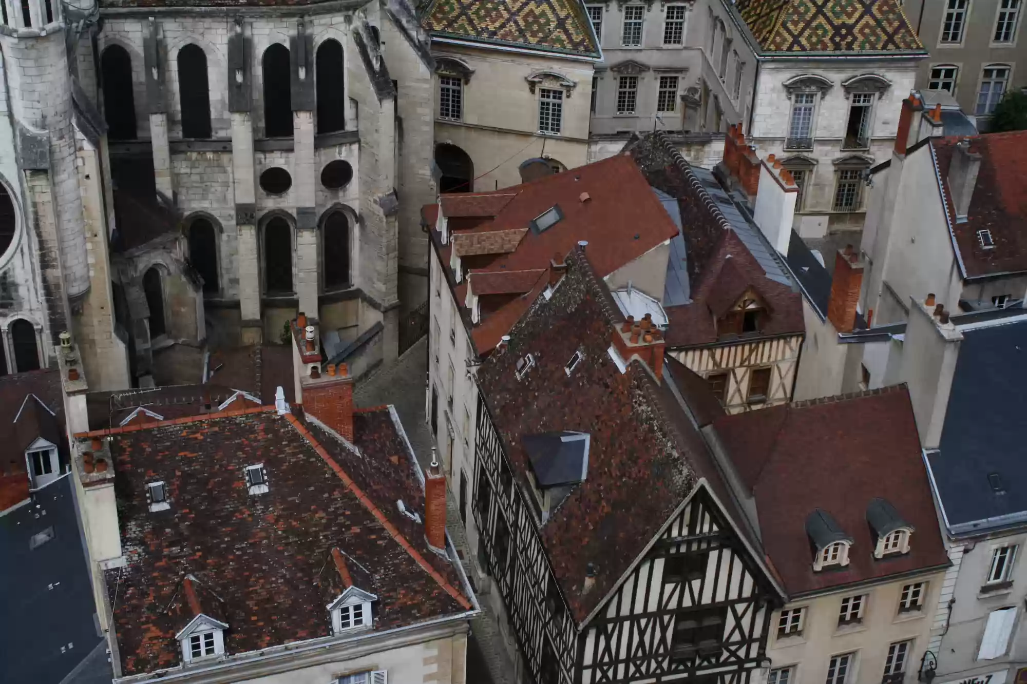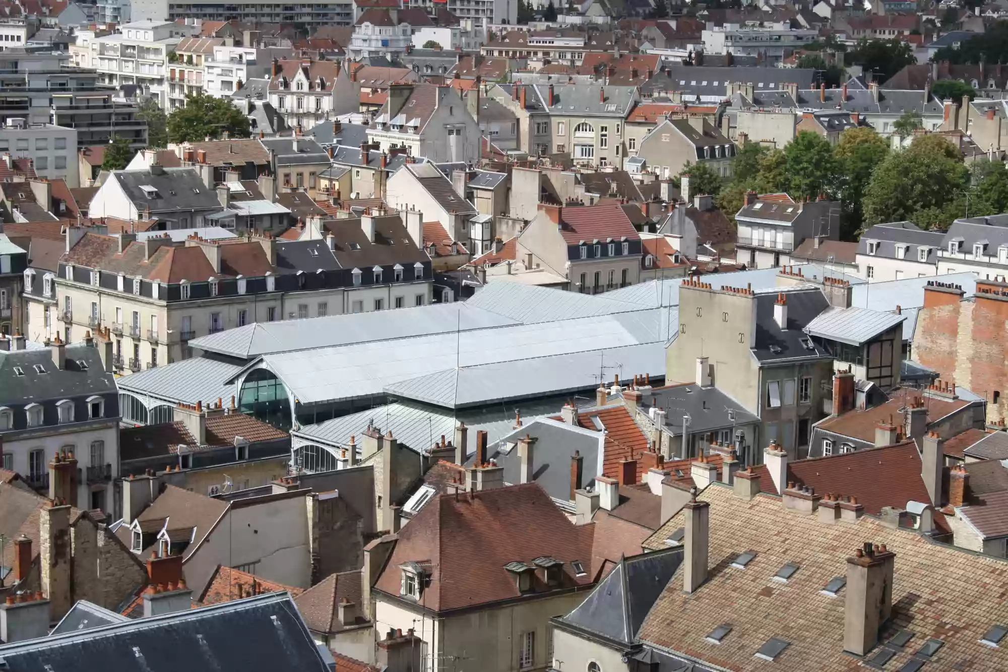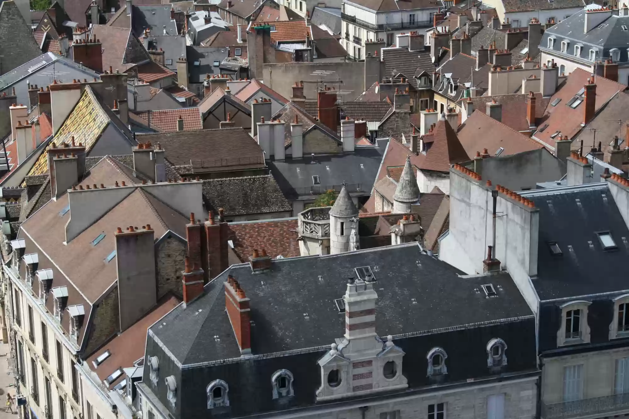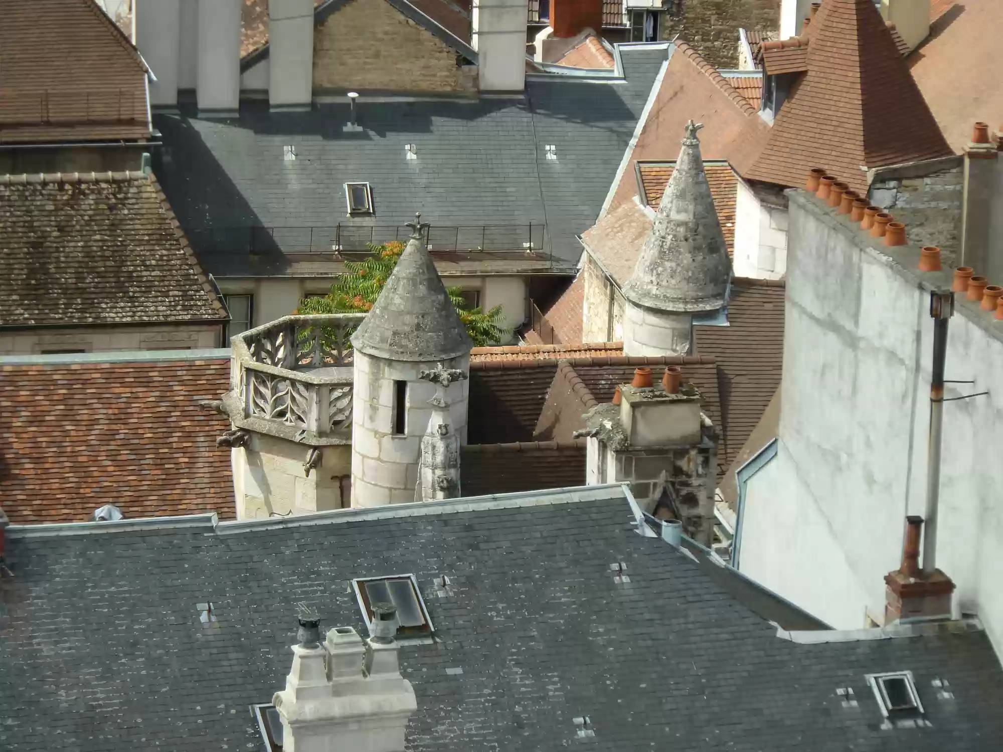 The tower of Philippe le Bon was built in the mid-15th century. The tower consists of a staircase. Covered market, 1870s. Labels