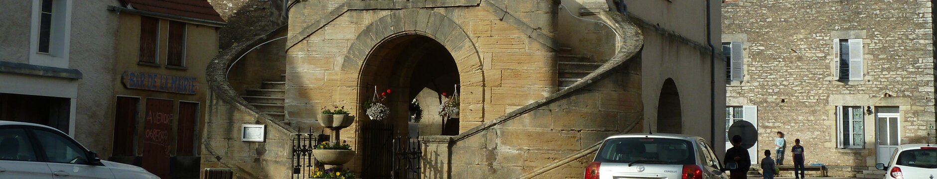 Townhall-lavoir, early 19th century. Townhall-lavoir, early 19th century. Townhall-lavoir, early 19th century. Romanesque keep of a former castle, 12th century. Notre-Dame churchMontureux-et-Prantigny Labels