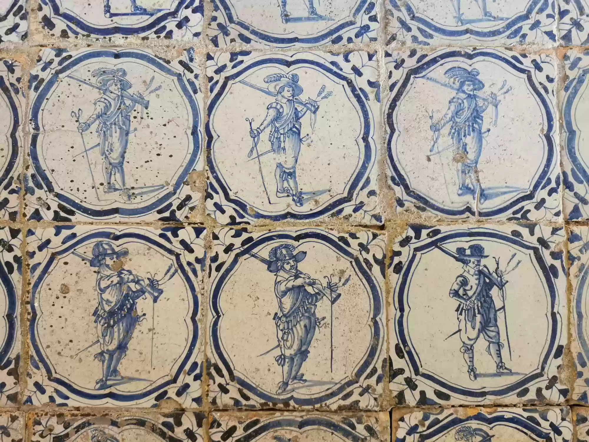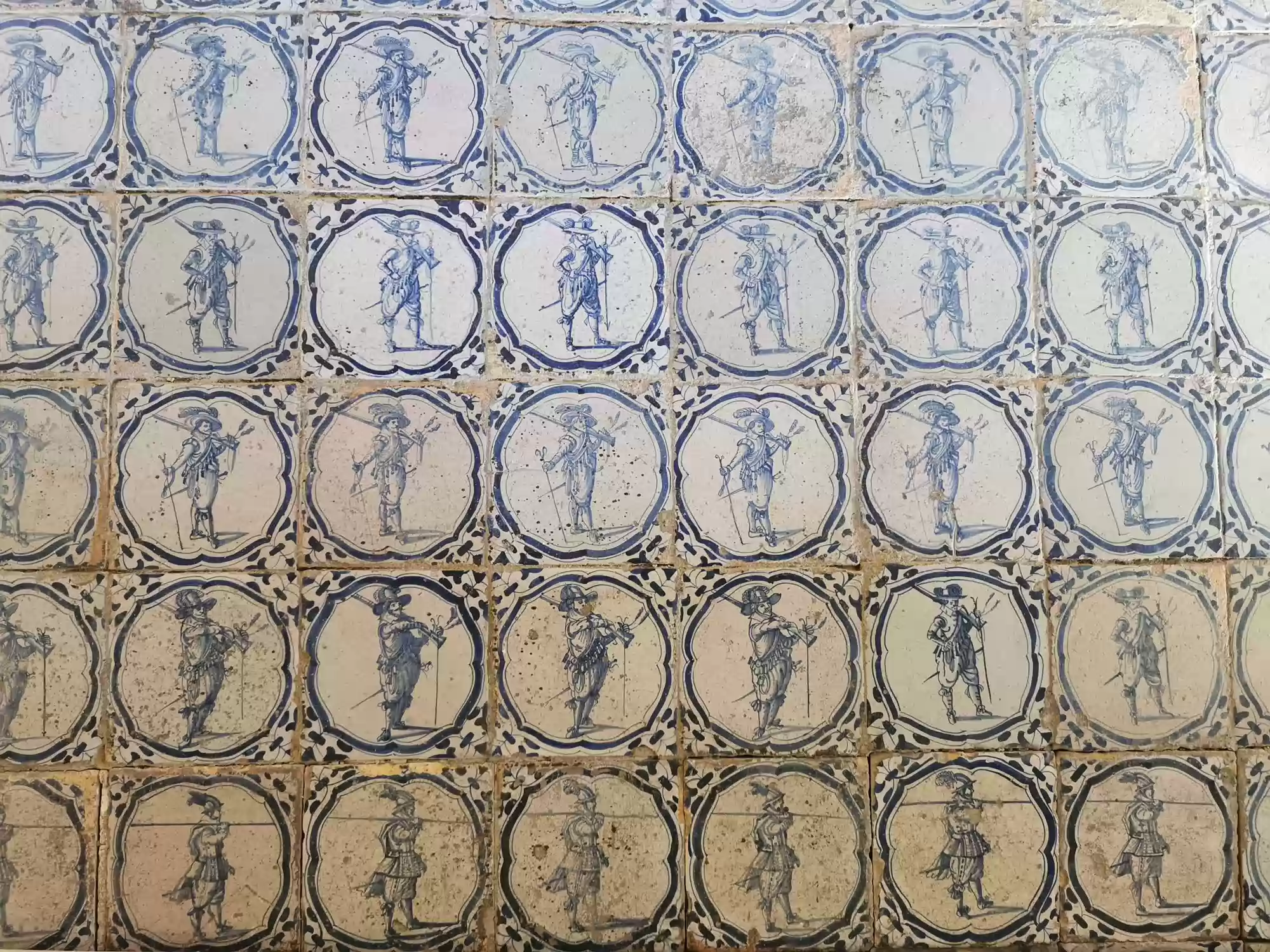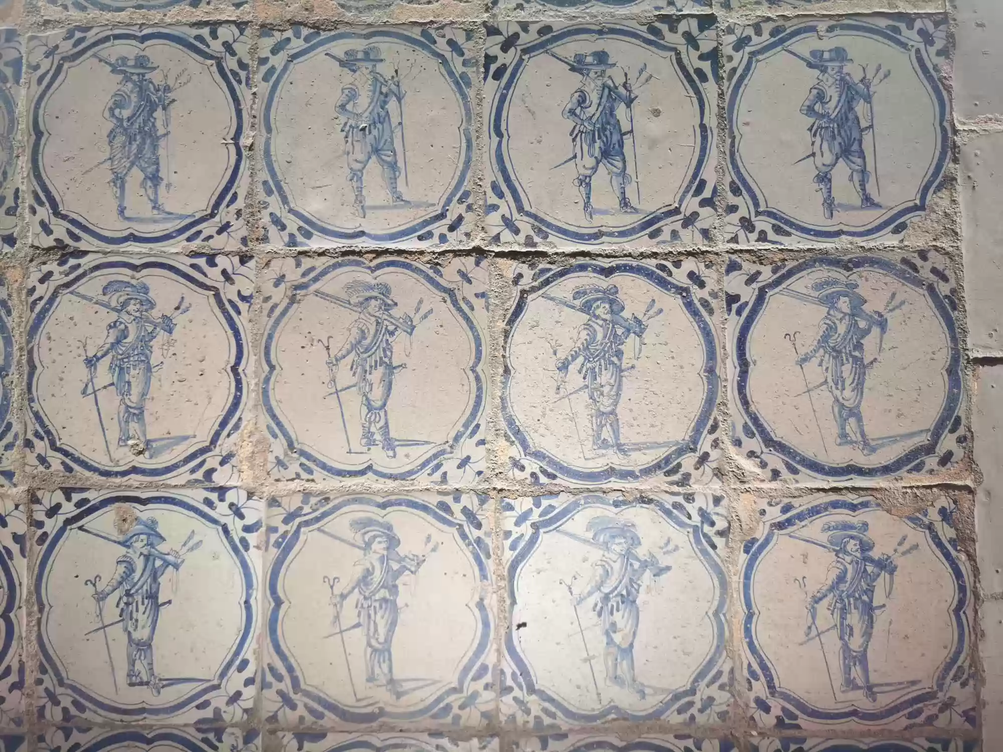 Delft tiles, handmade, 17th century. The entire floor of the room is covered by Delft squares.