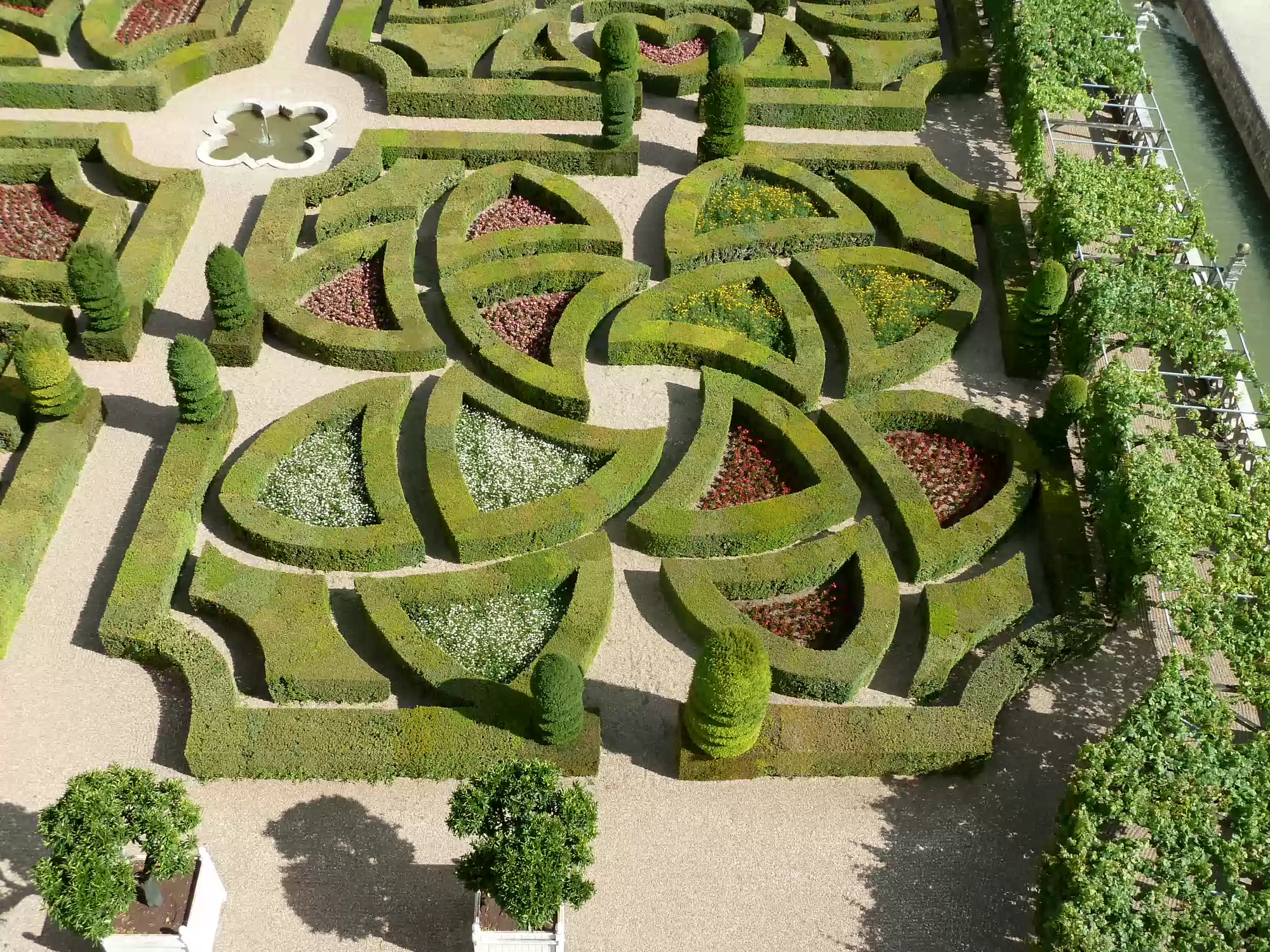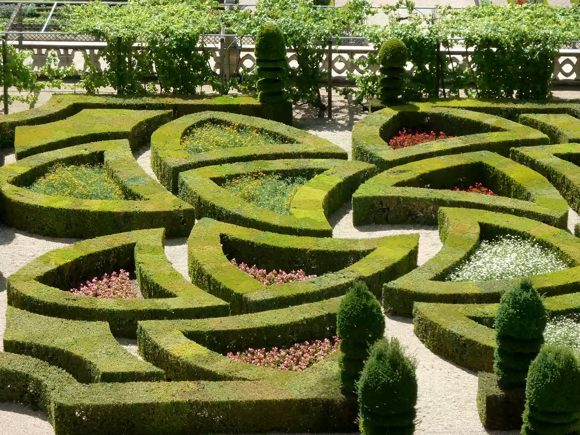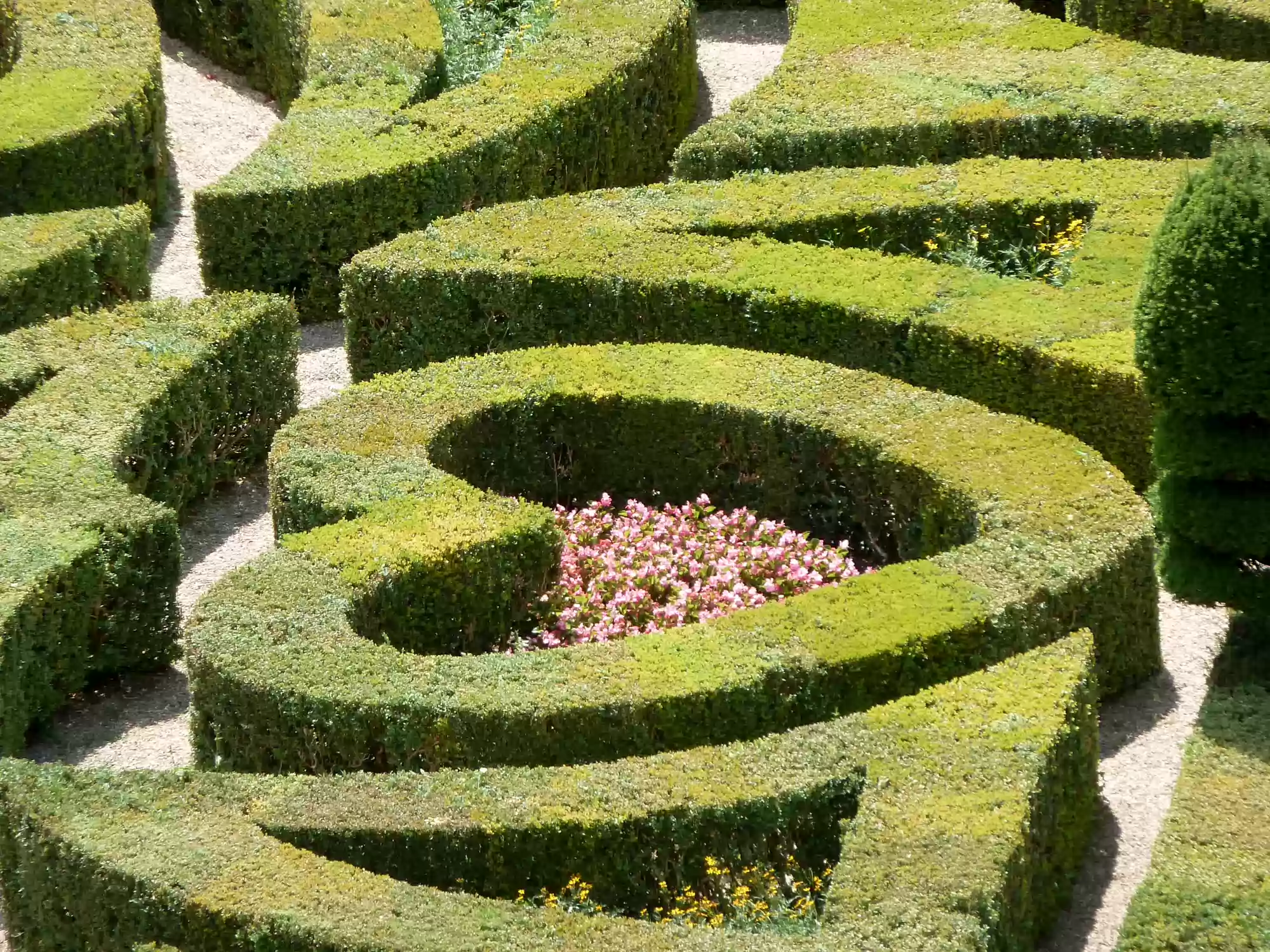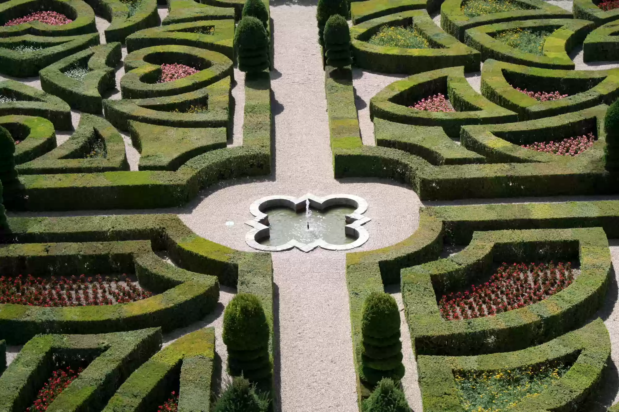 Ornamental garden, with 4 small squares and a larger square (back) depicting a maltese cross.