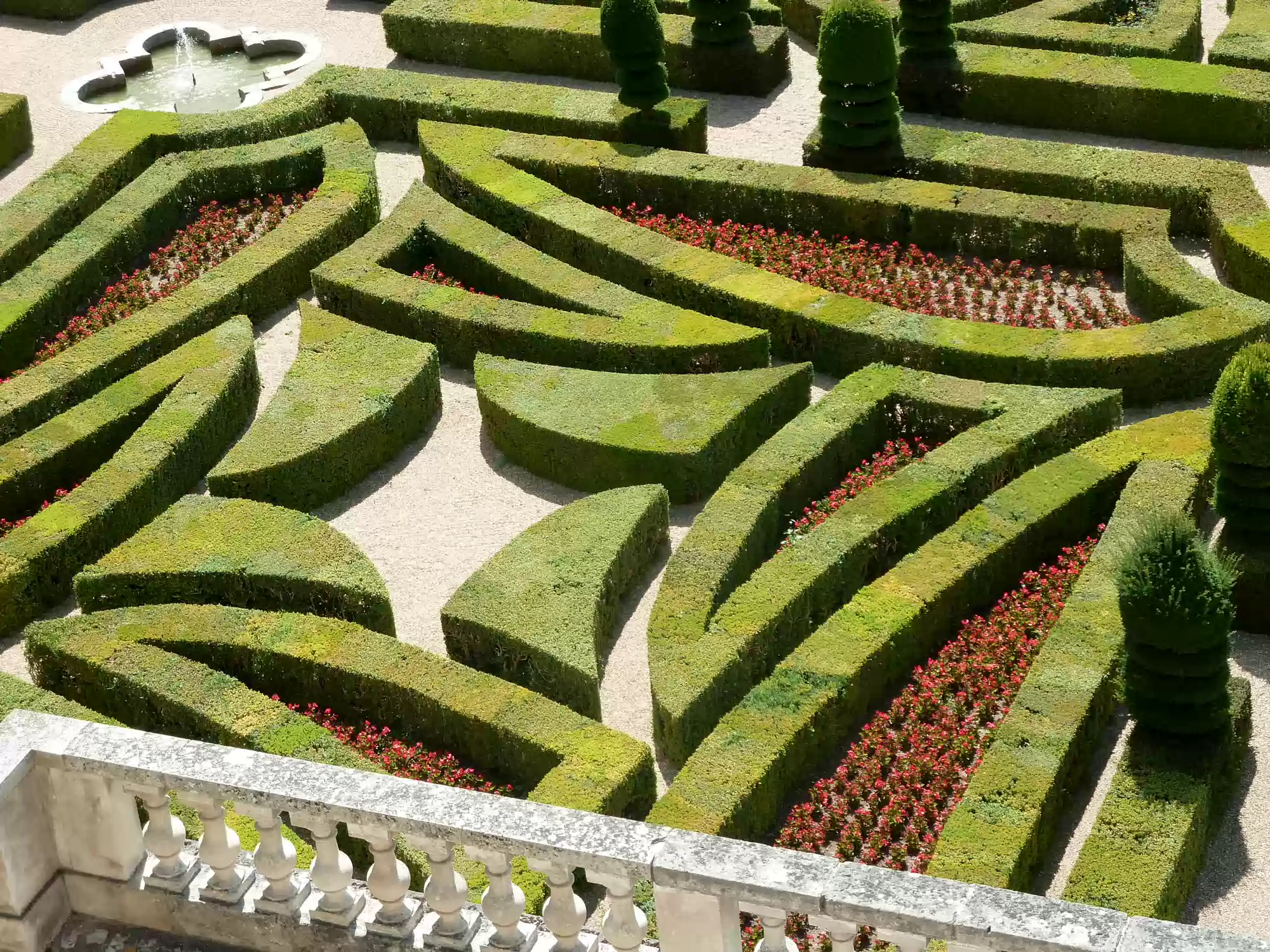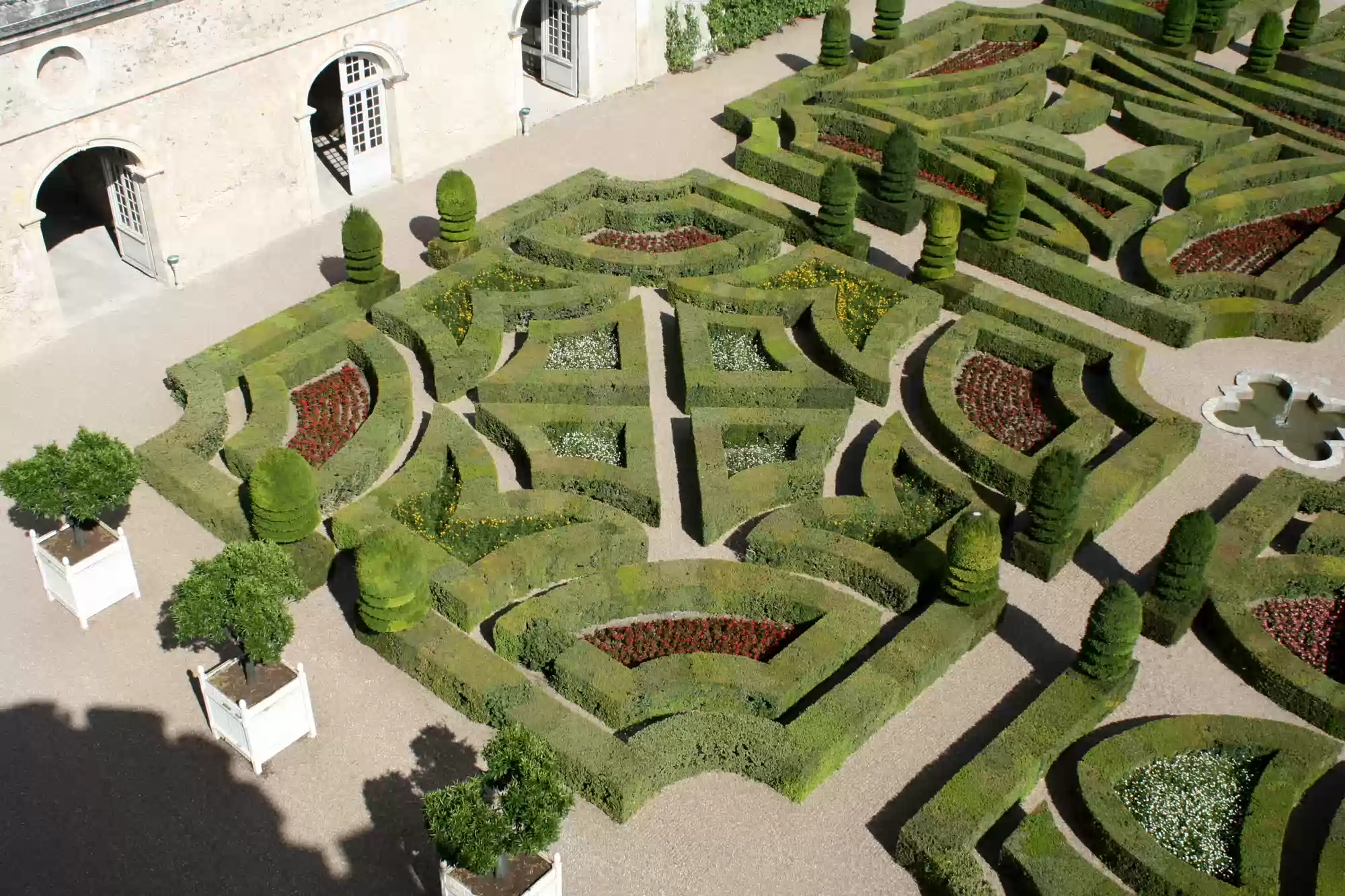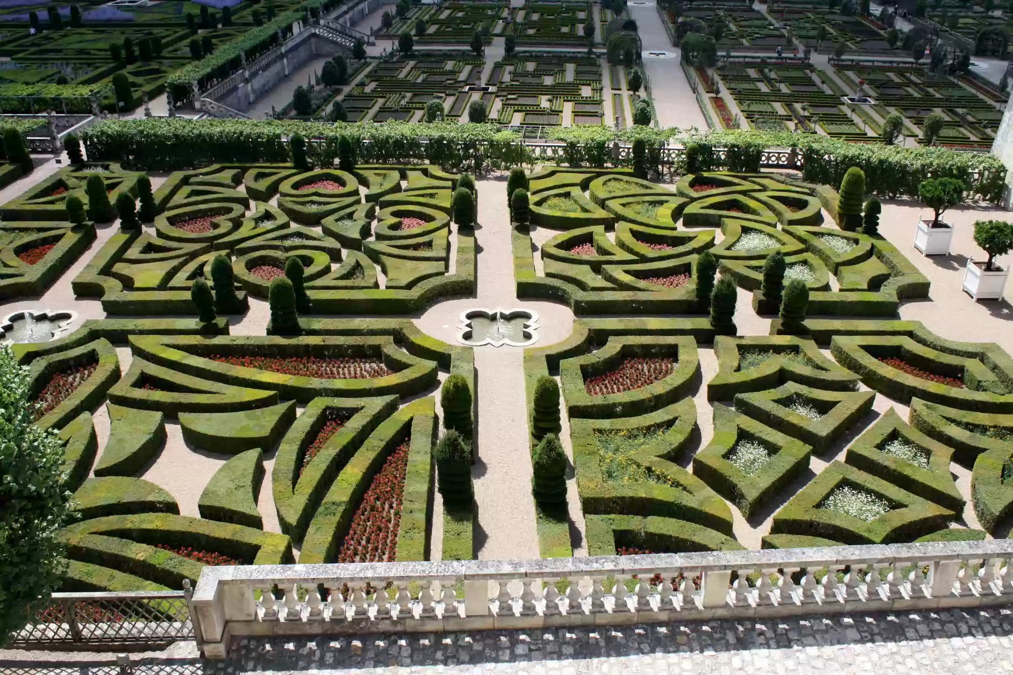 Ornamental garden, with 4 small squares and a larger square (back) depicting a maltese cross.