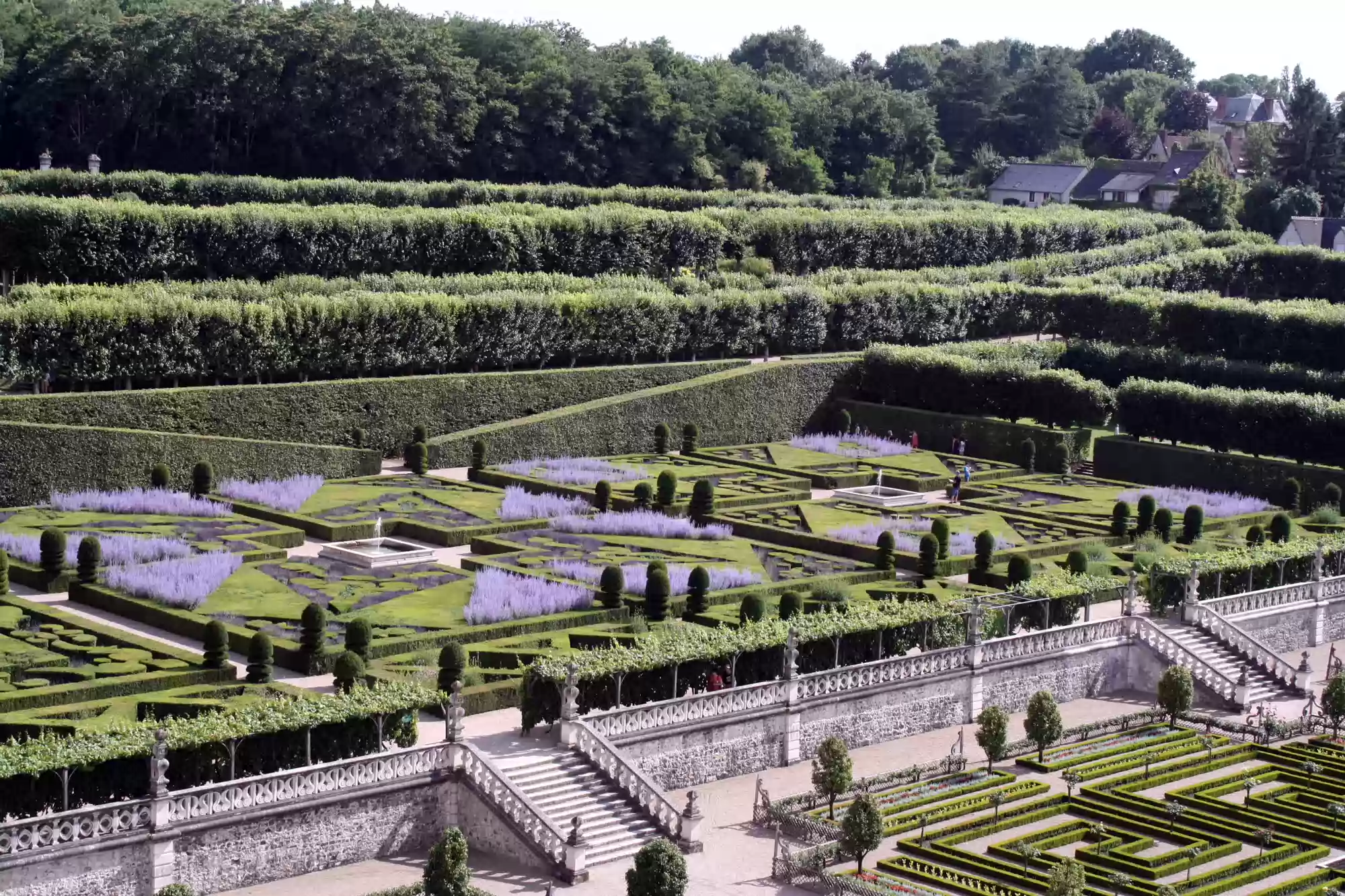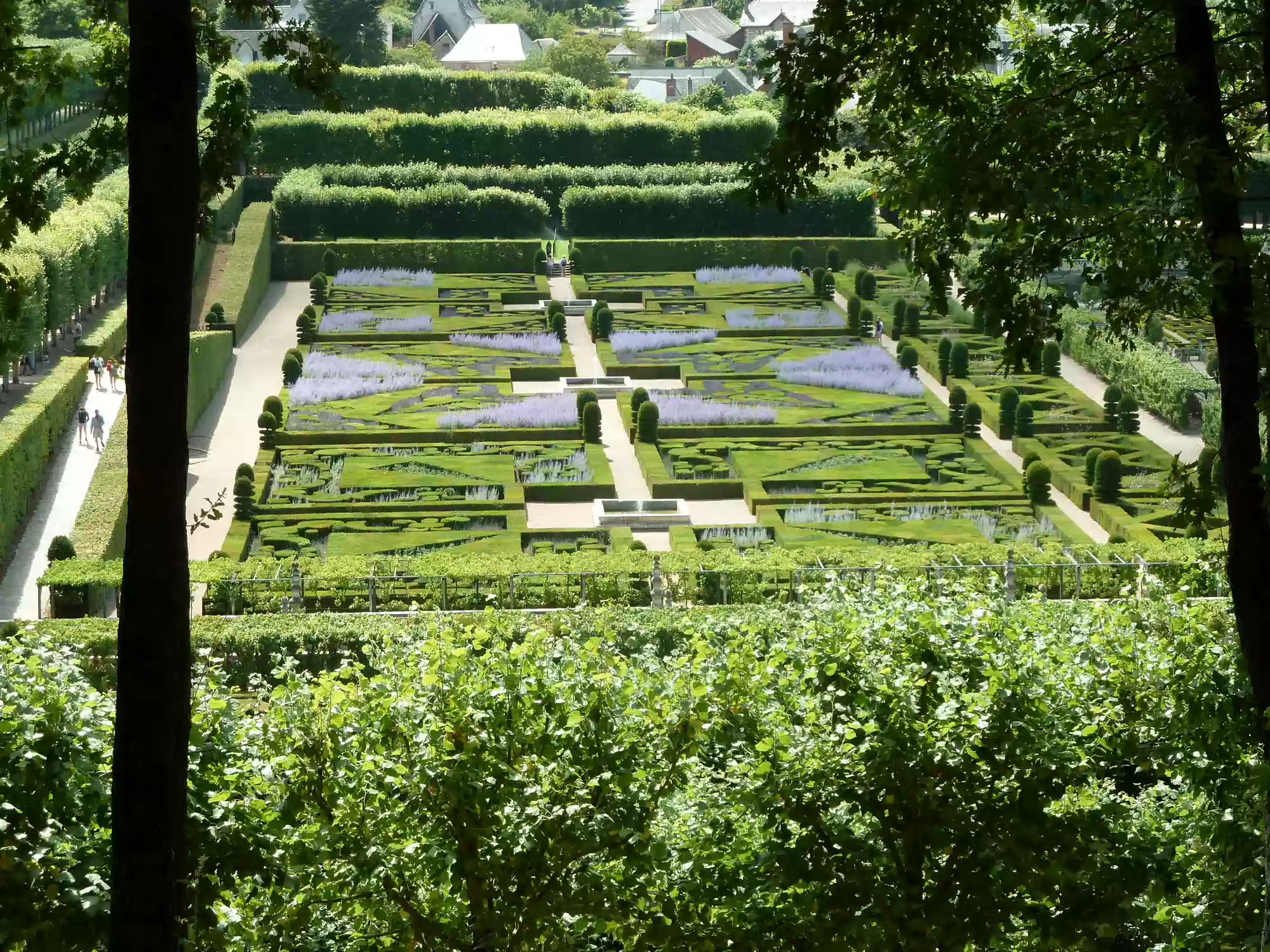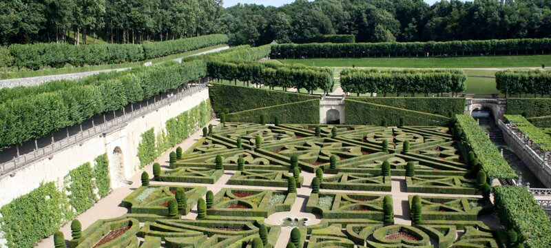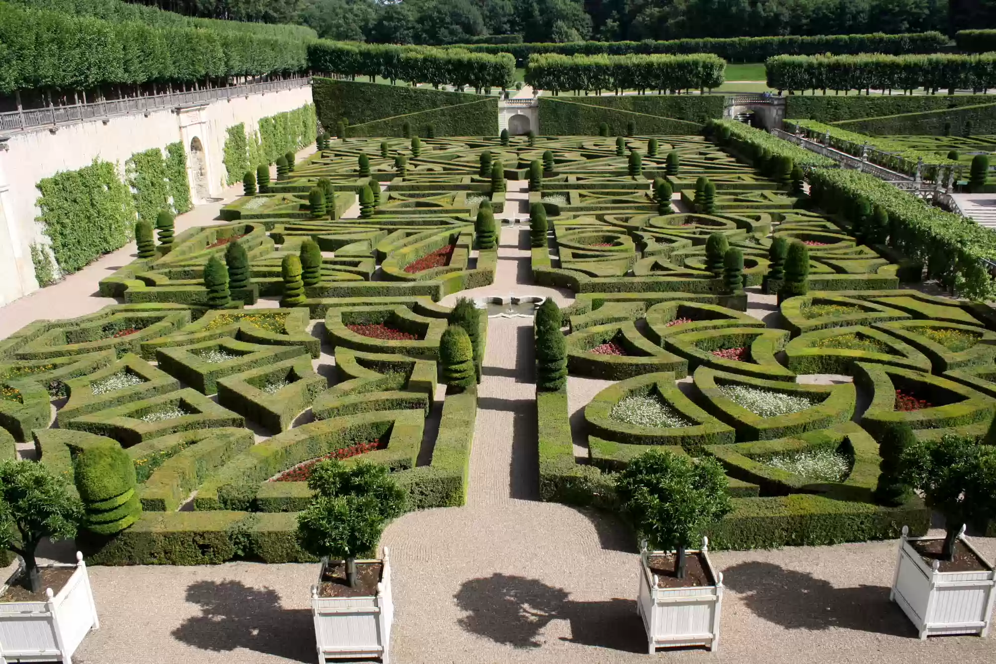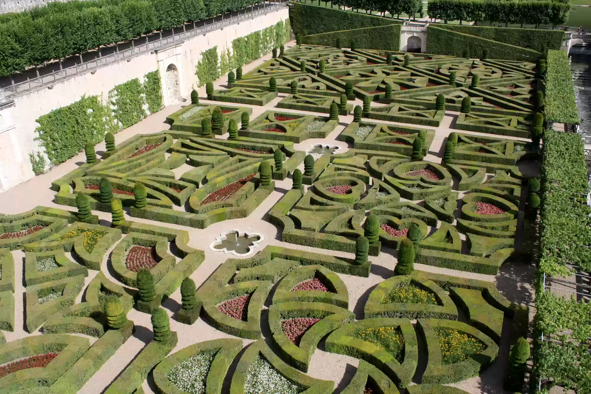 Ornamental garden, with 4 small squares and a larger square (back) depicting a maltese cross.