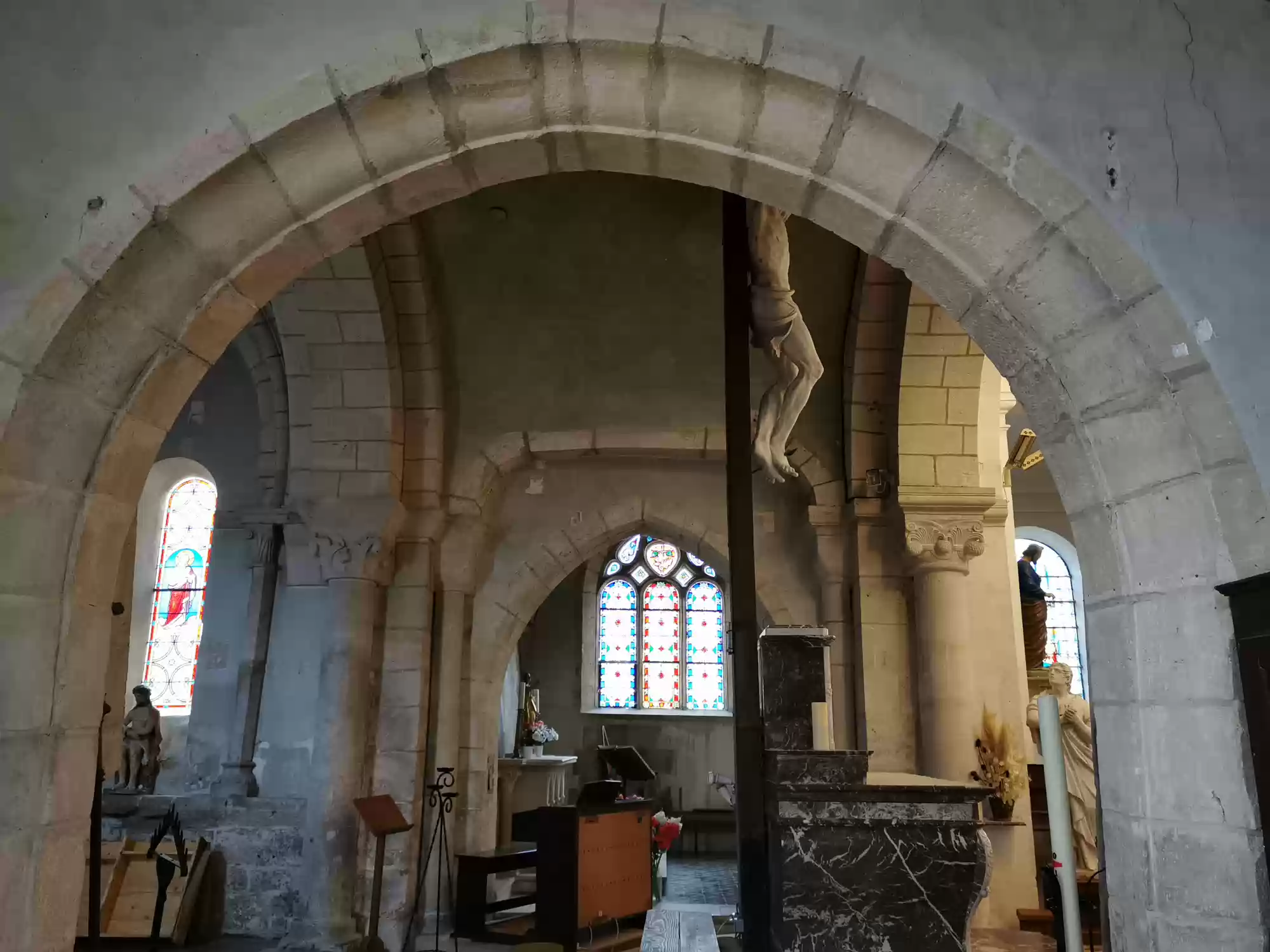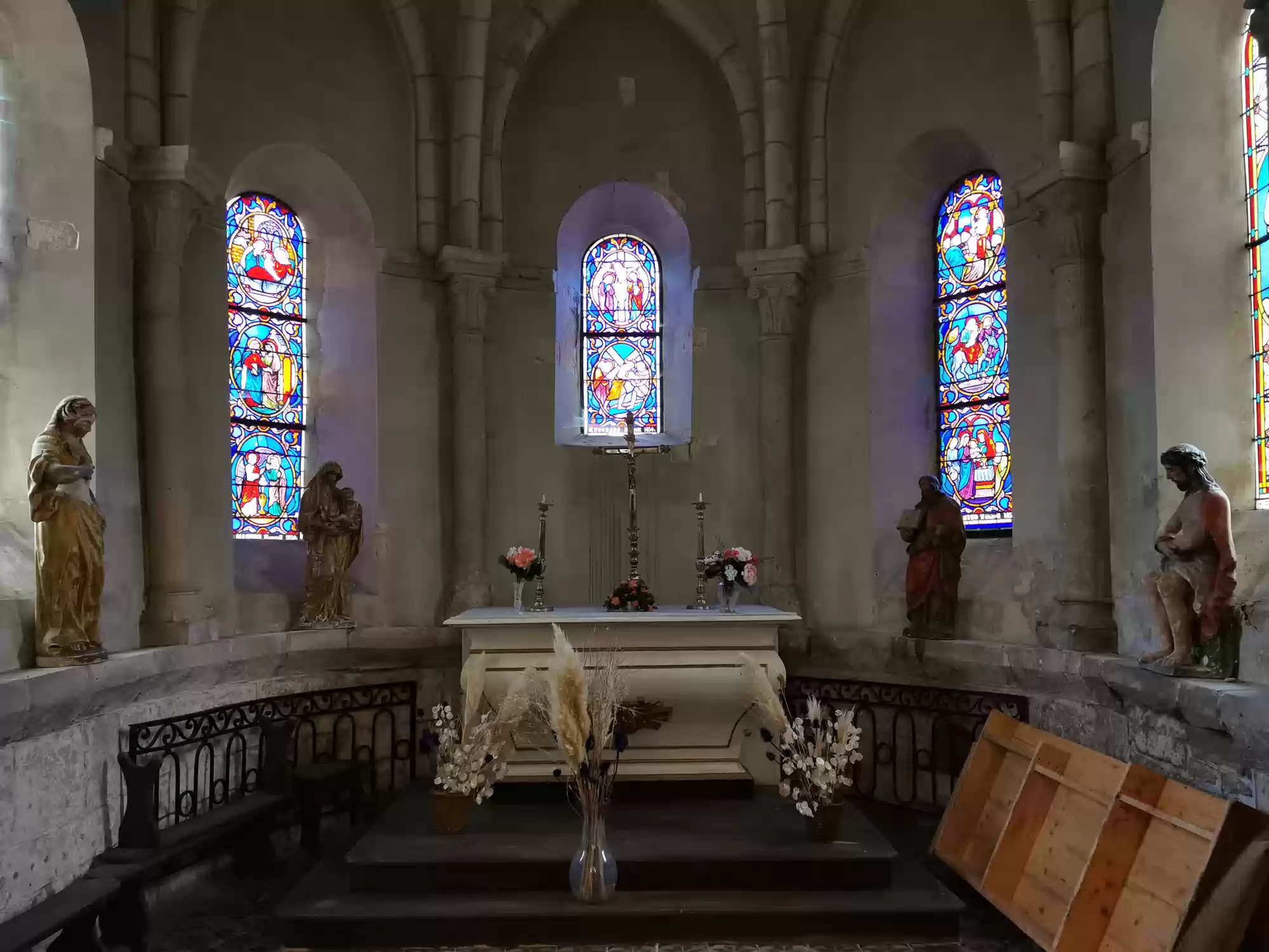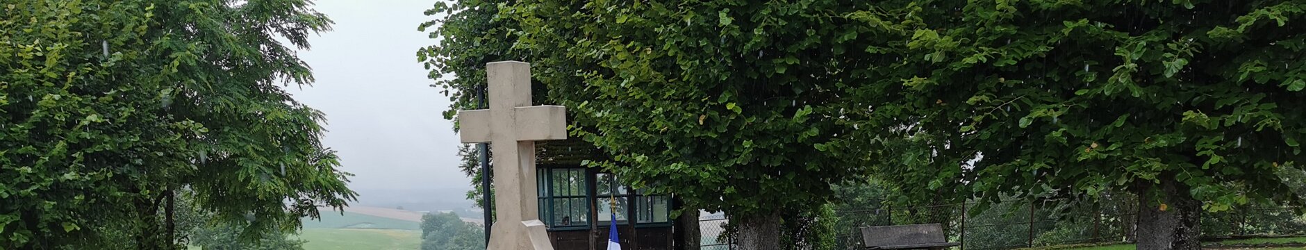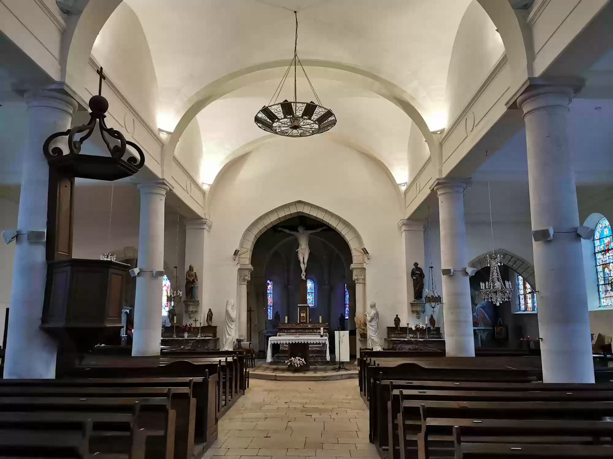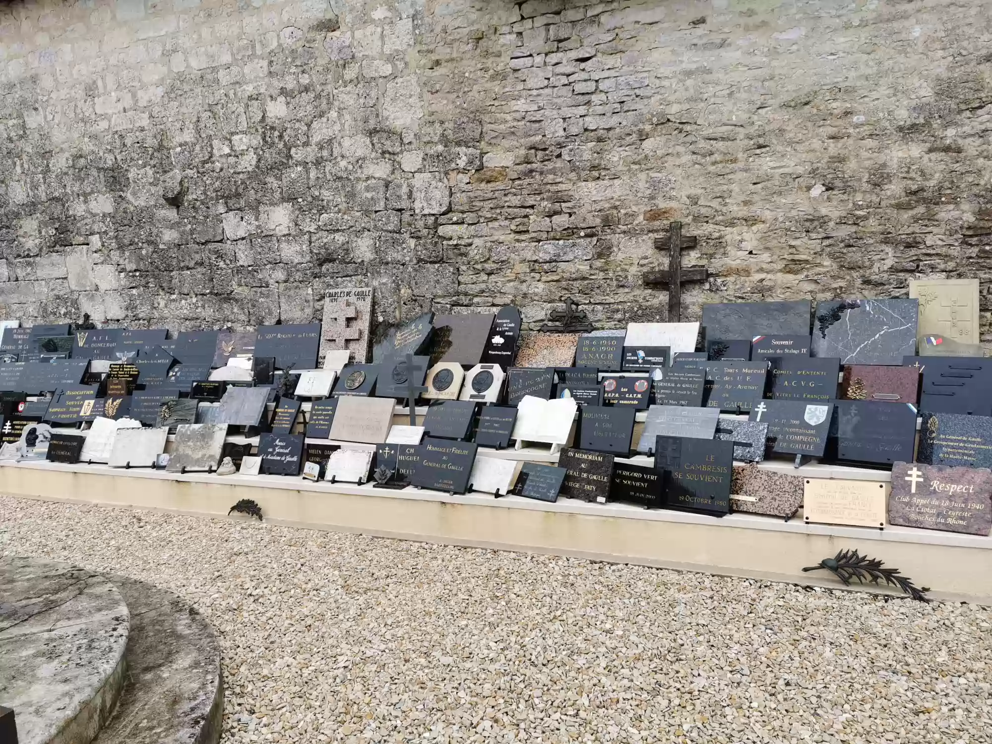 Church, choir from the 11th and 13th centuries, nave from the late 18th century. Church, choir from the 11th and 13th centuries, nave from the late 18th century. Tomb of Charles de Gaulle and his wife and their daughter Anne (left), and of their daughter Elizabeth (right). Tomb of Charles de Gaulle and his wife and their daughter Anne. Memorial Labels