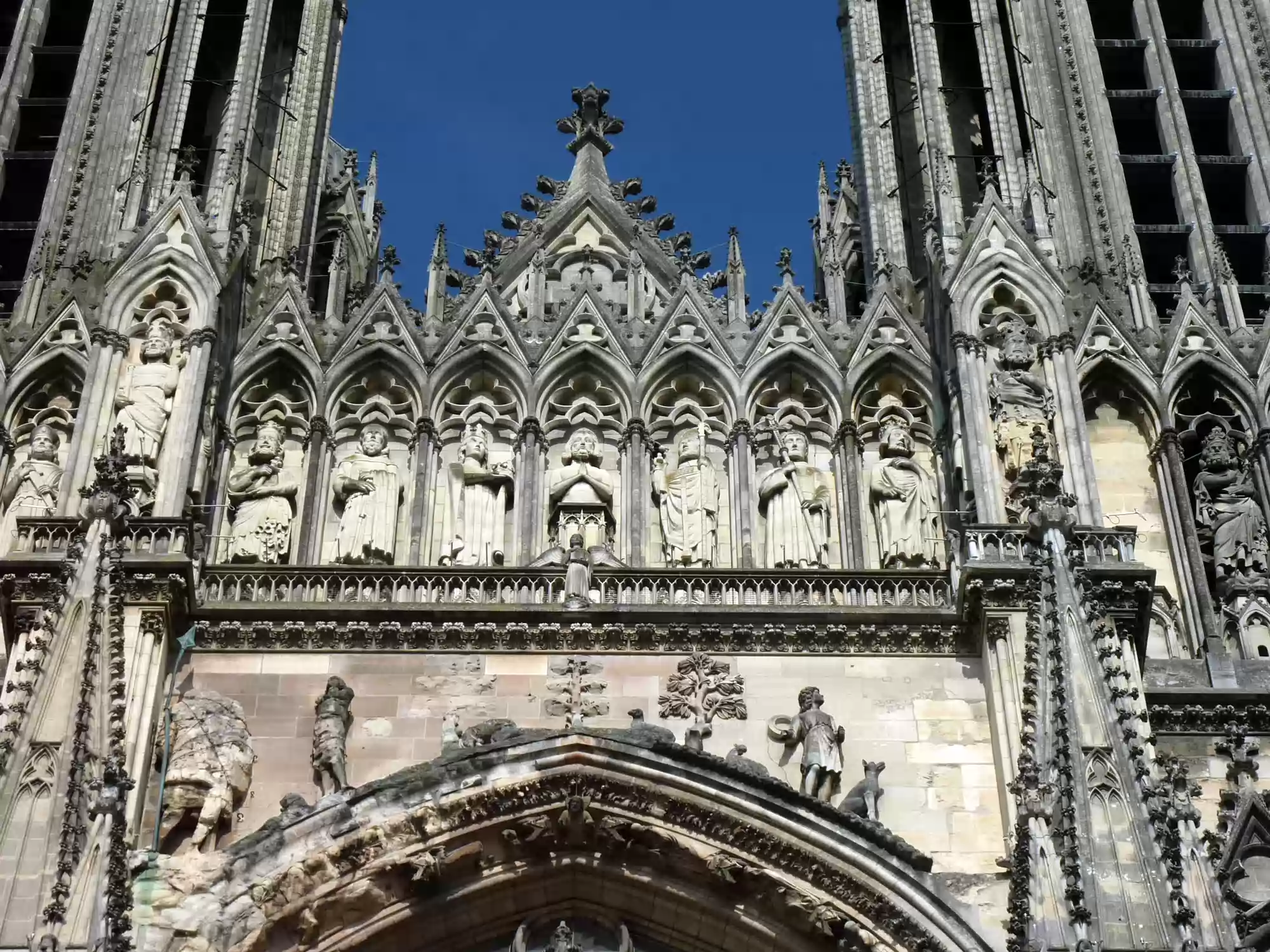 The construction of the cathedral of Reims started in 1211. At the end of the 13th century, the facade reached the top of the rose. The two towers were built in…