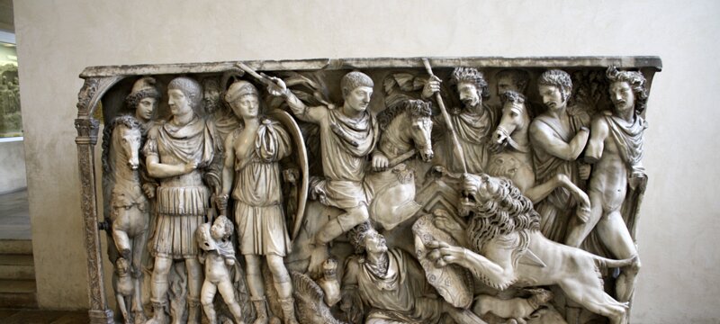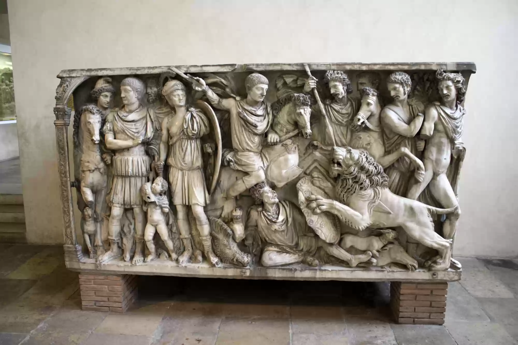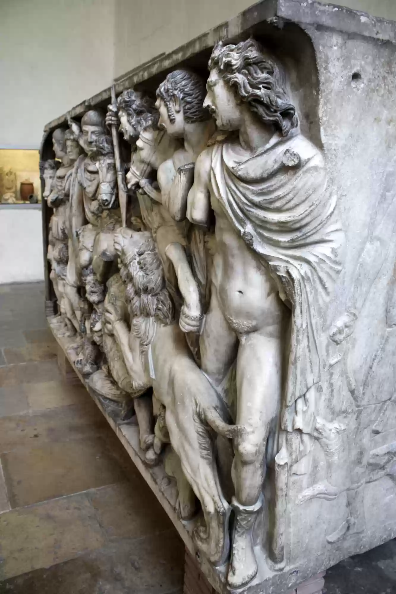 Tomb of Jovin. Marble sarcophagus bought by Flavius Jovinus, general in chief of the Roman army in Gaul, during the 4th century AD. The sarcophagus is from…