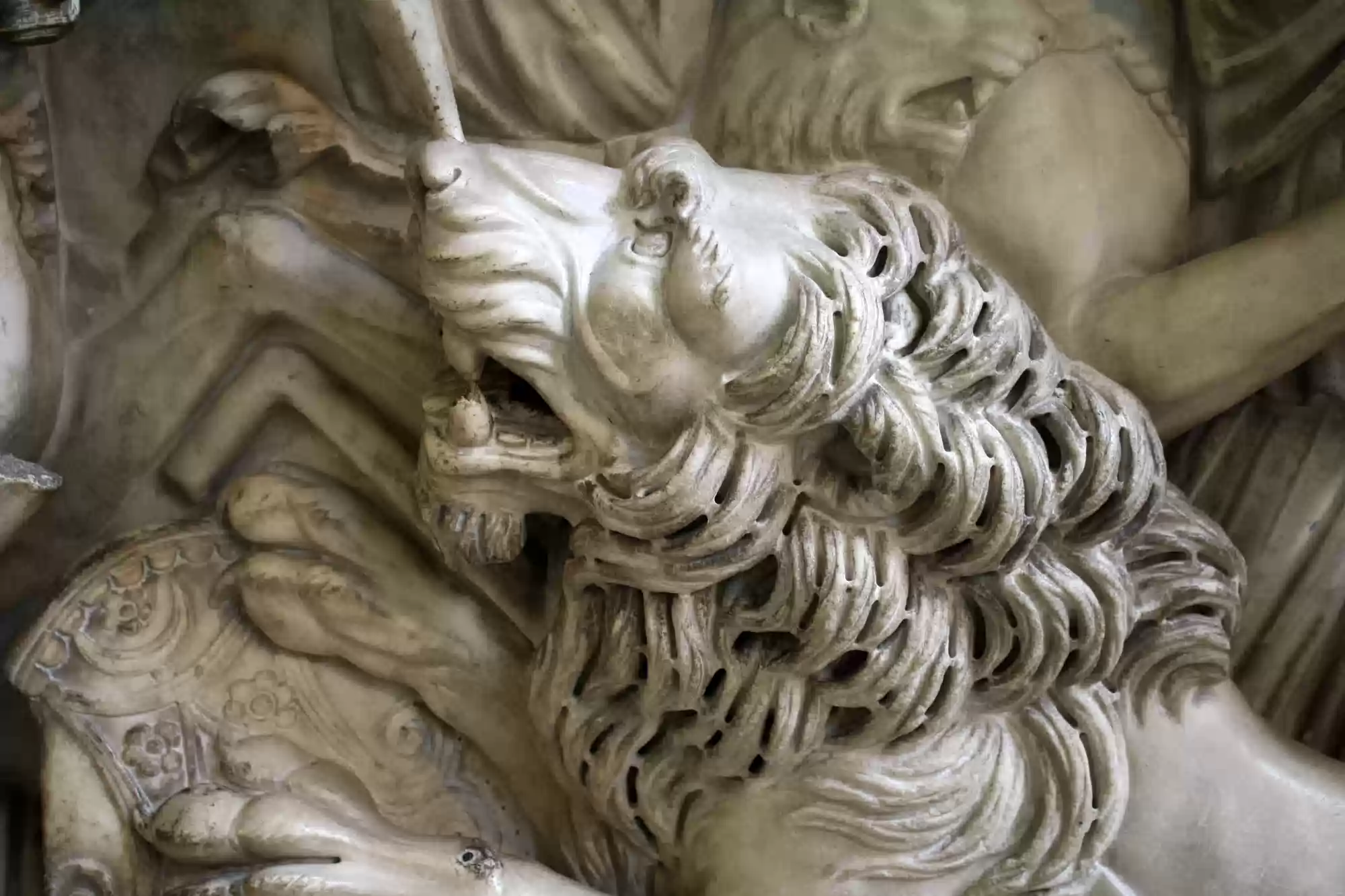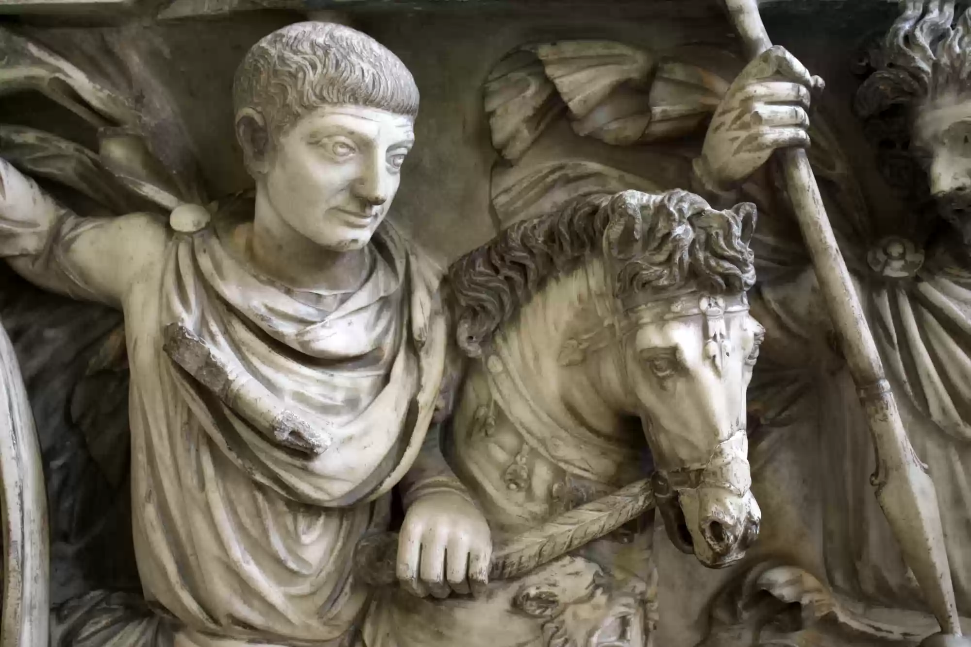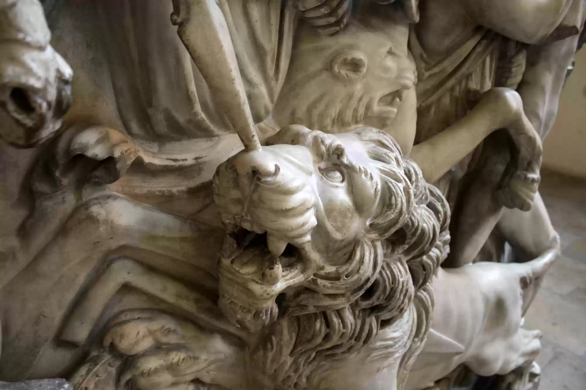 Tomb of Jovin. Marble sarcophagus bought by Flavius Jovinus, general in chief of the Roman army in Gaul, during the 4th century AD. The sarcophagus is from…