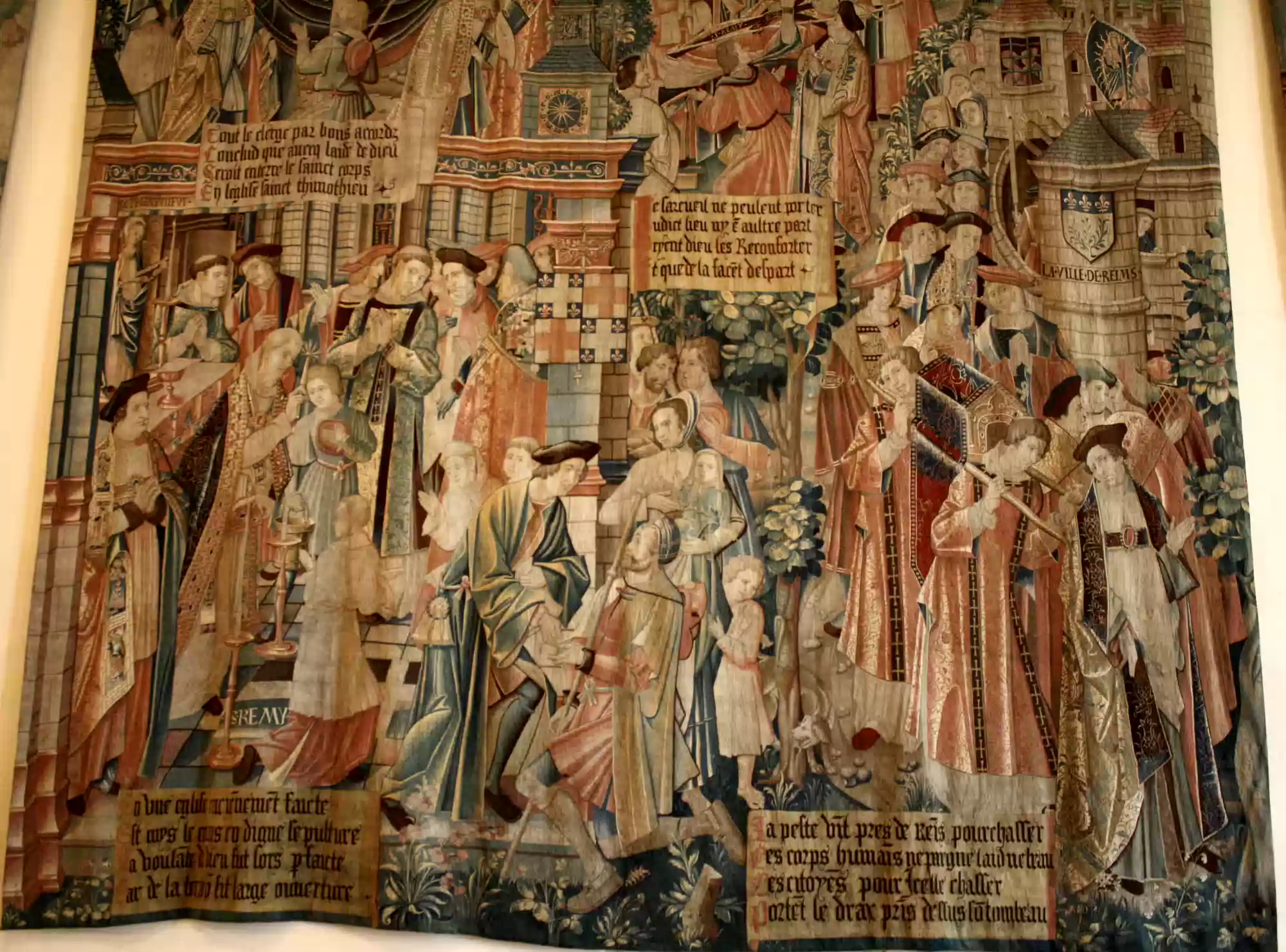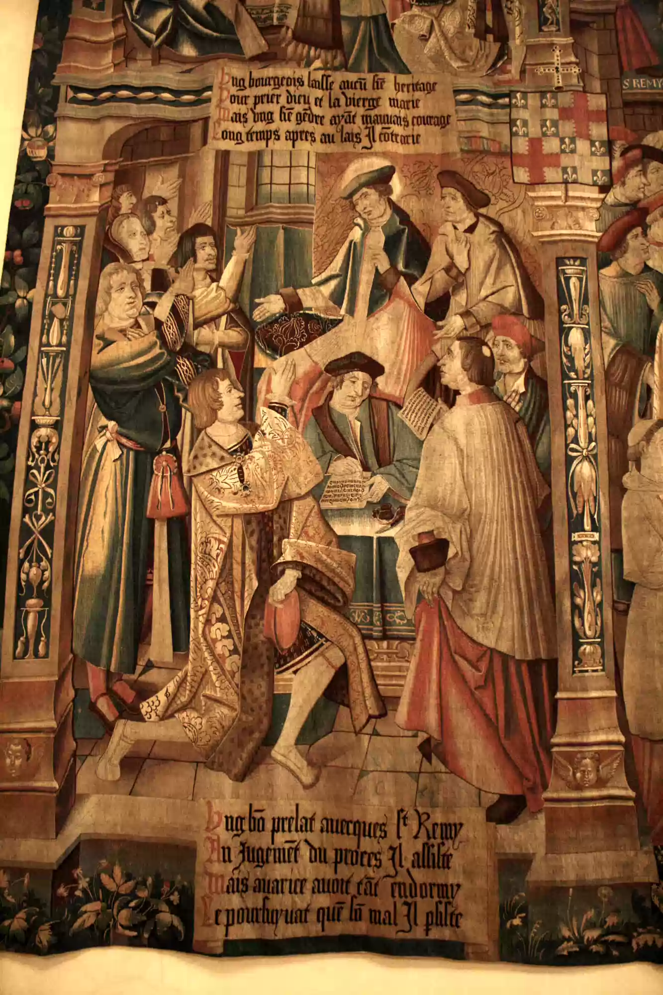 Life of Saint Rémi, a set of tapestries ordered by Reims bishop Robert de Lenoncourt in the early 16th century. The tapestries were completed in 1531.