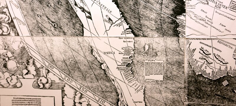 Waldseemüller's map, 1507 (fac simile), where the name America (coined in Saint-Dié) appears for the first time.