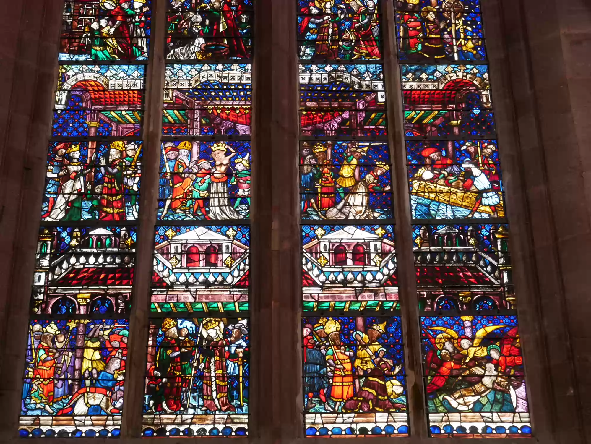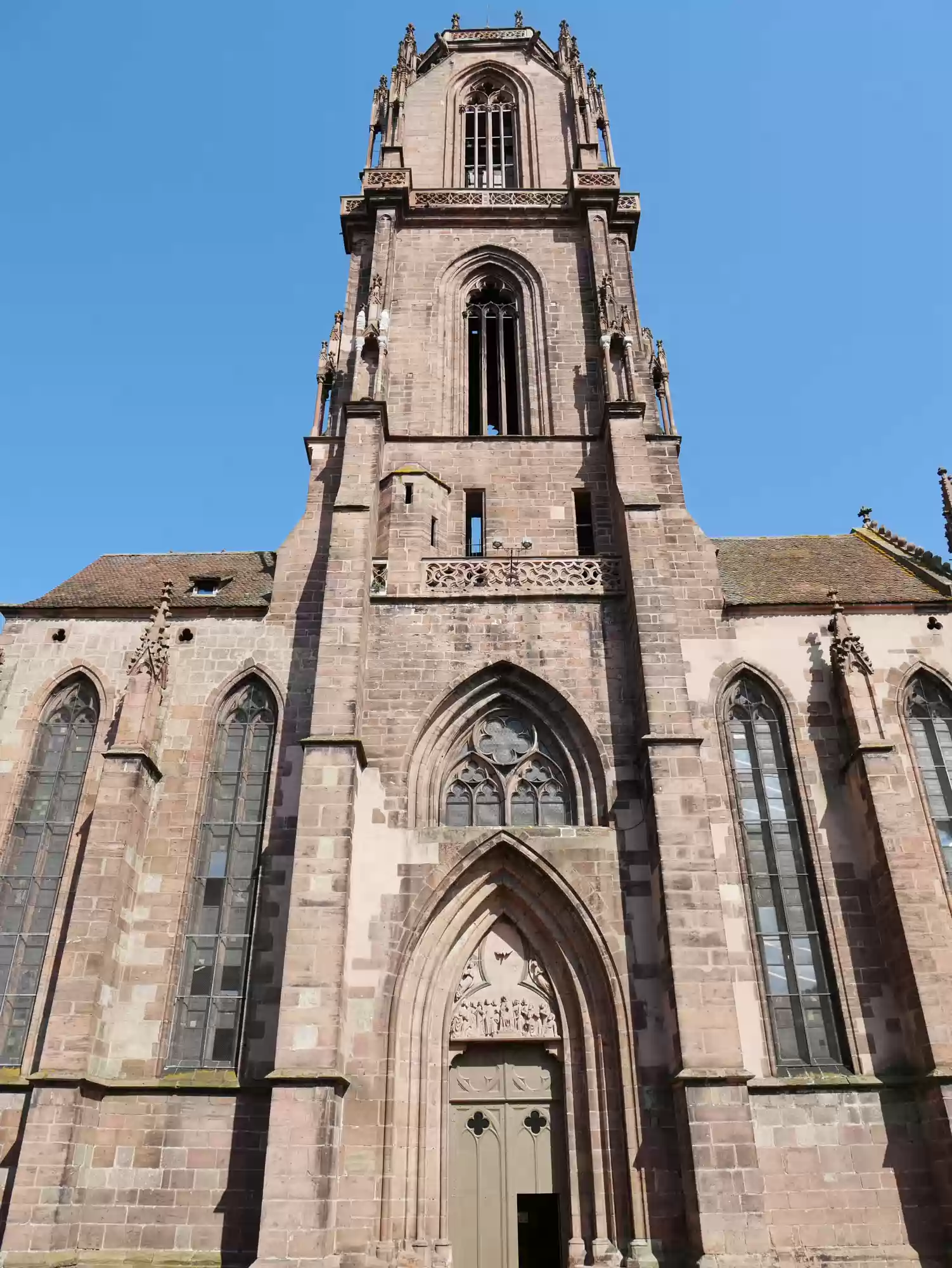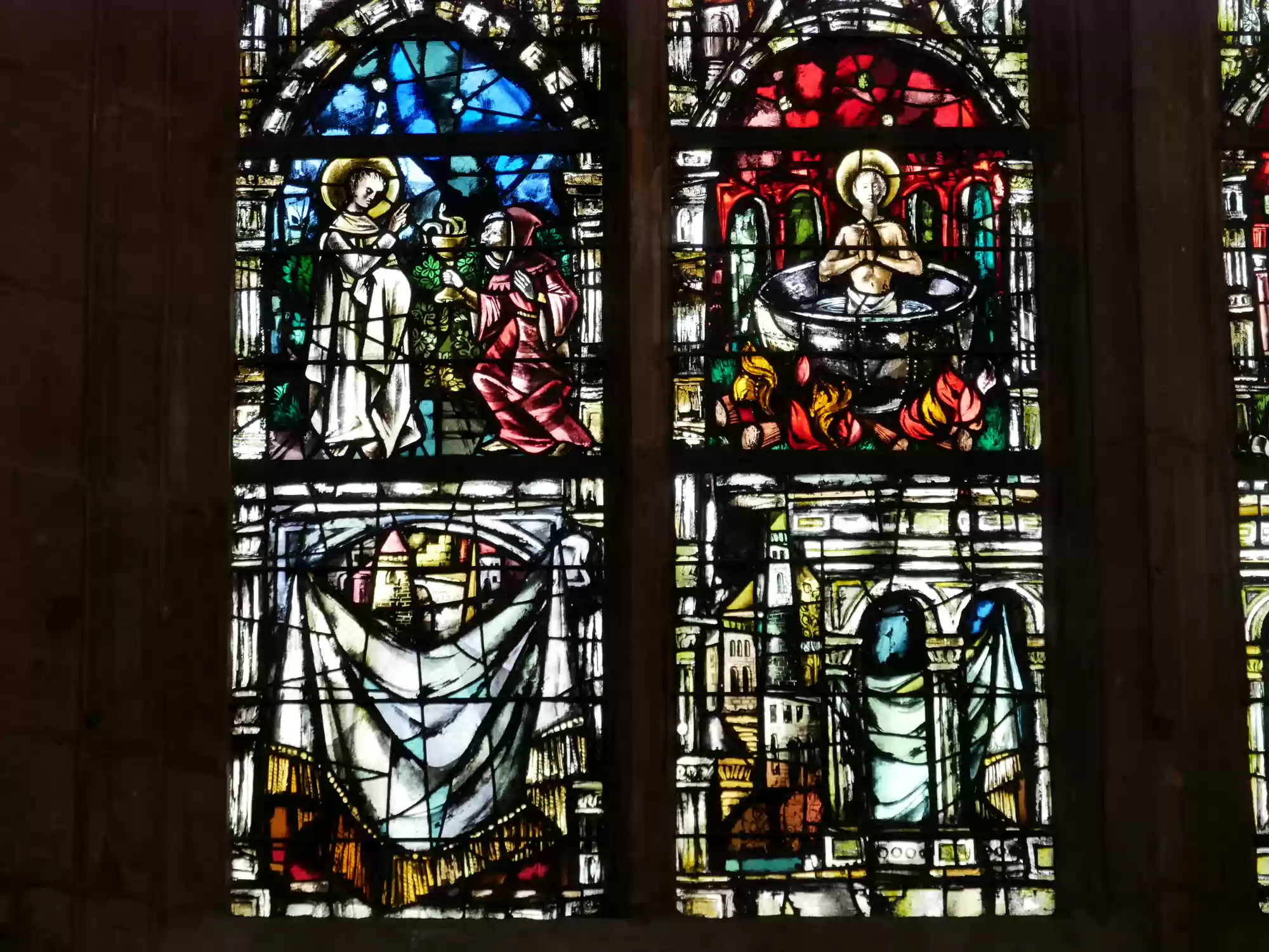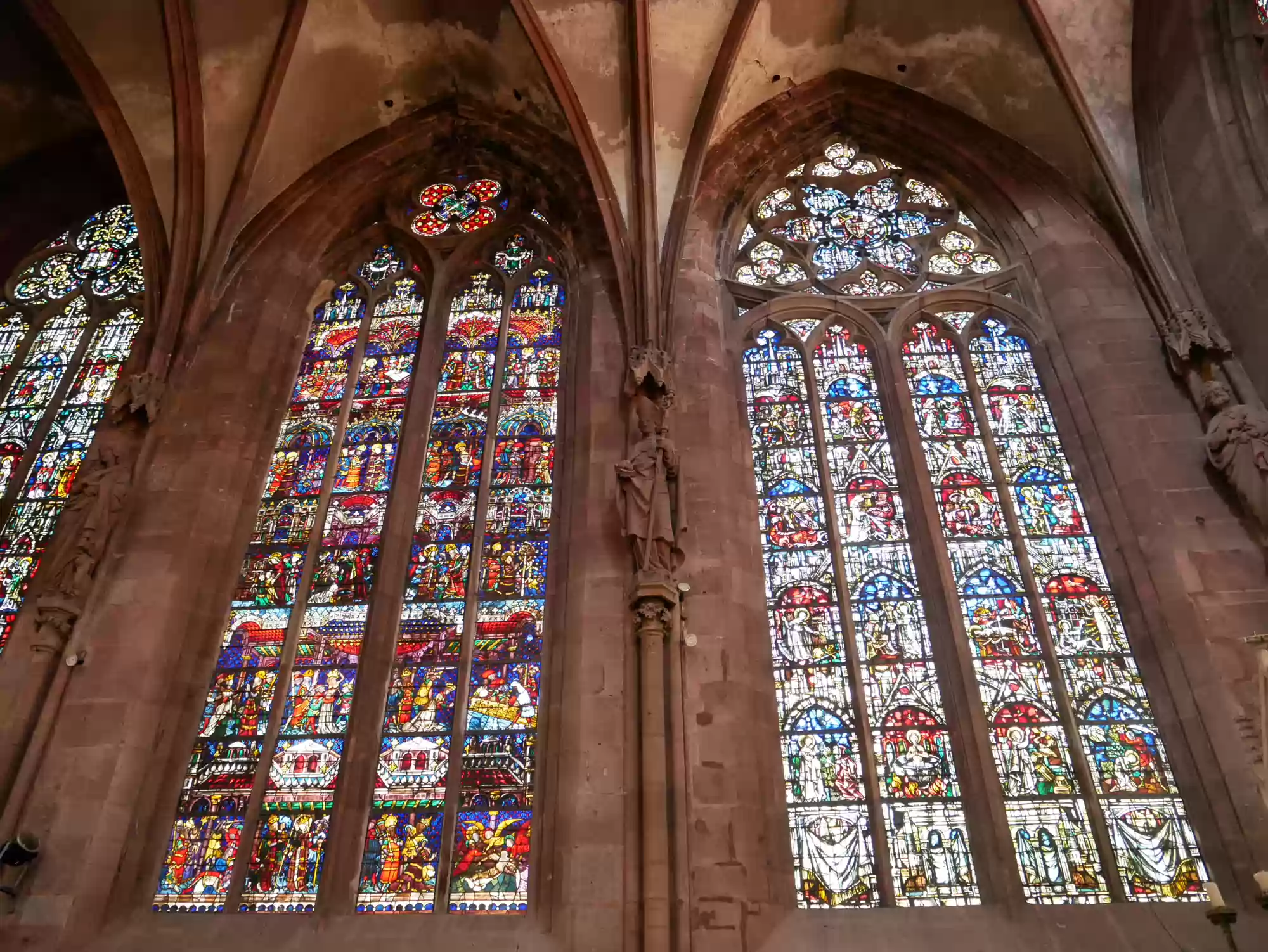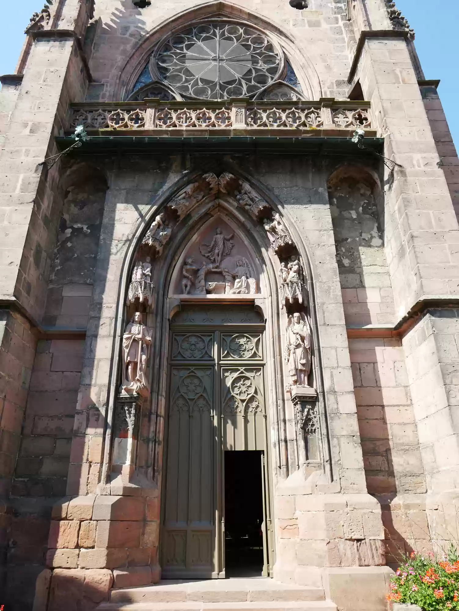 St Georges gothic church, 13-15th centuries. Chair, 1619. Chair, 1619. Chair, 1619: Samson. Sainte-Foy church Labels