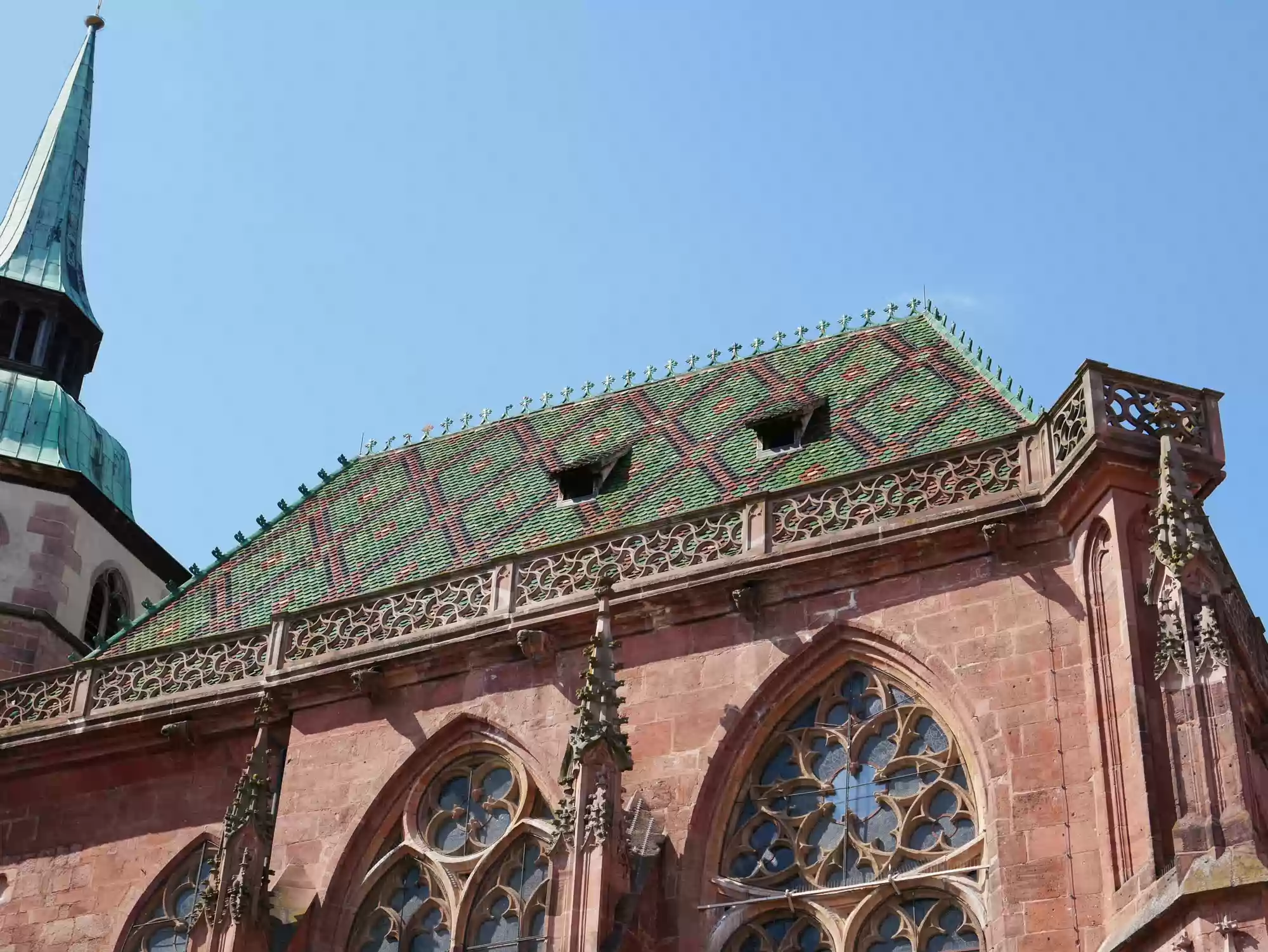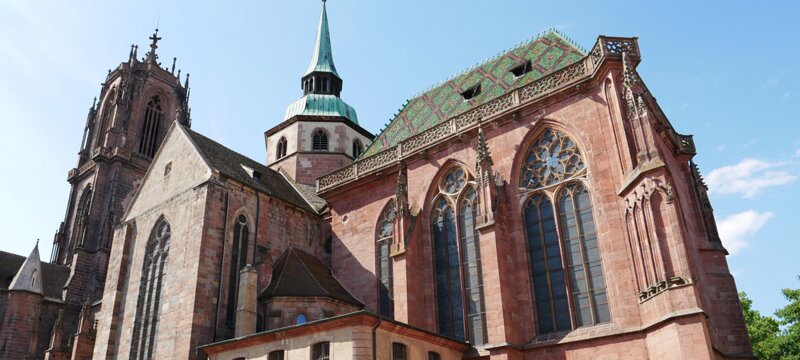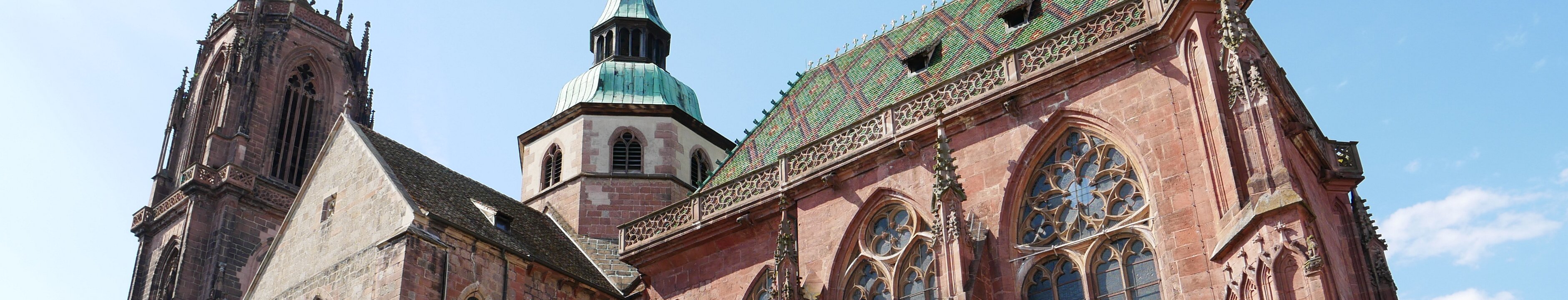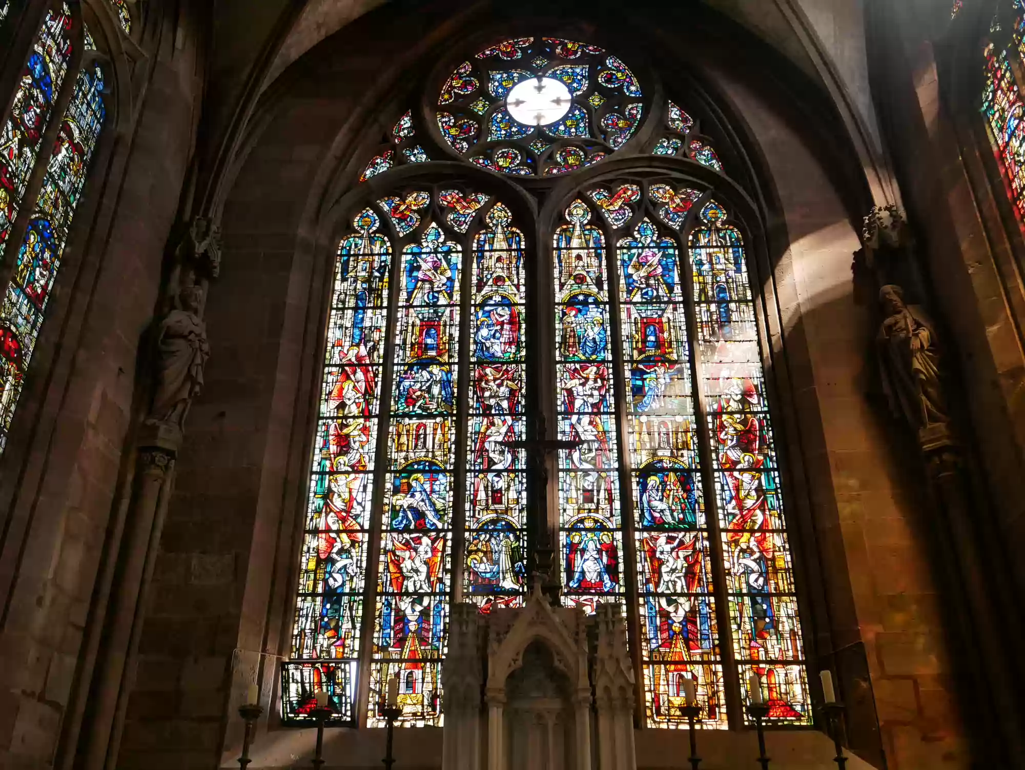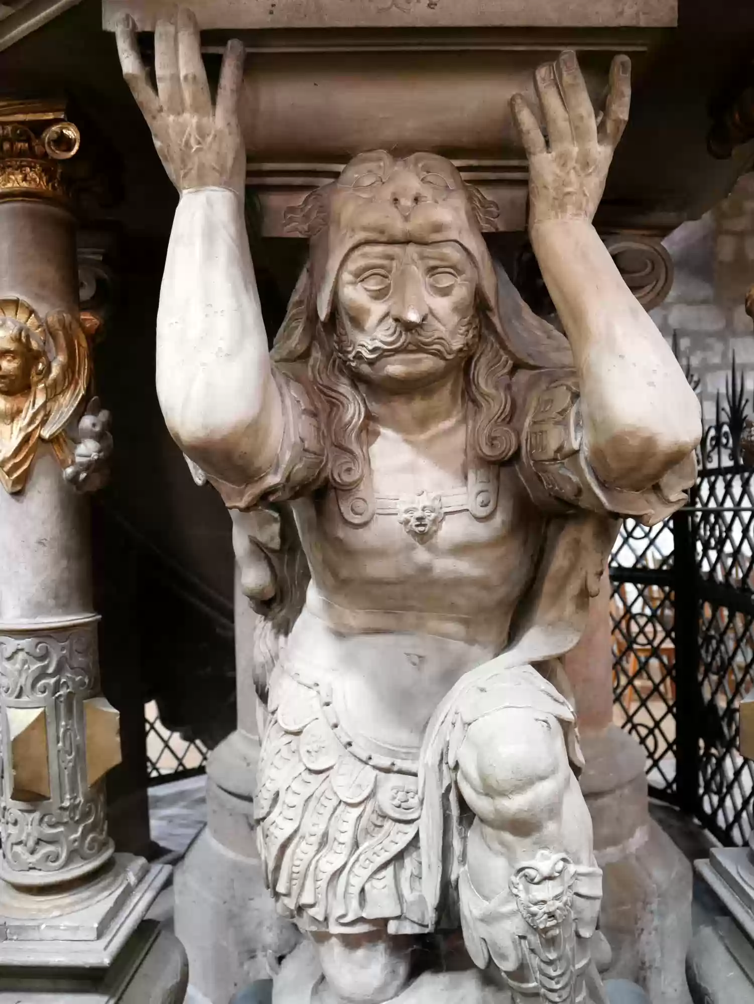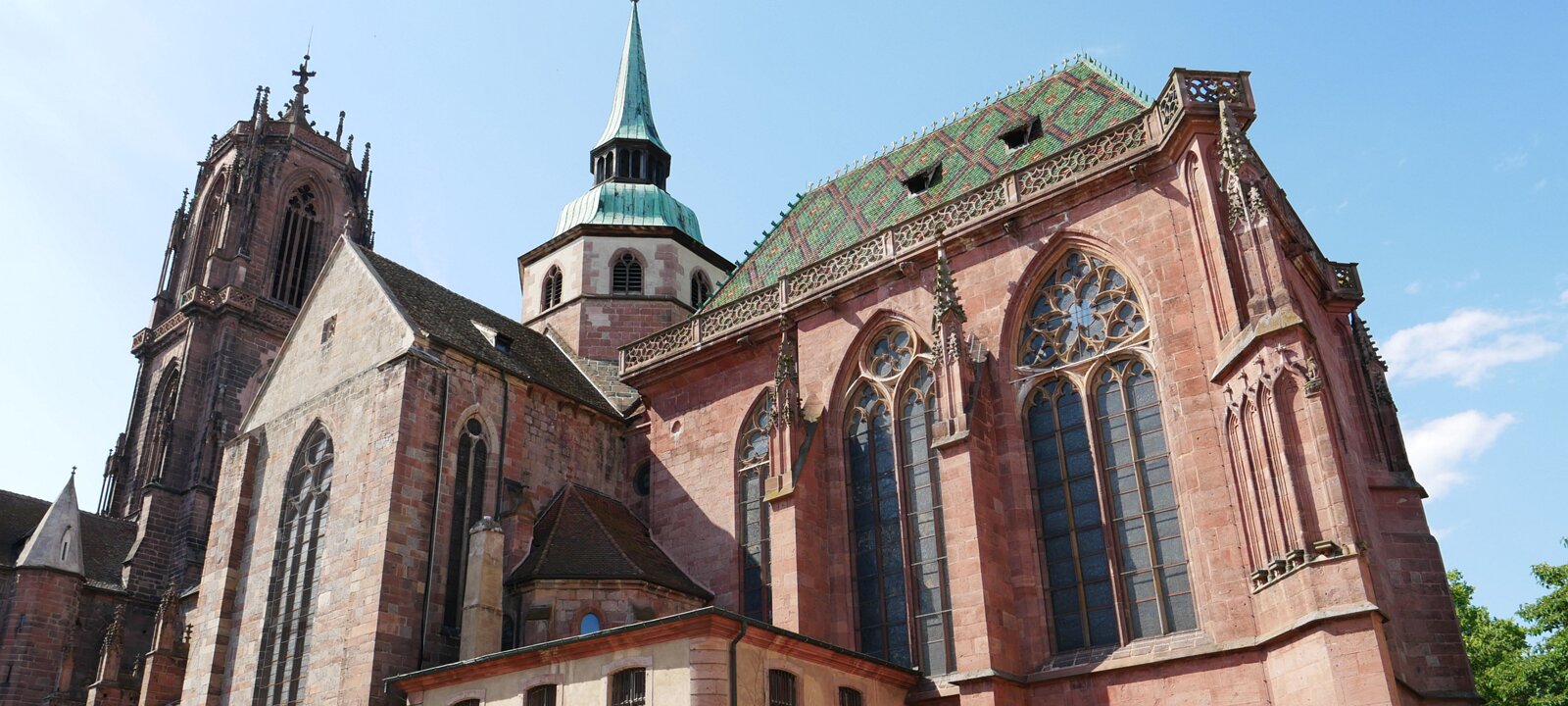 St Georges gothic church, 13-15th centuries. Chair, 1619. Chair, 1619. Chair, 1619: Samson. Sainte-Foy church Labels