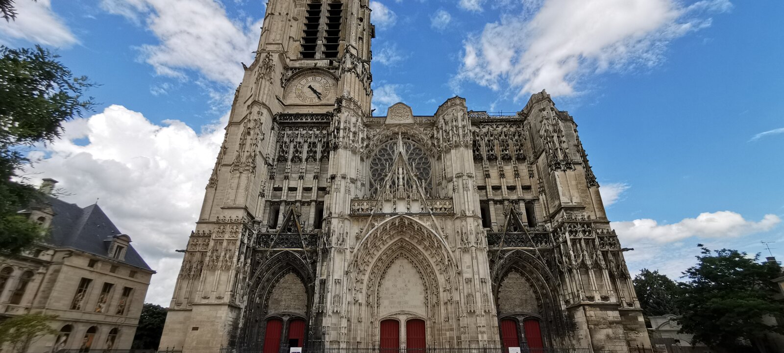 Saint Peter and Saint Paul cathedral, 13-17th centuries. The facade was built in the early 16th century, until 1554. The north tower was completed in 1634 and the south tower was never completed. North transept (left). The choir was built in the early 13th century, making the cathedral one of the oldest gothic cathedrals. Stained glass windows, 14th century. Stained glass windows, 14th century. Stained glass windows, 14th century. North transept and rose (1408). South transept, rebuilt in the mid-19th century. South transept, rebuilt in the mid-19th century. The choir stained glass windows are from the 13th century. Choir stained glass windows, 13th century. Choir stained glass windows, 13th century. Champeaux street Labels
