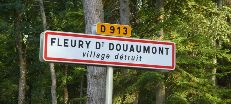 Fleury-devant-Douaumont, ca. 400 inhabitants before World War I, fully destroyed during the battle of Verdun in 1916. Location of a farm. Location of a wine maker. Location of a farm. Memorial built with the stones left from the village buildings after the war. DouaumontLes Eparges Labels