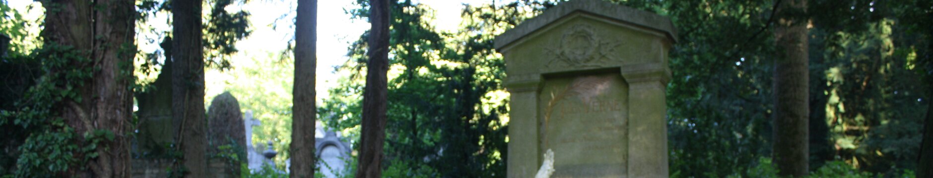Tomb of French writer Jules Verne, 1828-1905. Sculpted by Albert Roze. The La Madeleine cemetery was installed on the former location of a leper colony in… CathedralSaint-Leu Labels