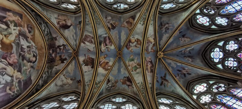 Chapel Saint-Mary, built between 1245-1255, with frescoes by Primaticcio, 1543-1545. Primaticcio was in France to work in Fontainebleau at the behest of king… Ceiling with the apostles and the evangelists. Annunciation, by Primaticcio. Museum Labels