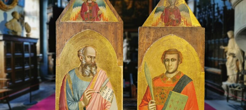 Saint John and Saint Lawrence, Giotto, early 14th century. Probably parts of a polyptych with 5 panels. Another part (a Madonna and child) is exhibited at the…