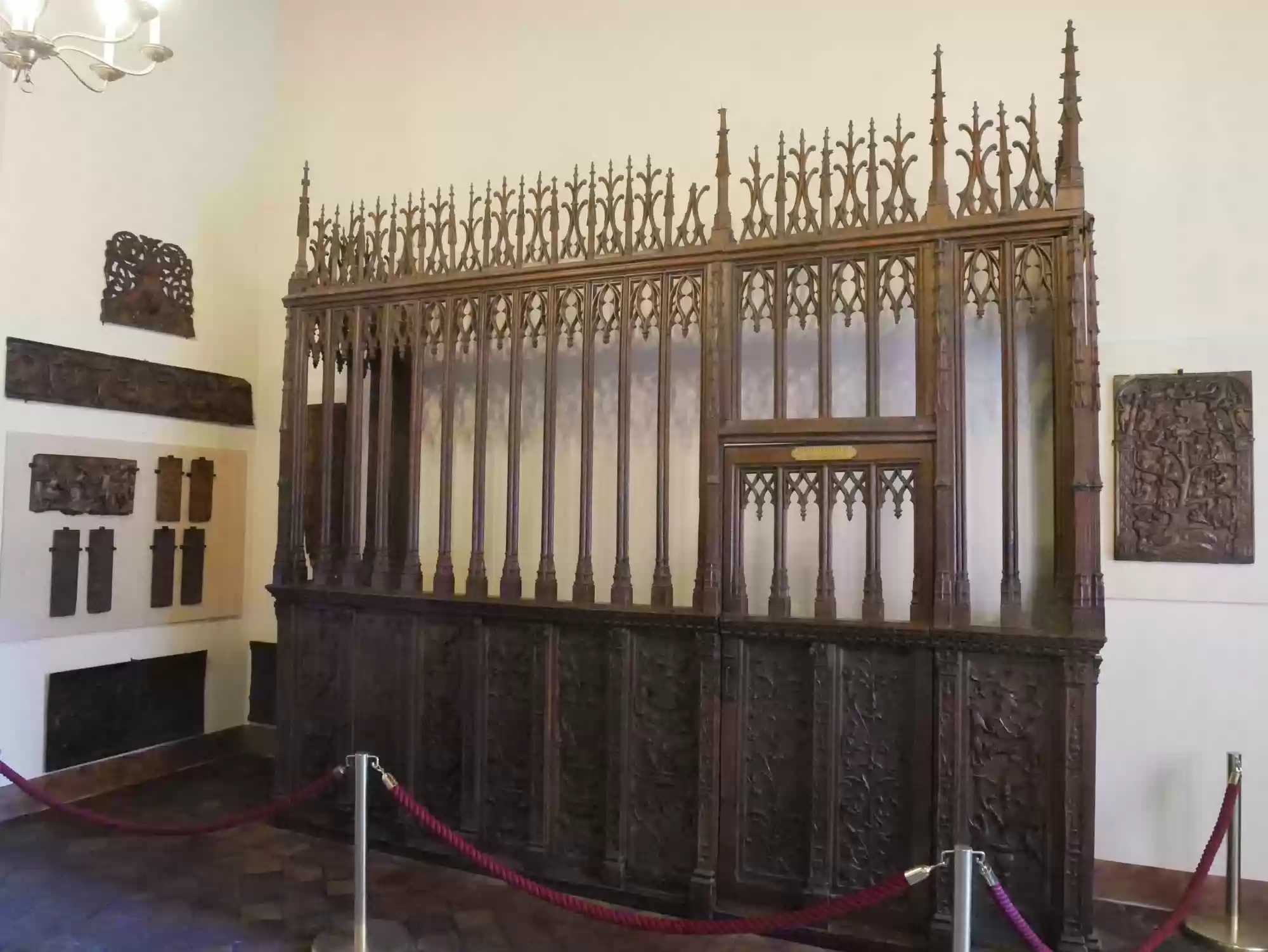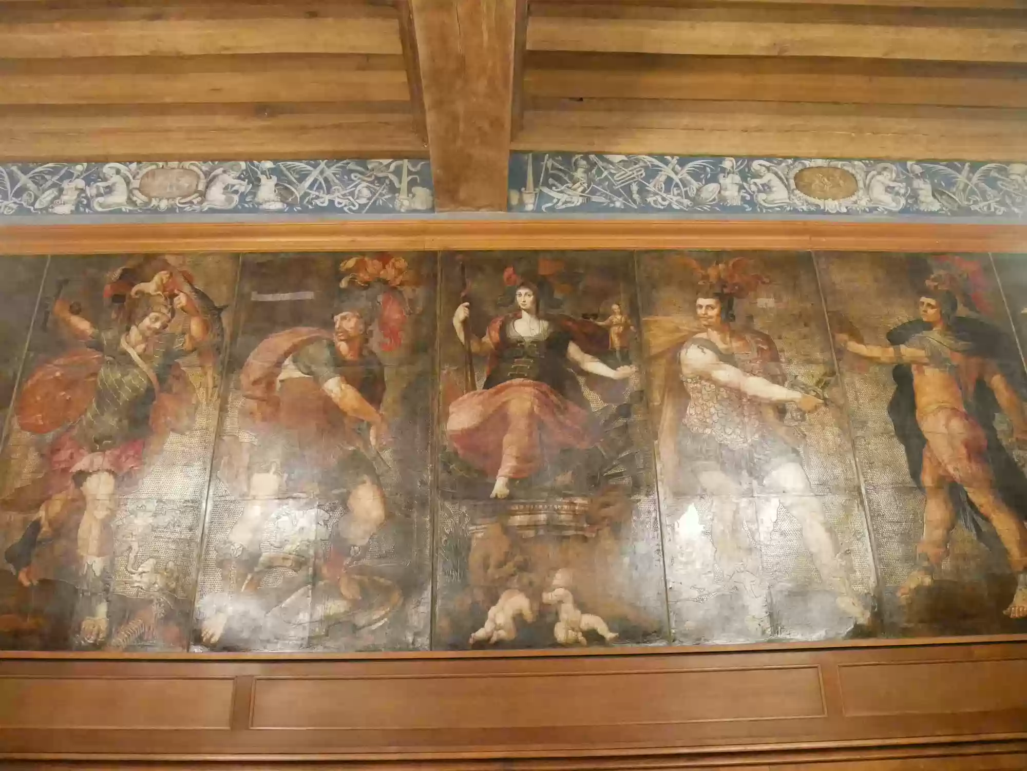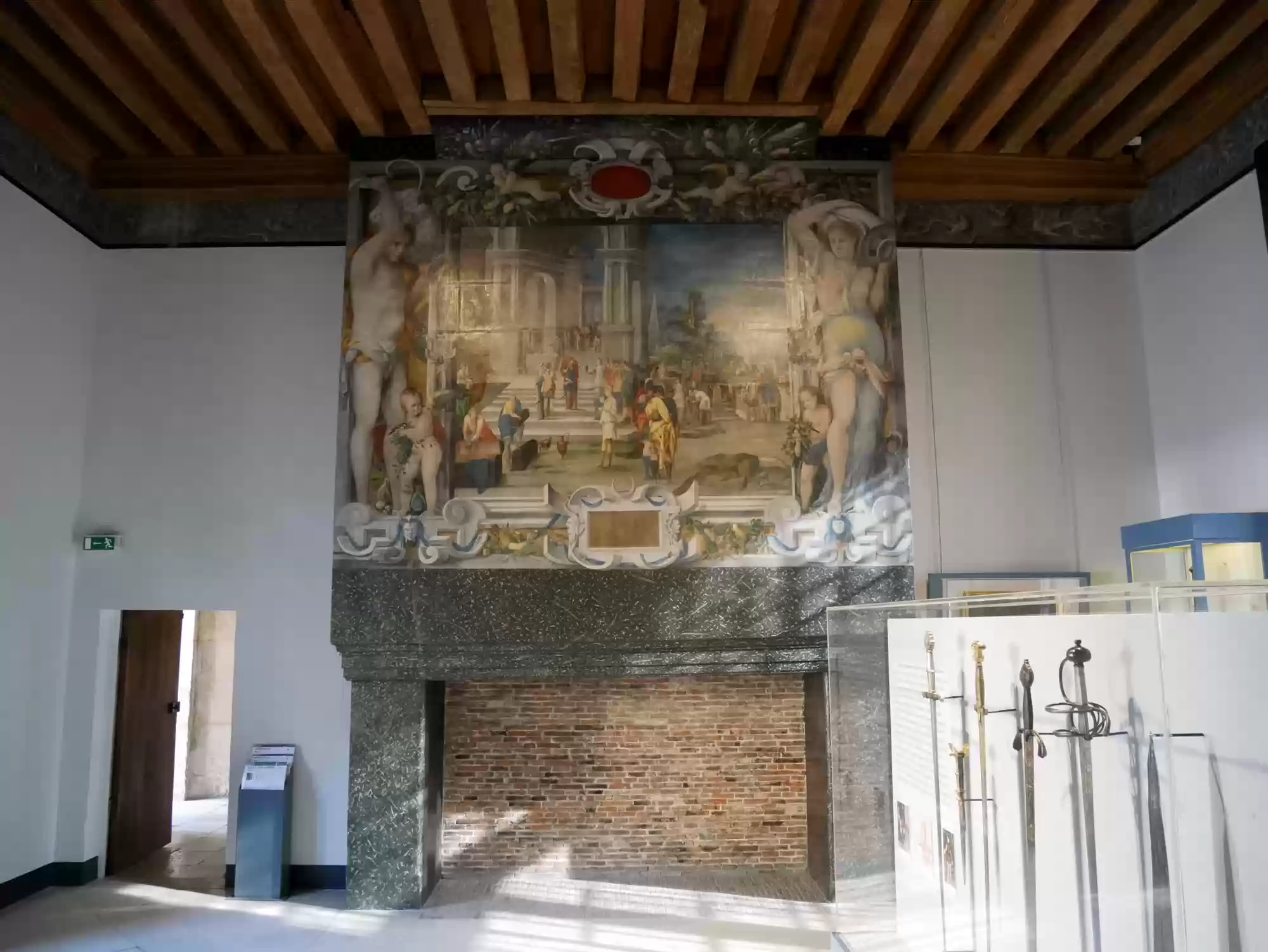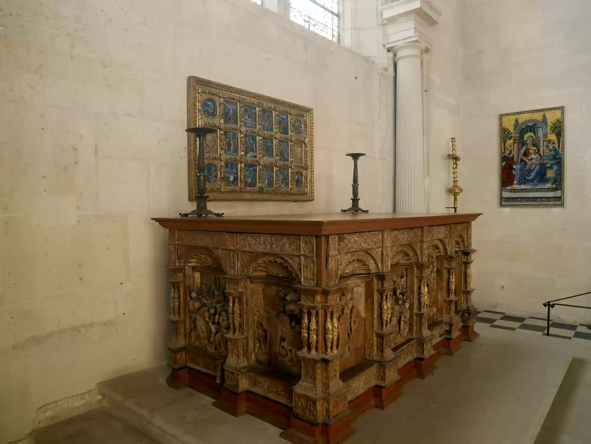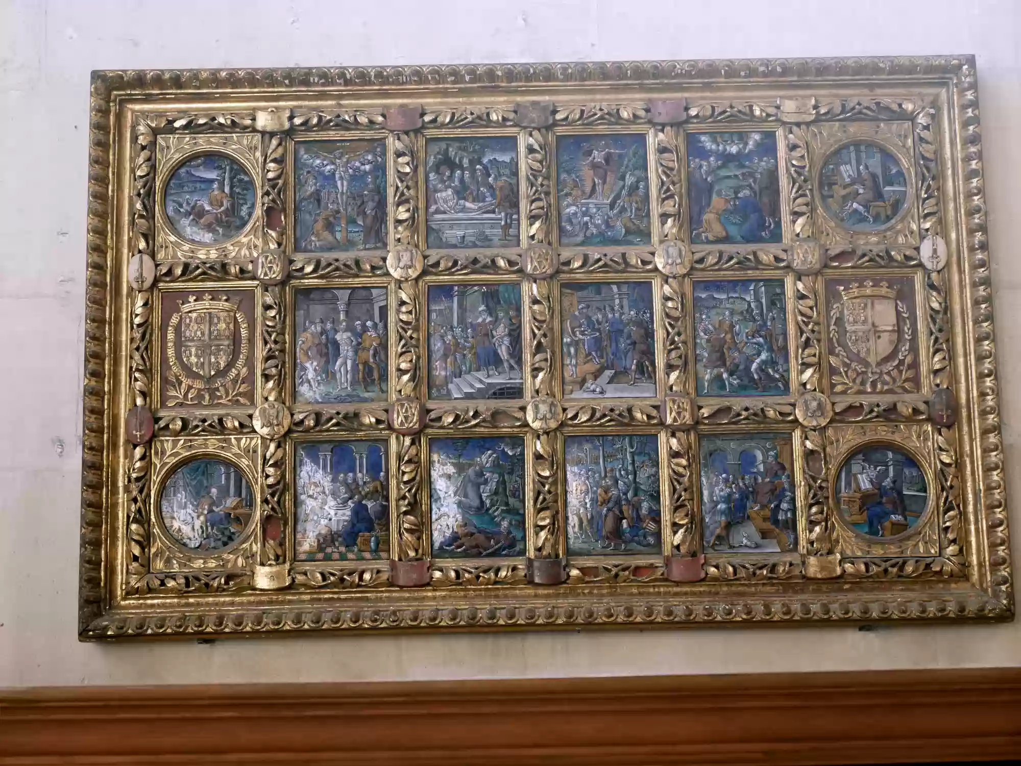 Tapestry of David and Bathsheba17 images Chapel, built in the Gothic style before 1544. Chapel, built in the Gothic style before 1544. Chapel. Chapel. Chapel: alterpiece. Aplanos (unswerving) was the motto of Anne de Montmorency. Early copy of Leonardo Da Vinci's Last supper , painted in Milan by Marco d'Oggiono, 1506-1509. Pistols, Bavaria, late 16th century. Stirrups used by Francis I, 1515-1525. Stirrups used by Francis I, 1515-1525. Armor for foot combat, Innsbruck, 1510-1515. Mantelpiece: Tribute to Caesar, where Christians are asked by Jesus to obey the state laws. Painted leather panels, 1503. Painted leather panels, 1503. Cupboard, 17th century, with an embedded theater. Cupboard, 17th century, with an embedded theater. Castle Labels