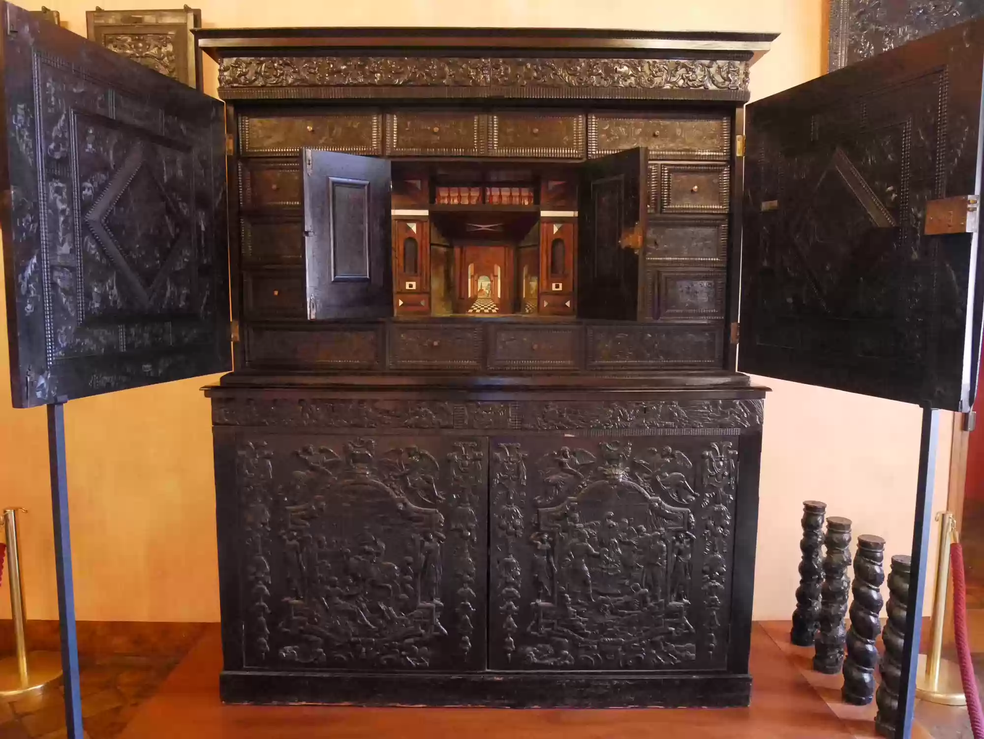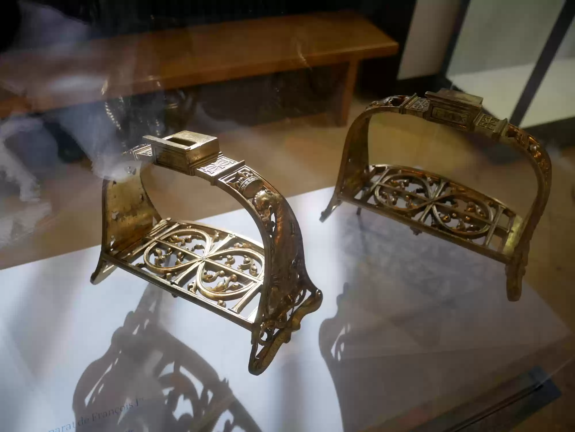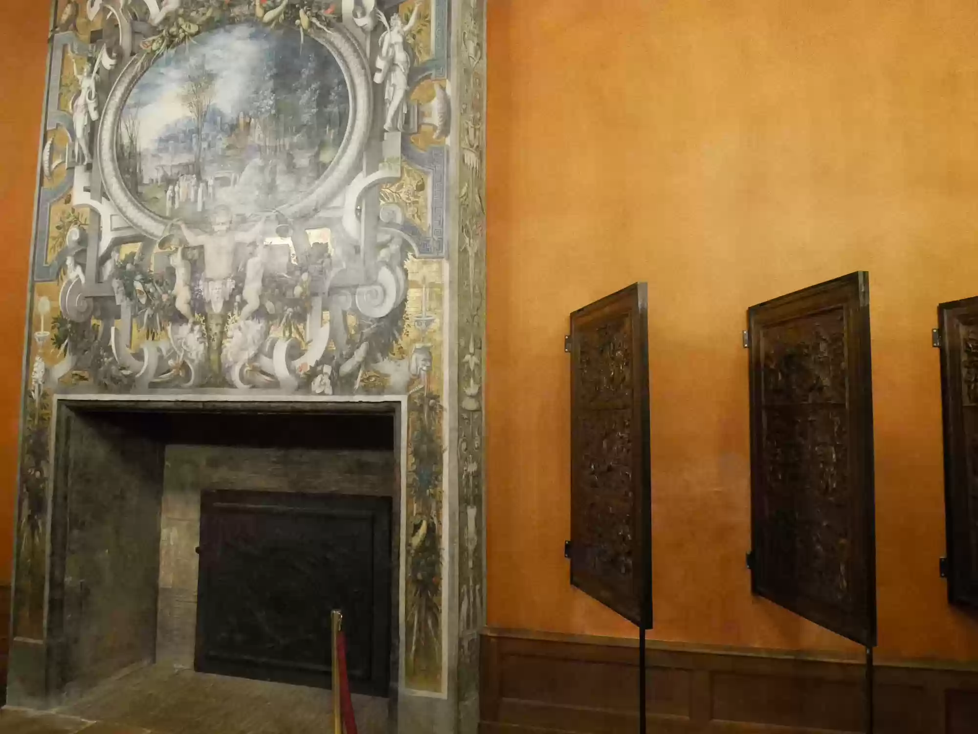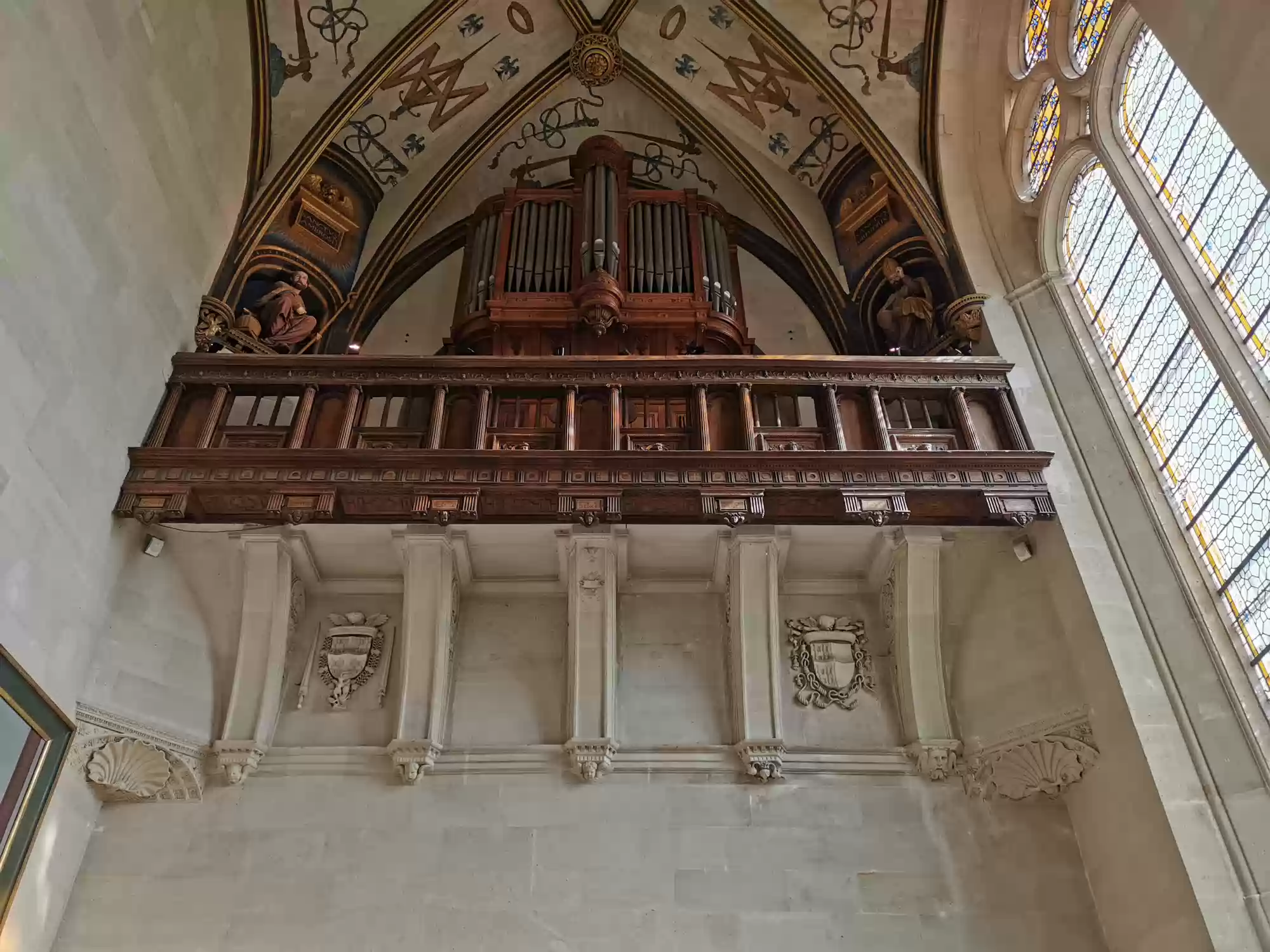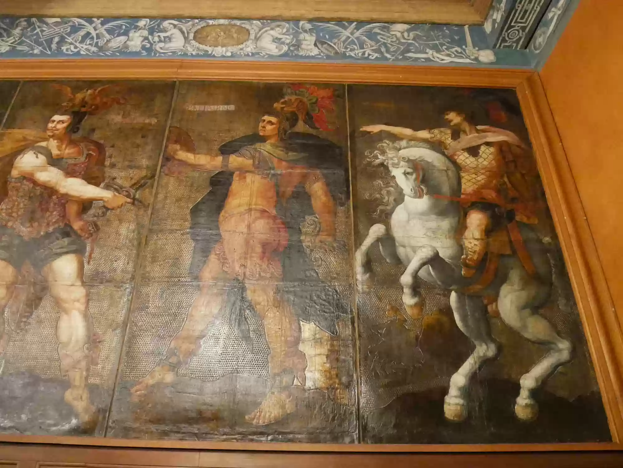 Tapestry of David and Bathsheba17 images Chapel, built in the Gothic style before 1544. Chapel, built in the Gothic style before 1544. Chapel. Chapel. Chapel: alterpiece. Aplanos (unswerving) was the motto of Anne de Montmorency. Early copy of Leonardo Da Vinci's Last supper , painted in Milan by Marco d'Oggiono, 1506-1509. Pistols, Bavaria, late 16th century. Stirrups used by Francis I, 1515-1525. Stirrups used by Francis I, 1515-1525. Armor for foot combat, Innsbruck, 1510-1515. Mantelpiece: Tribute to Caesar, where Christians are asked by Jesus to obey the state laws. Painted leather panels, 1503. Painted leather panels, 1503. Cupboard, 17th century, with an embedded theater. Cupboard, 17th century, with an embedded theater. Castle Labels