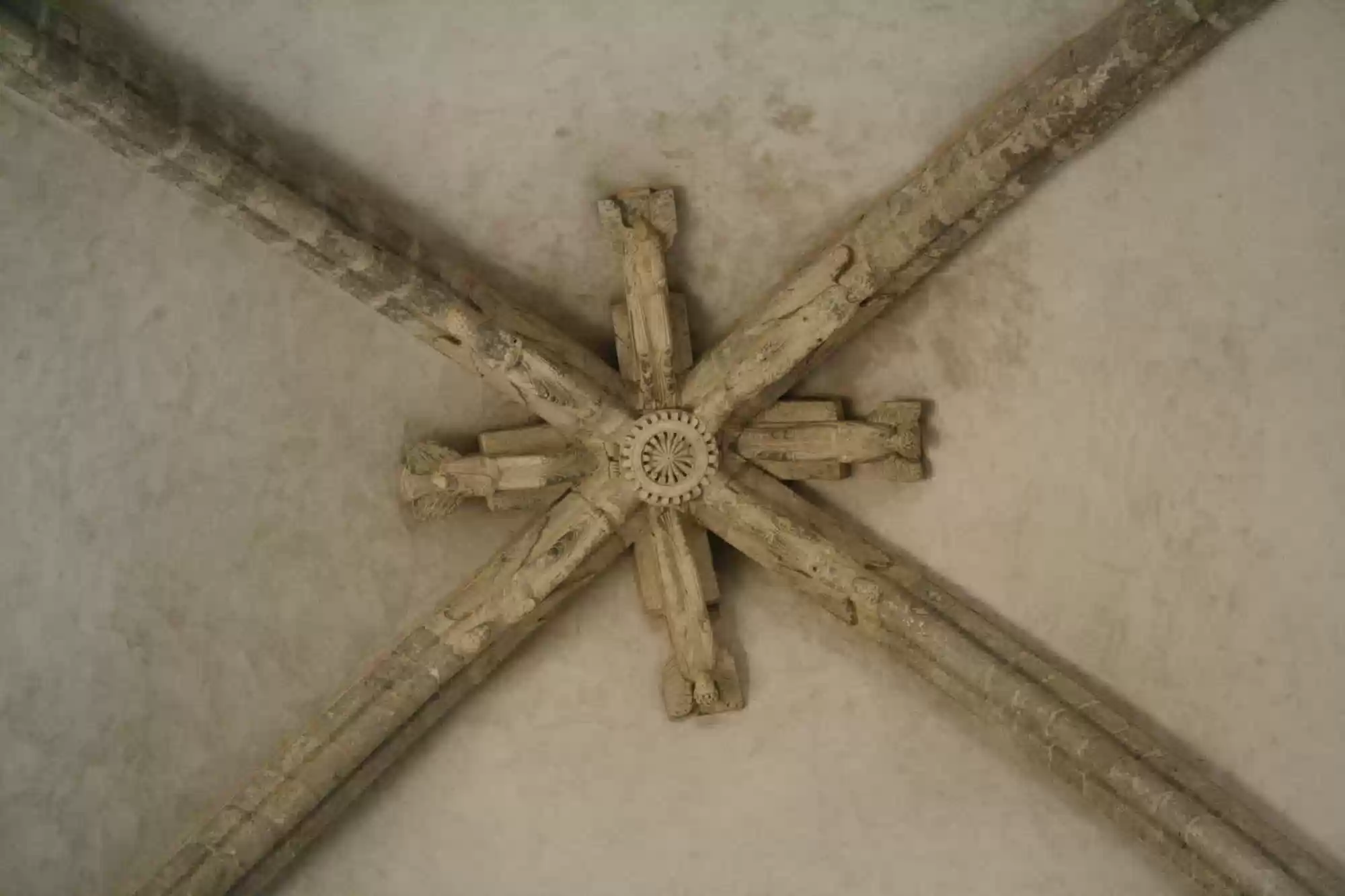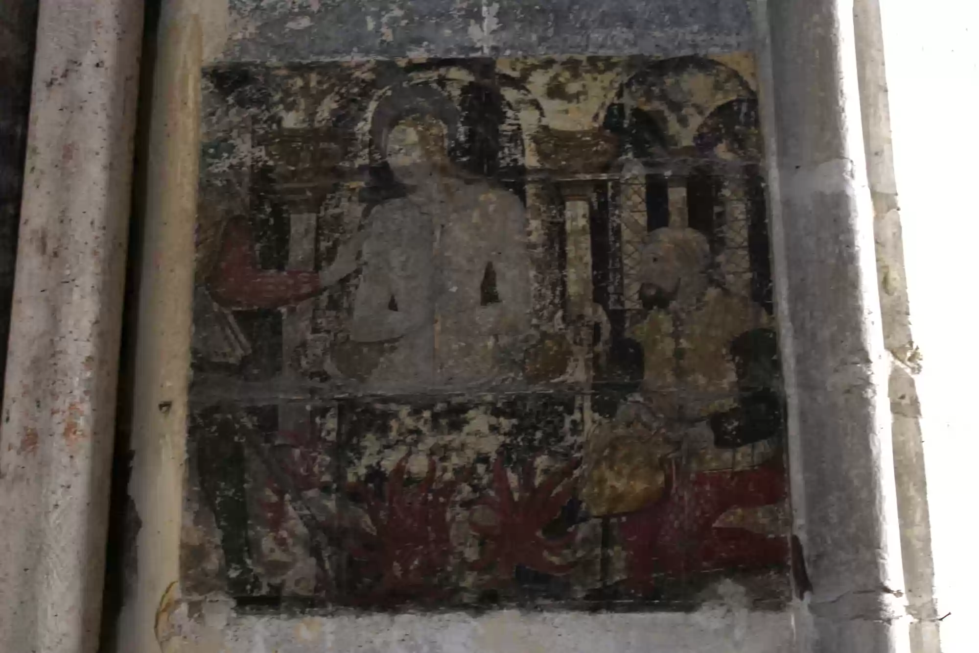Fresco: ecce homo, 16th century. The door leads to the 15th century sacristy.