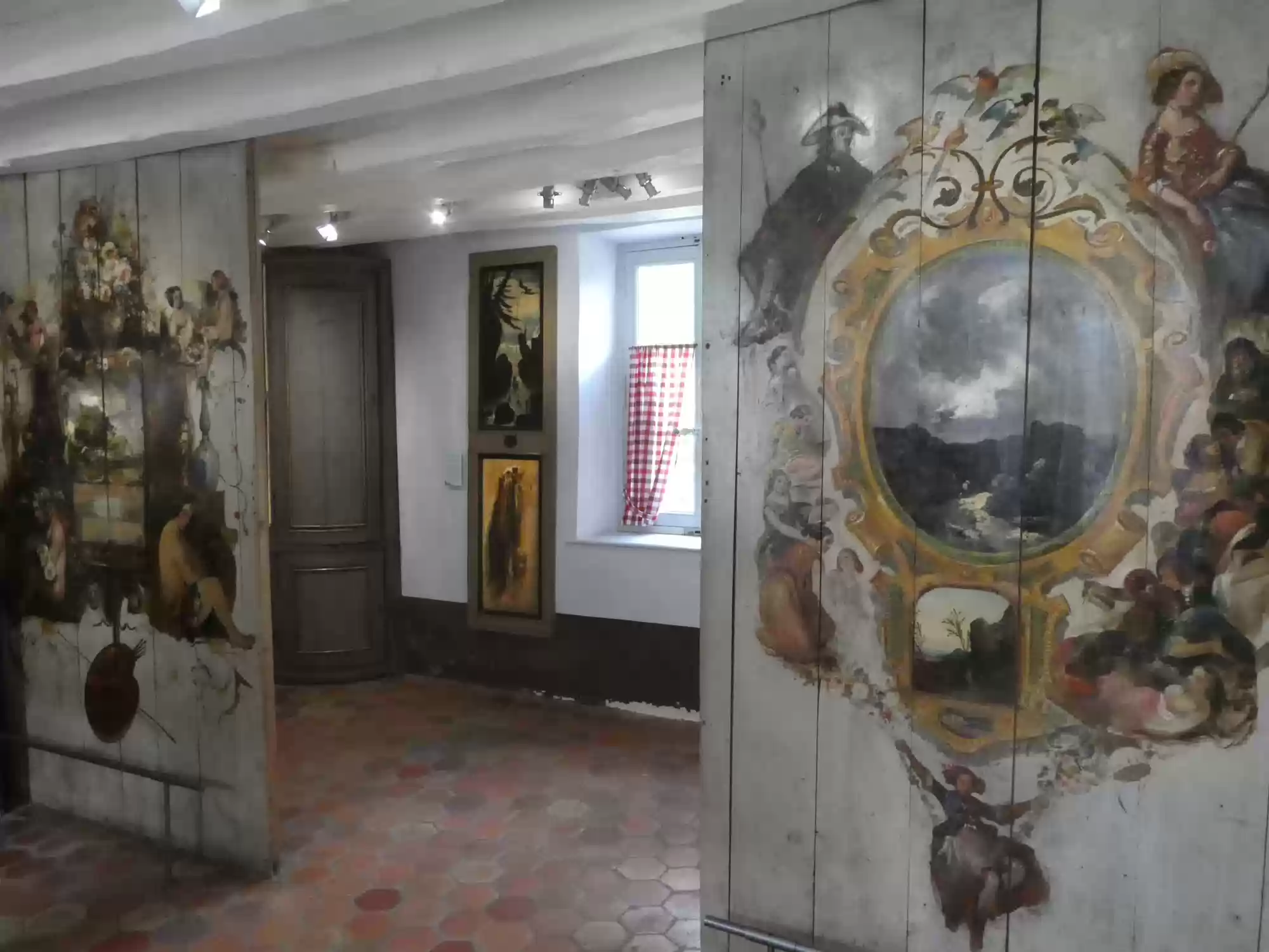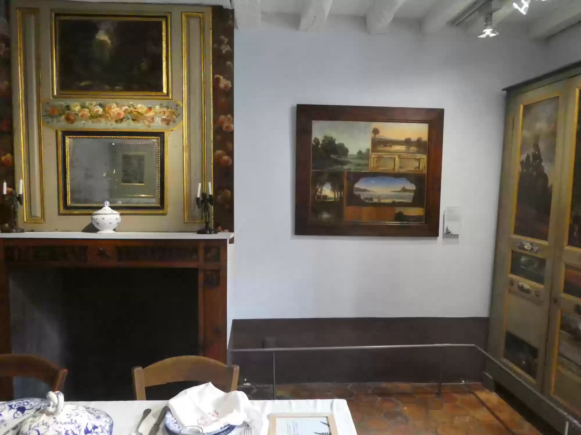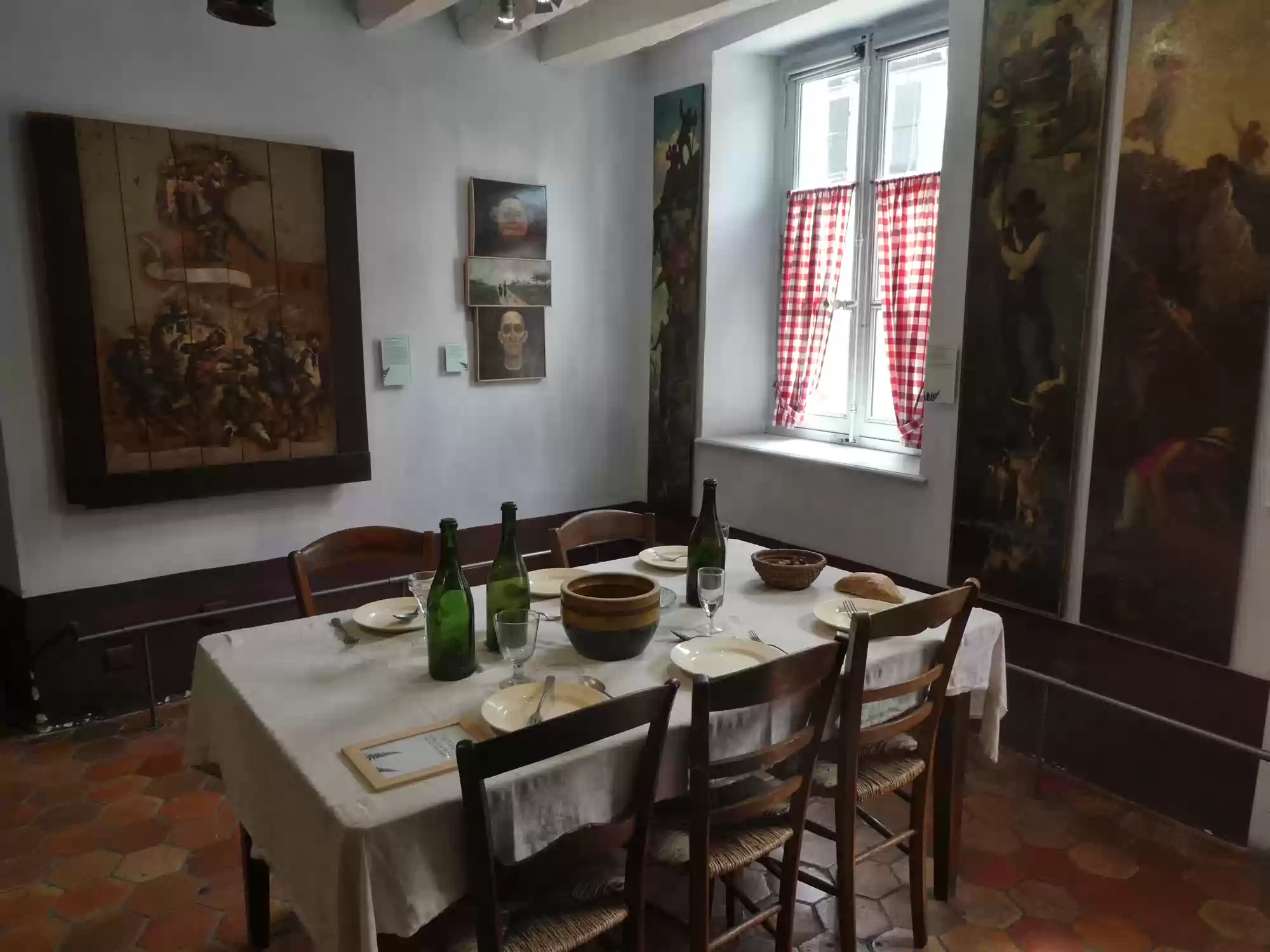 Auberge Ganne, where many artists lived or ate between 1820 and 1860, now a museum. Grocery, inside the inn. Tenant's bedroom. Tenant's bedroom. Officers' room. Officers' room. Paintings found while refurbishing the house to turn it into a museum. Siron inn sign, mid 19th century. Millet. Chaigneau (1830-1906), rural scenes. Chaigneau (1830-1906), farm. Theodore Rousseau (1812-1867), rural home. Georges Gassies (1829-1919), Moreau rock at sunset. Labels