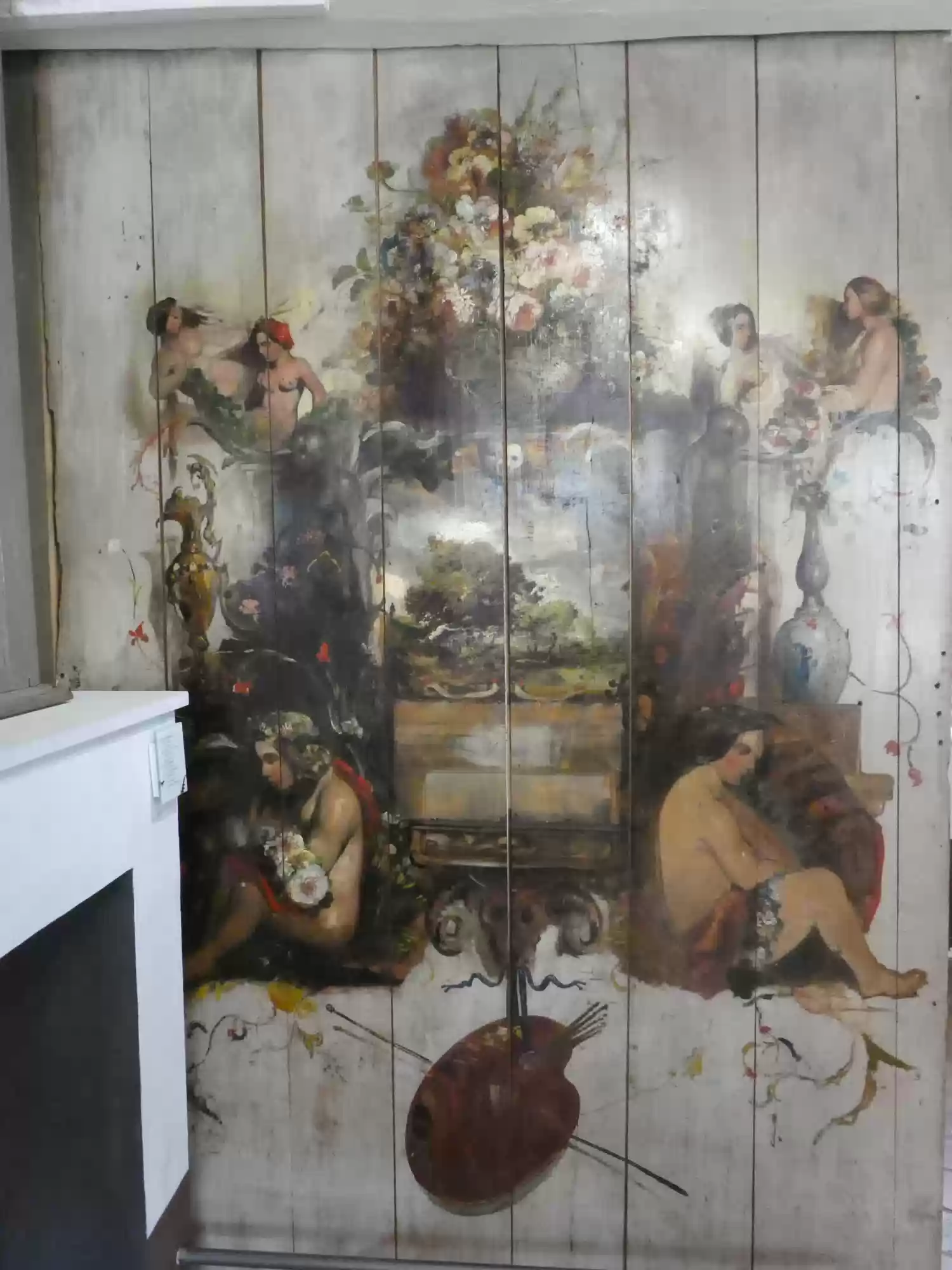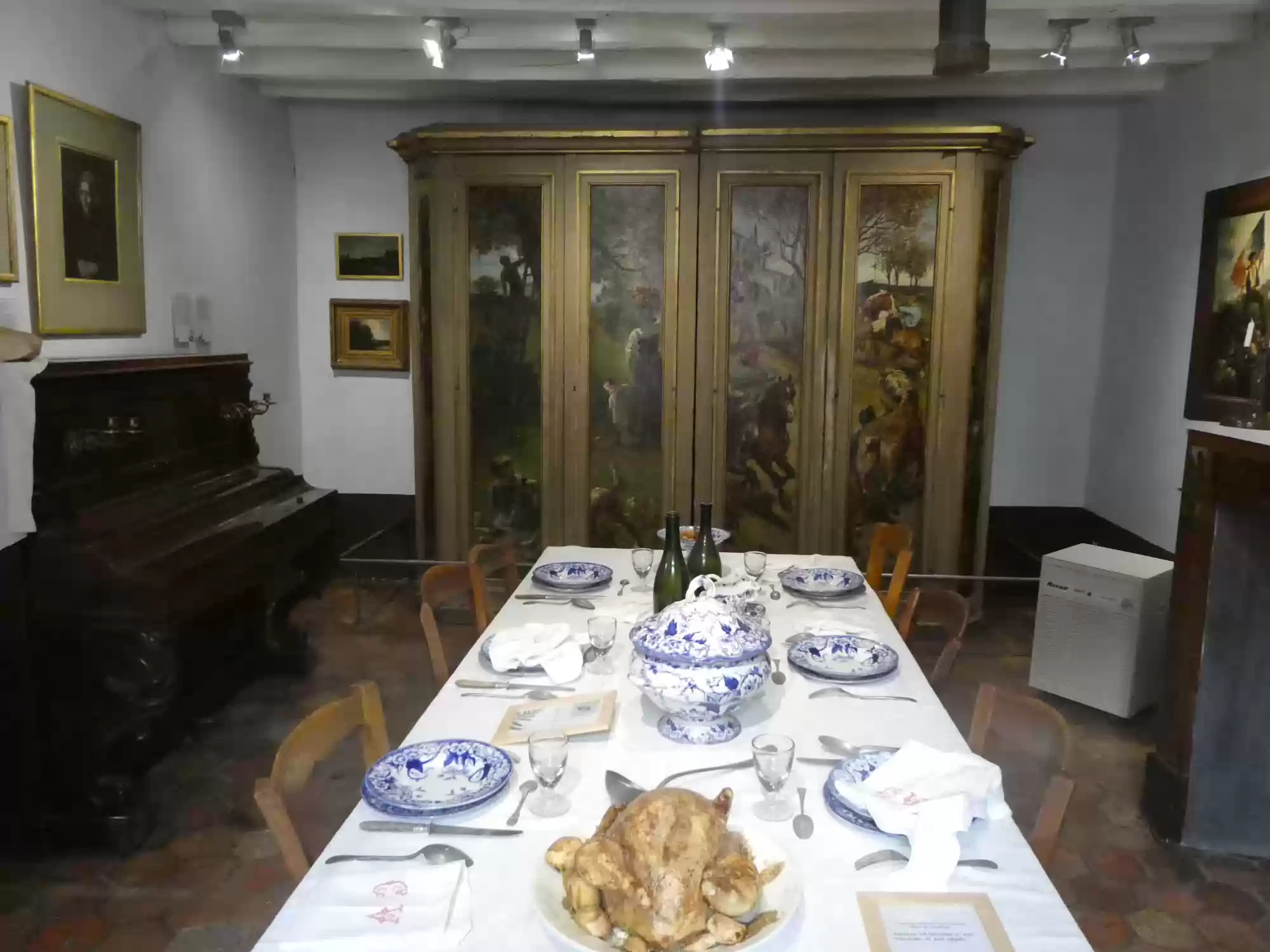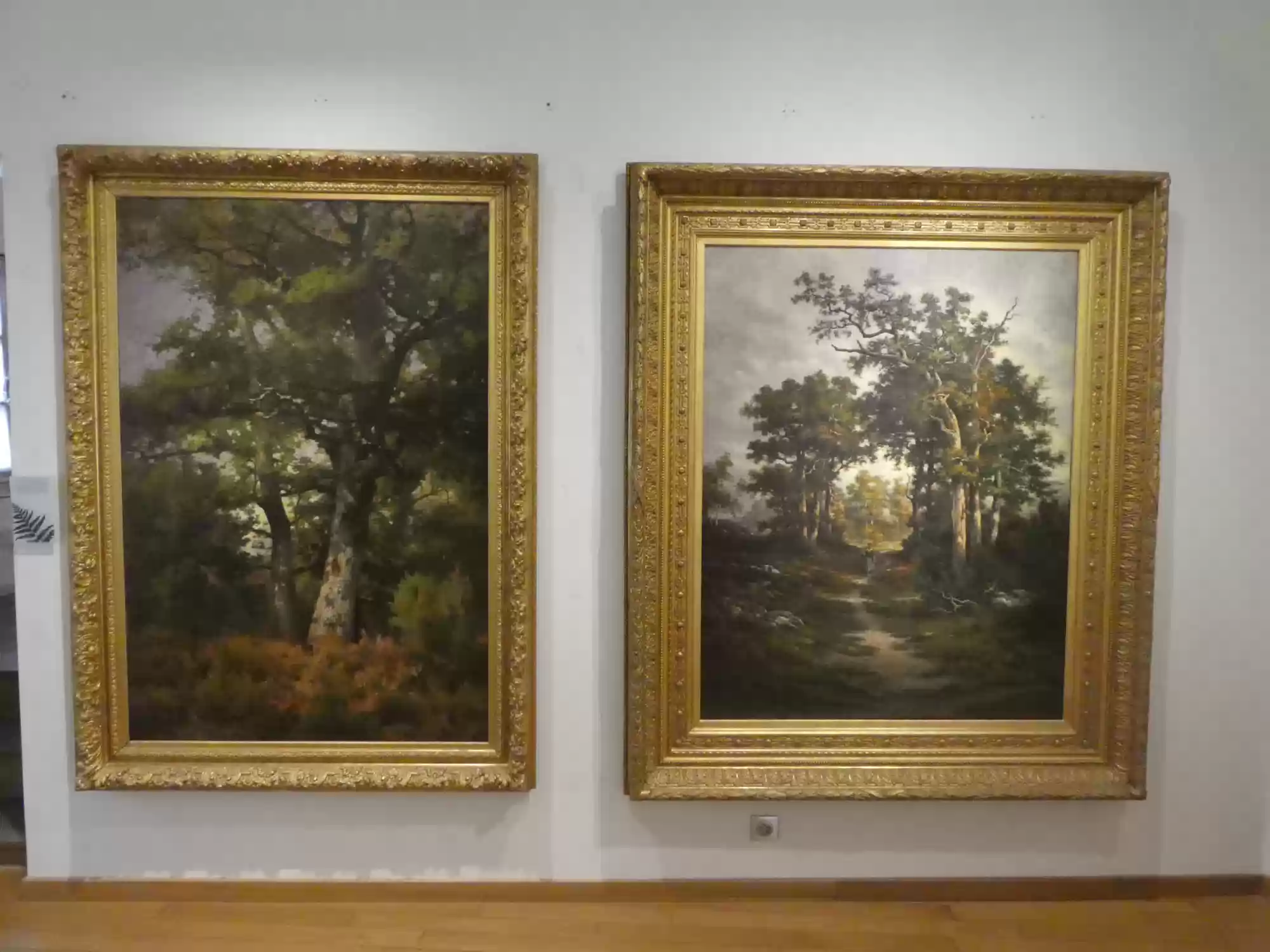 Auberge Ganne, where many artists lived or ate between 1820 and 1860, now a museum. Grocery, inside the inn. Tenant's bedroom. Tenant's bedroom. Officers' room. Officers' room. Paintings found while refurbishing the house to turn it into a museum. Siron inn sign, mid 19th century. Millet. Chaigneau (1830-1906), rural scenes. Chaigneau (1830-1906), farm. Theodore Rousseau (1812-1867), rural home. Georges Gassies (1829-1919), Moreau rock at sunset. Labels