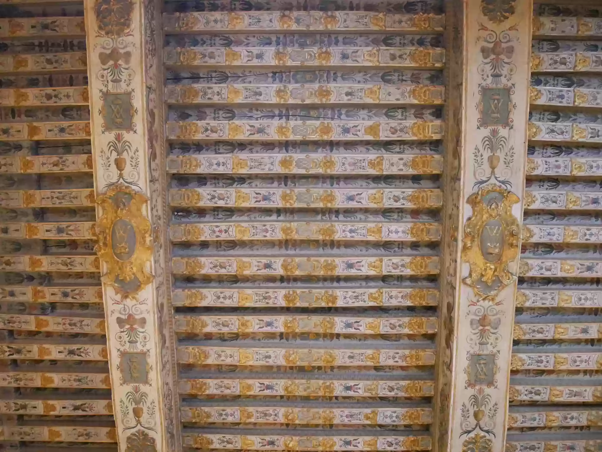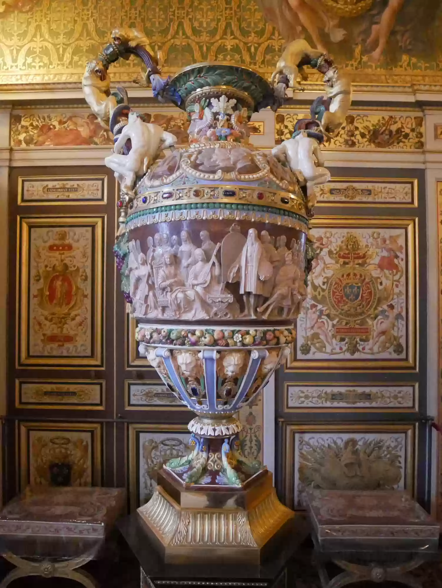 Guard room, the first room of the royal apartment, occupied by soldiers of the guard. The ceiling and the frieze at the top of the walls are from the 16-17th…