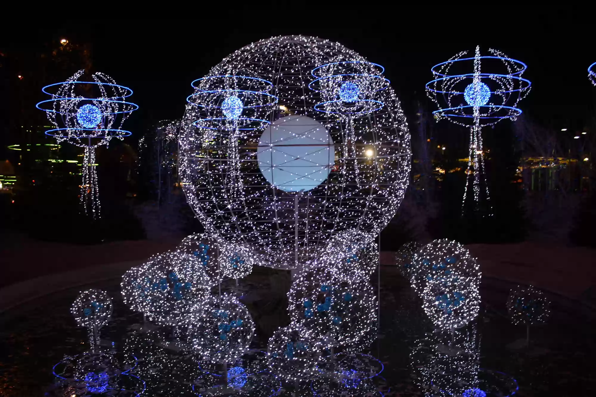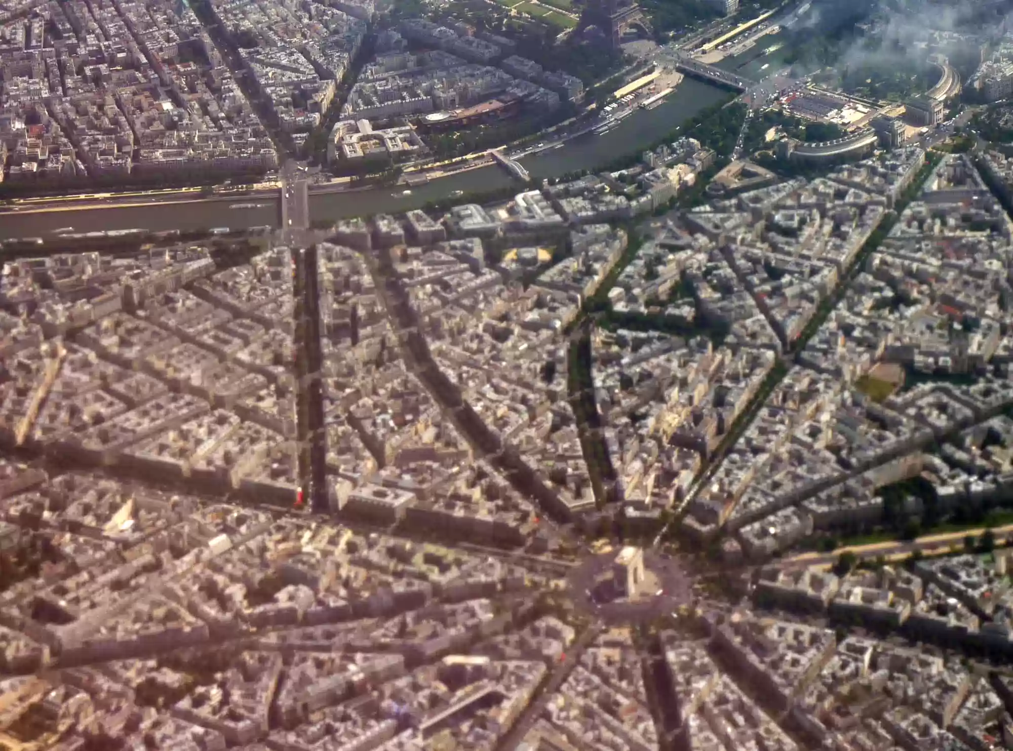 The Champs-Elysées are a large avenue linking Concorde square to the Arc de Triomphe . On the picture, the avenue is in the bottom/middle left corner.