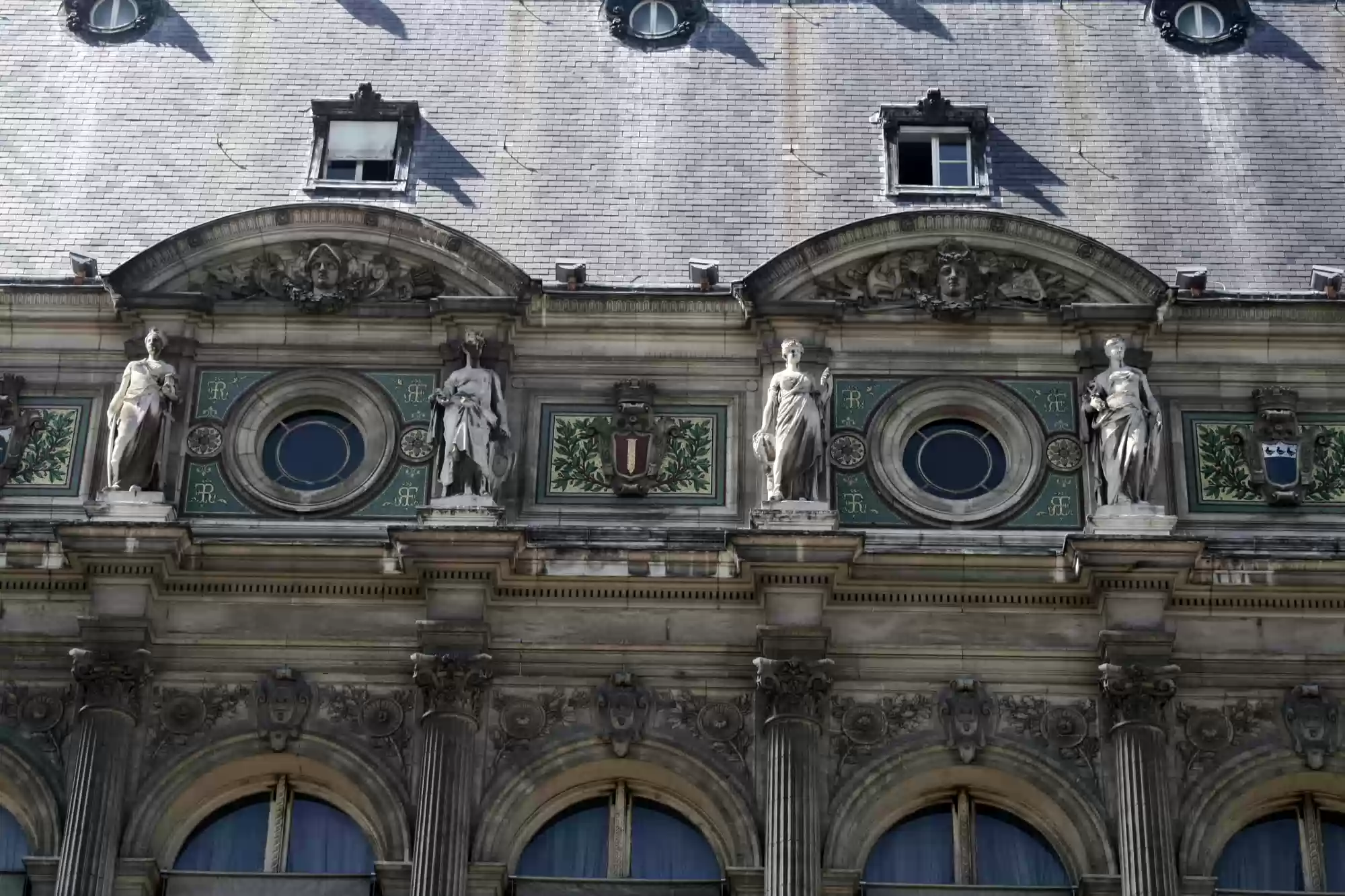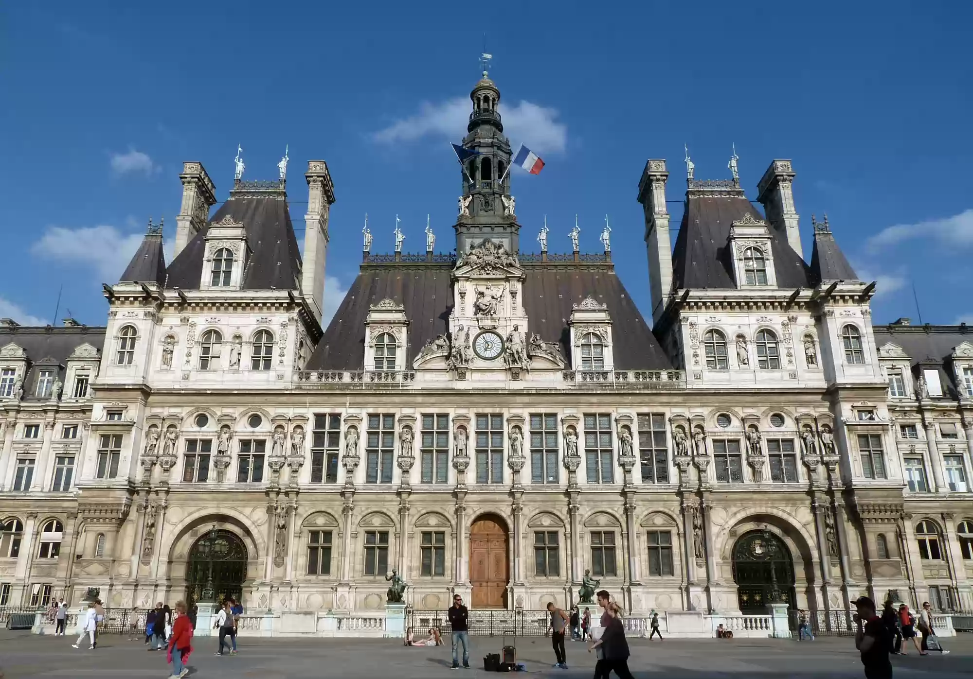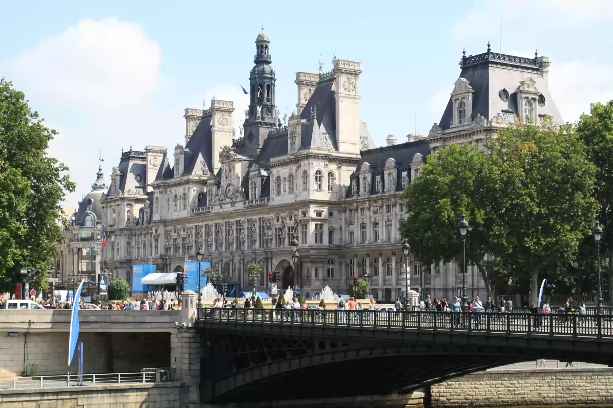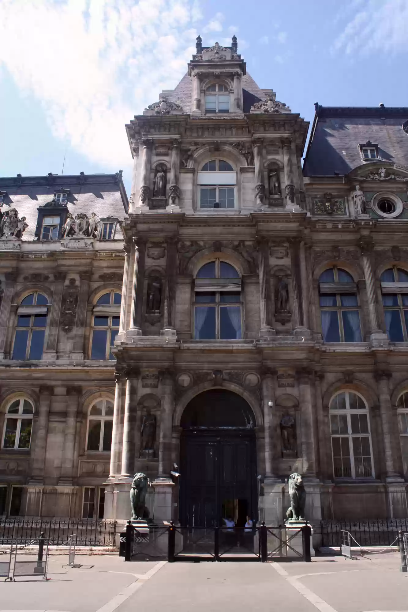 The townhall; originally a gothic building, it was partly rebuilt in 1533-1551, and 1606-1628. The building burnt in 1871 and was rebuilt in 1874-1882. Townhall by night. 2016 flood. Sens hotelVosges square Labels