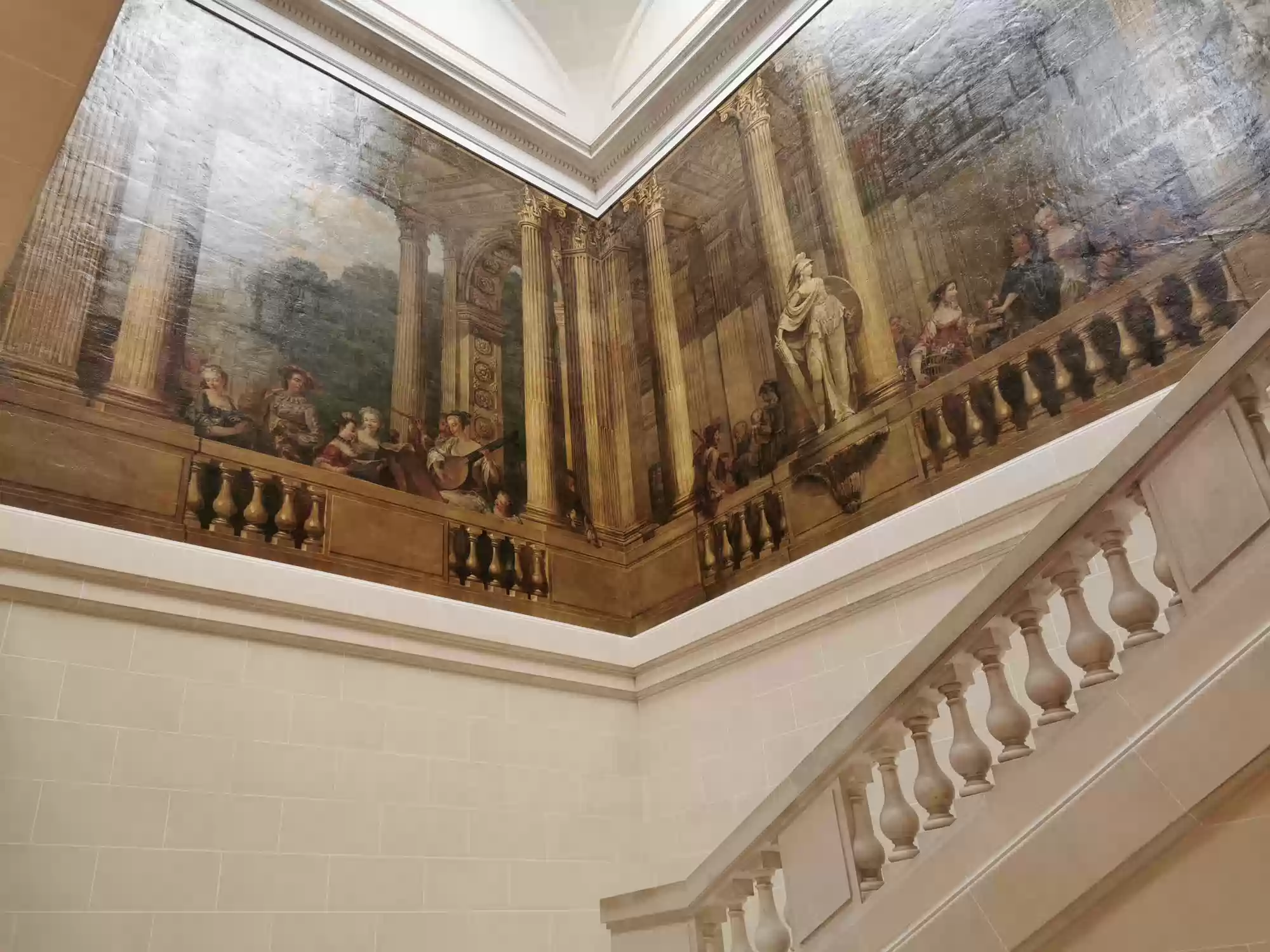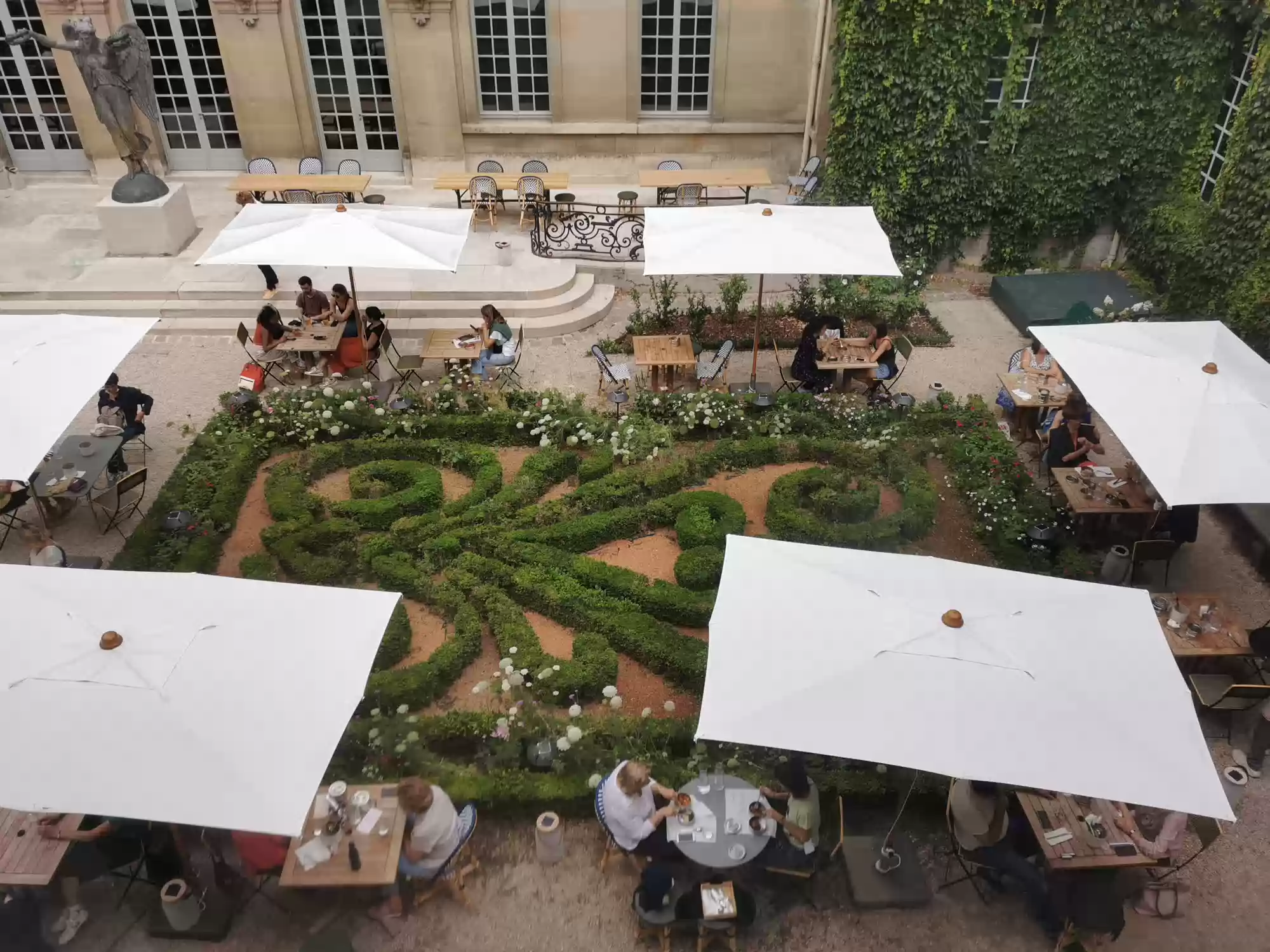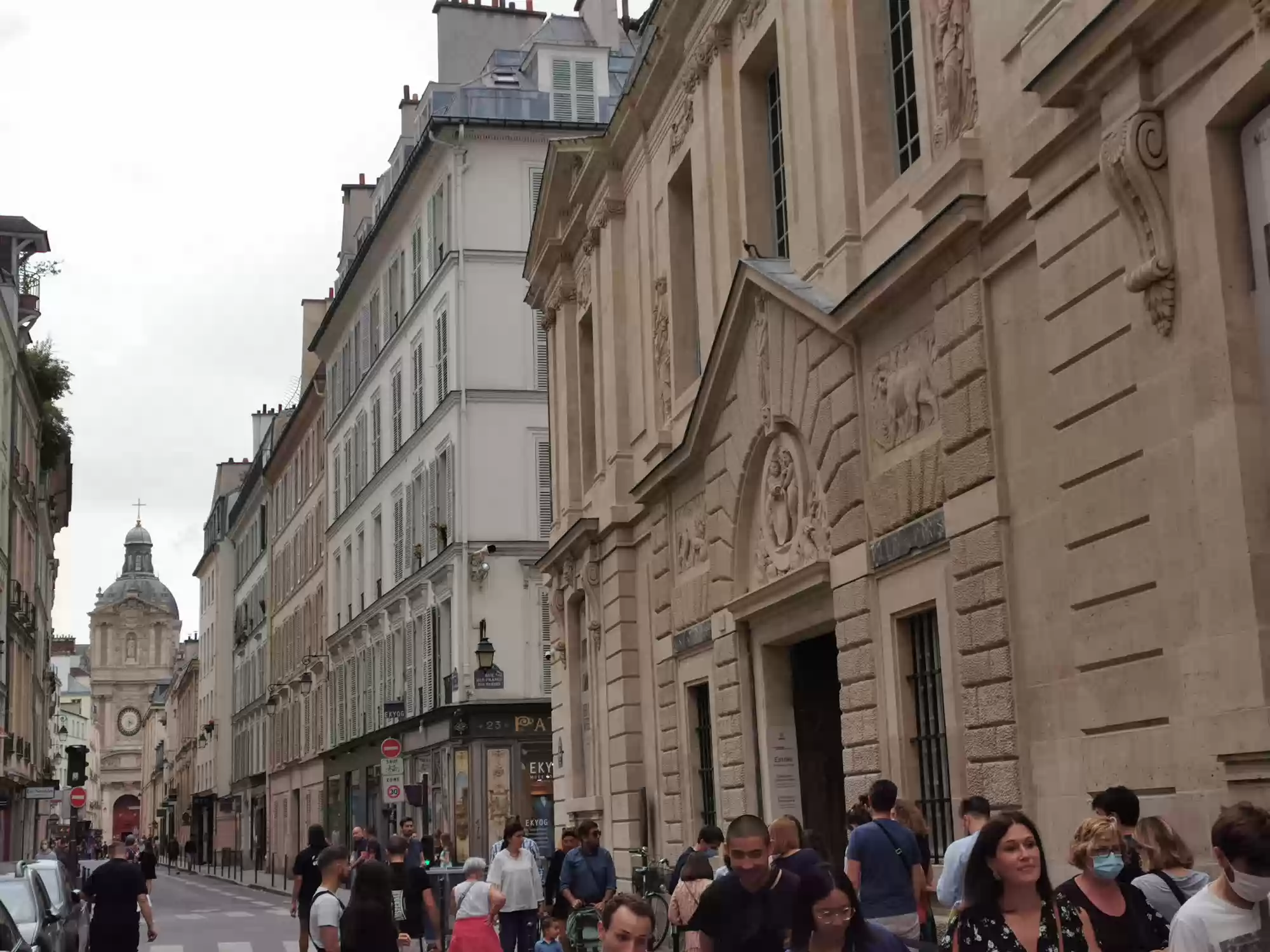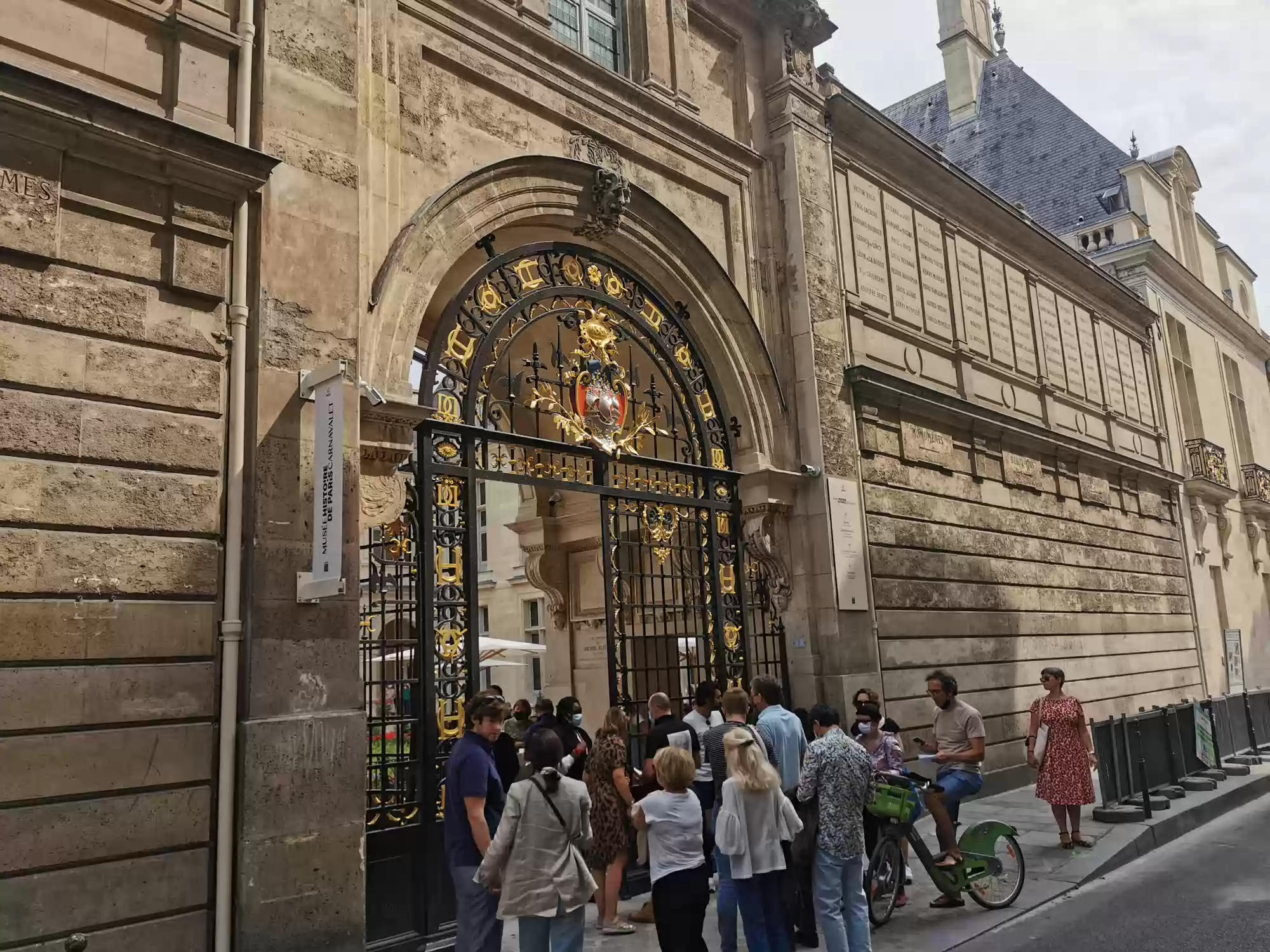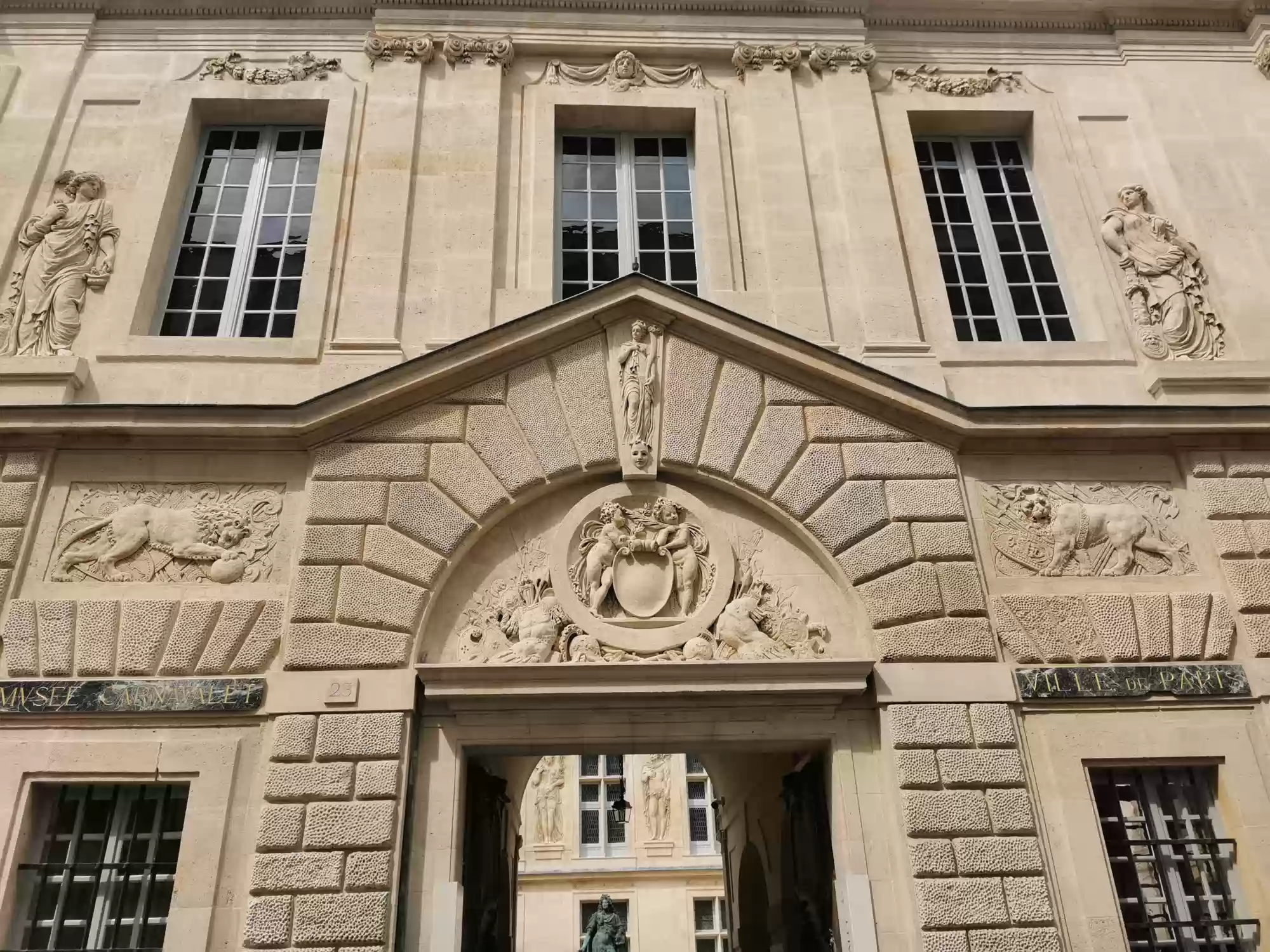 Main courtyard of hotel Carnavalet, with a statue of Louis XIV by Antoine Coysevox, 1689. The renaissance hotel was remodeled by Mansart in 1660. Roofs were…
