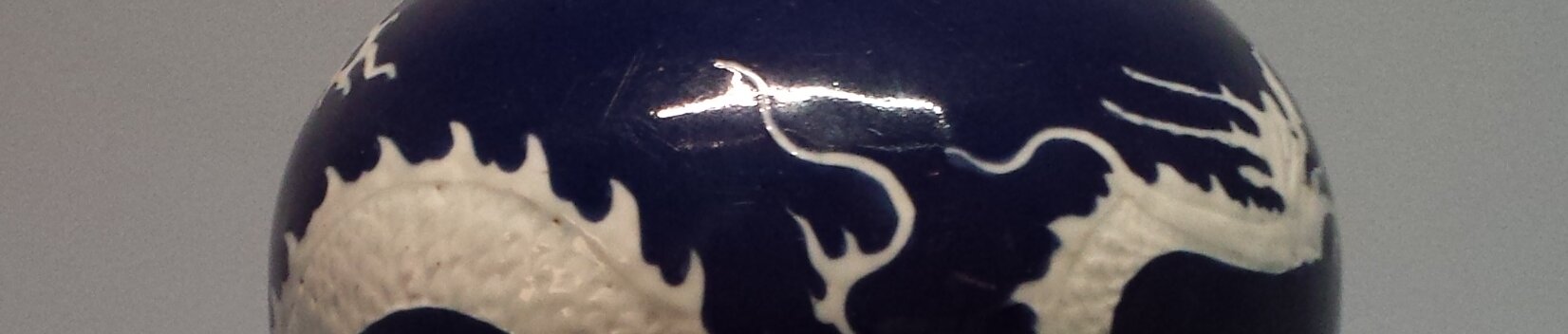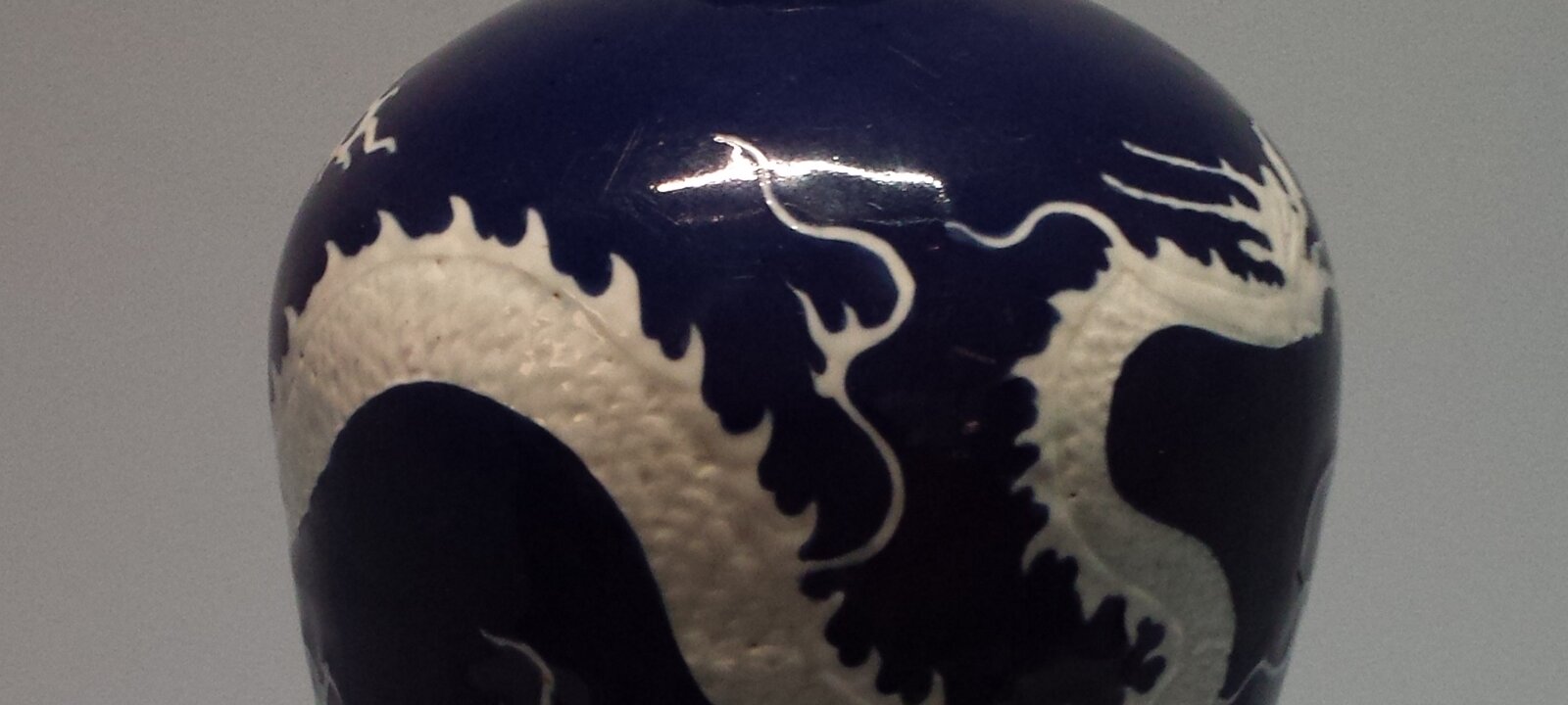 Meiping vase with dragon decor, Jingdezhen kilns (Jiangxi), Yuan dynasty (1279-1368). Porcelain, relief and reserved decoration on a cobalt blue ground under…
