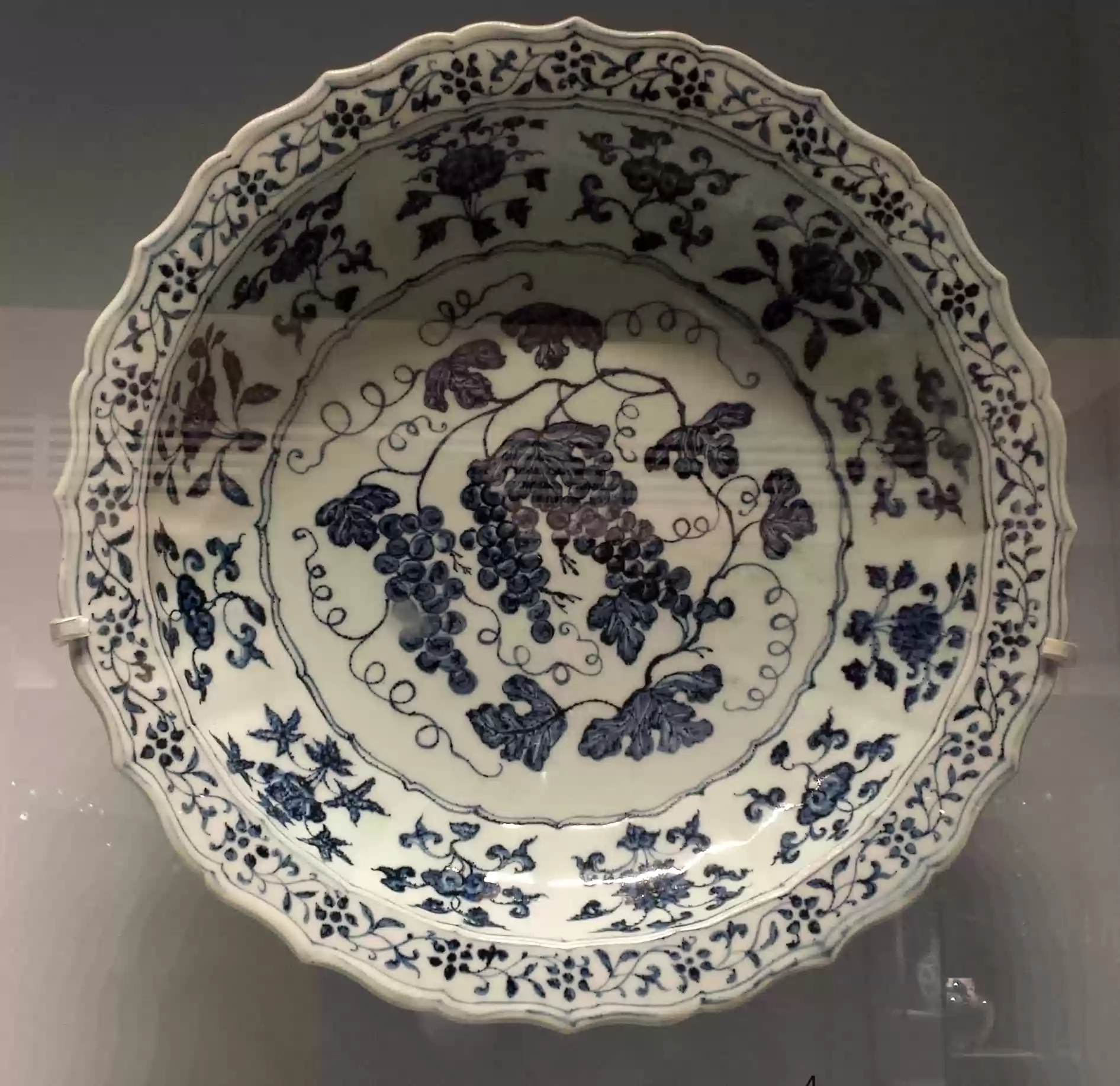 Dish with flower decoration, Jingdezhen kilns (Jiangxi), Ming dynasty (1368-1644), Yongle era (1403-1424). Porcelain "blue and white". Fabricated to be exported…