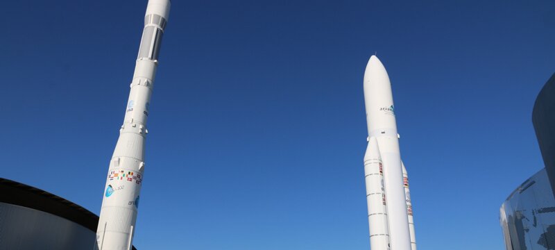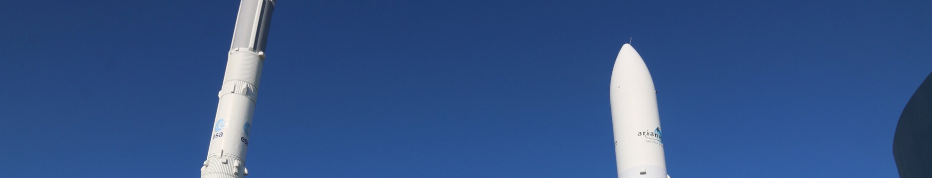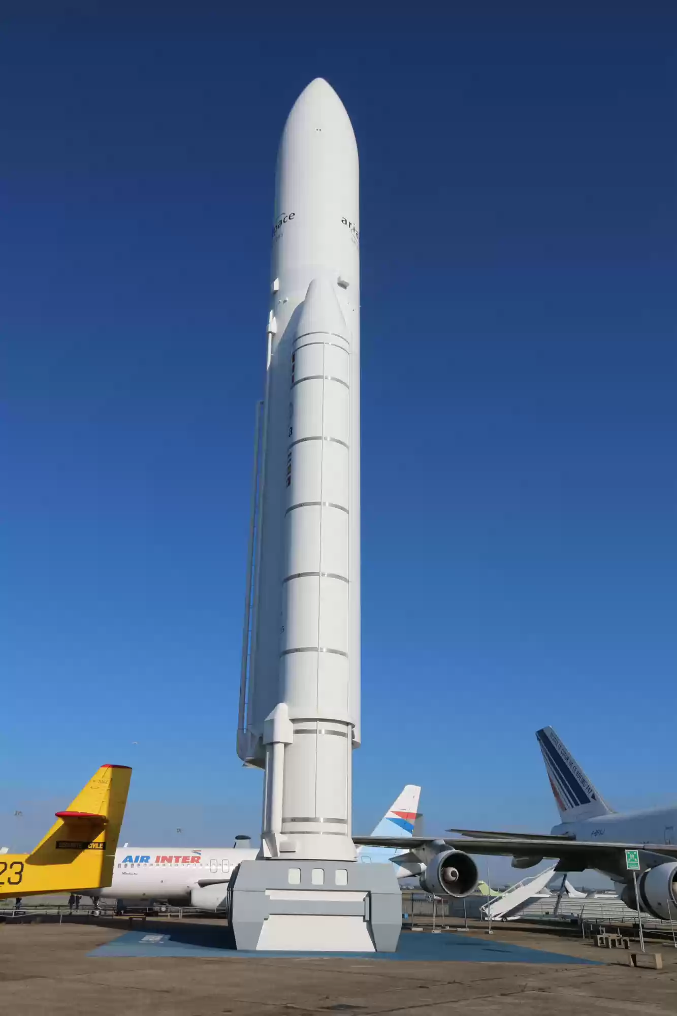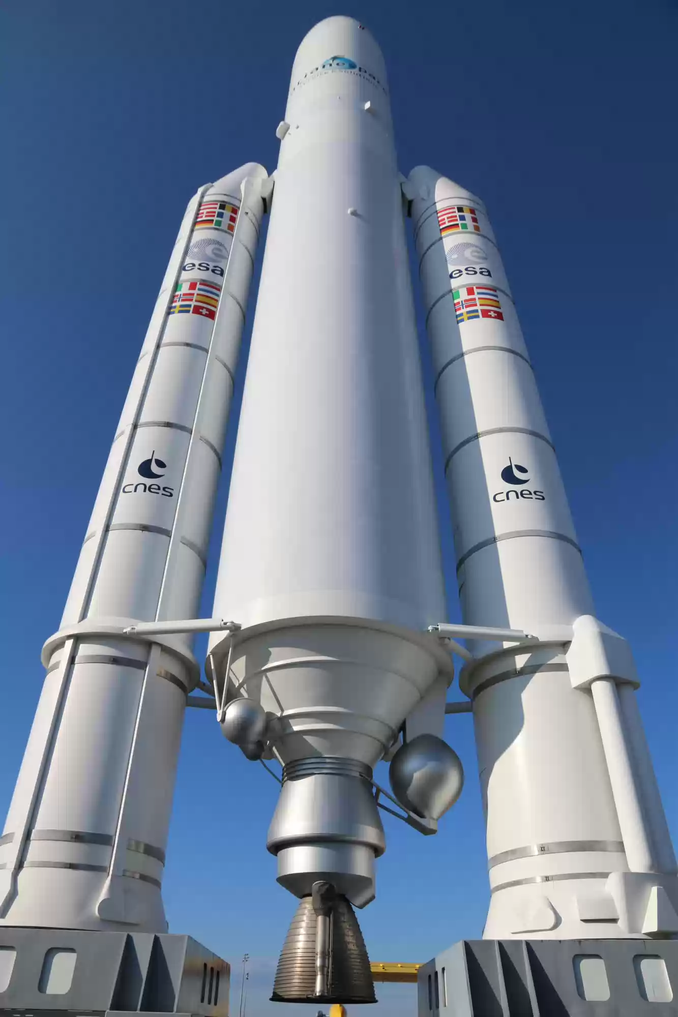 Ariane 5 launcher: first launch on 4 June 1996, 50 consecutive launches between 2003-2013, 50-55m tall, payload: more than 20 tons.