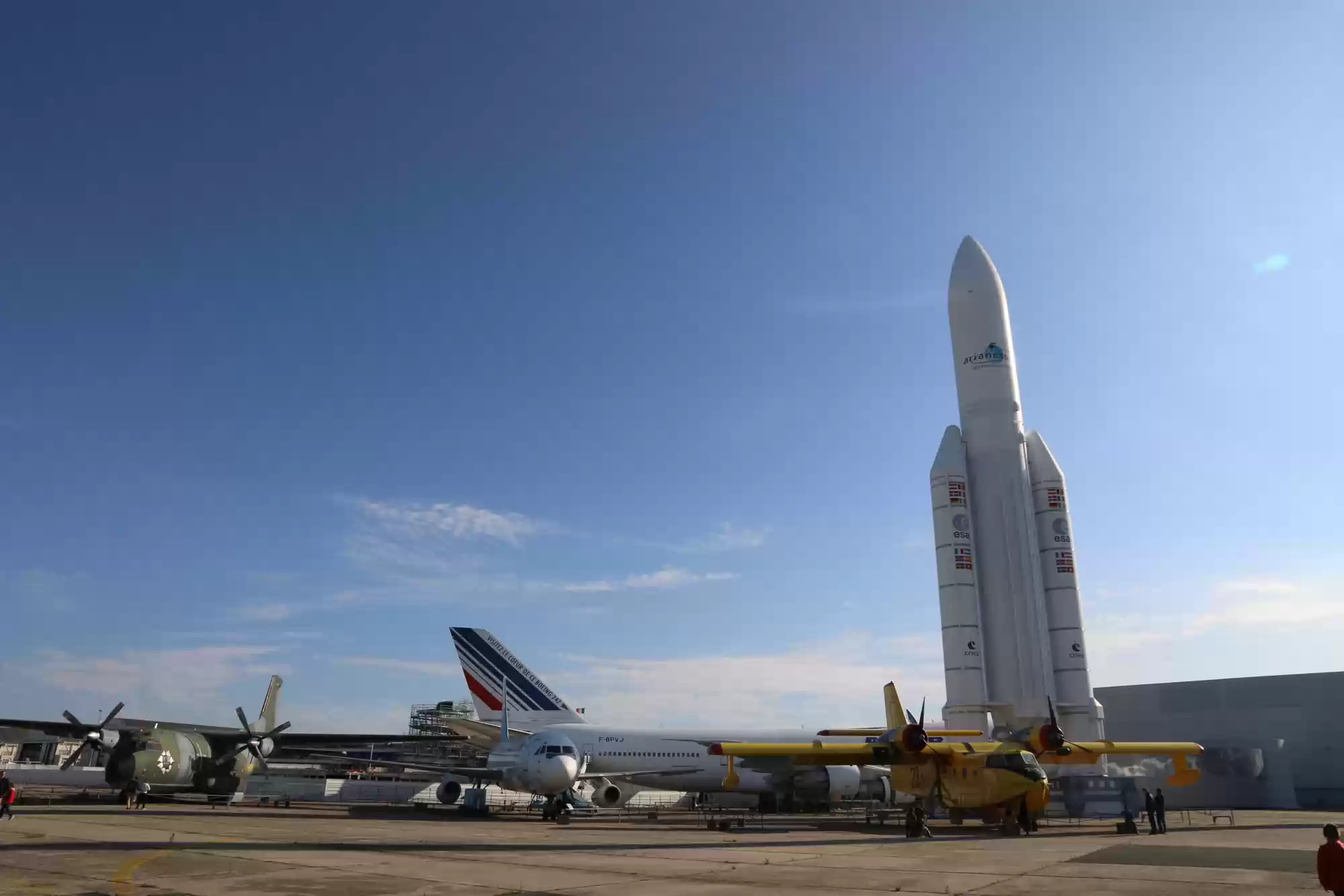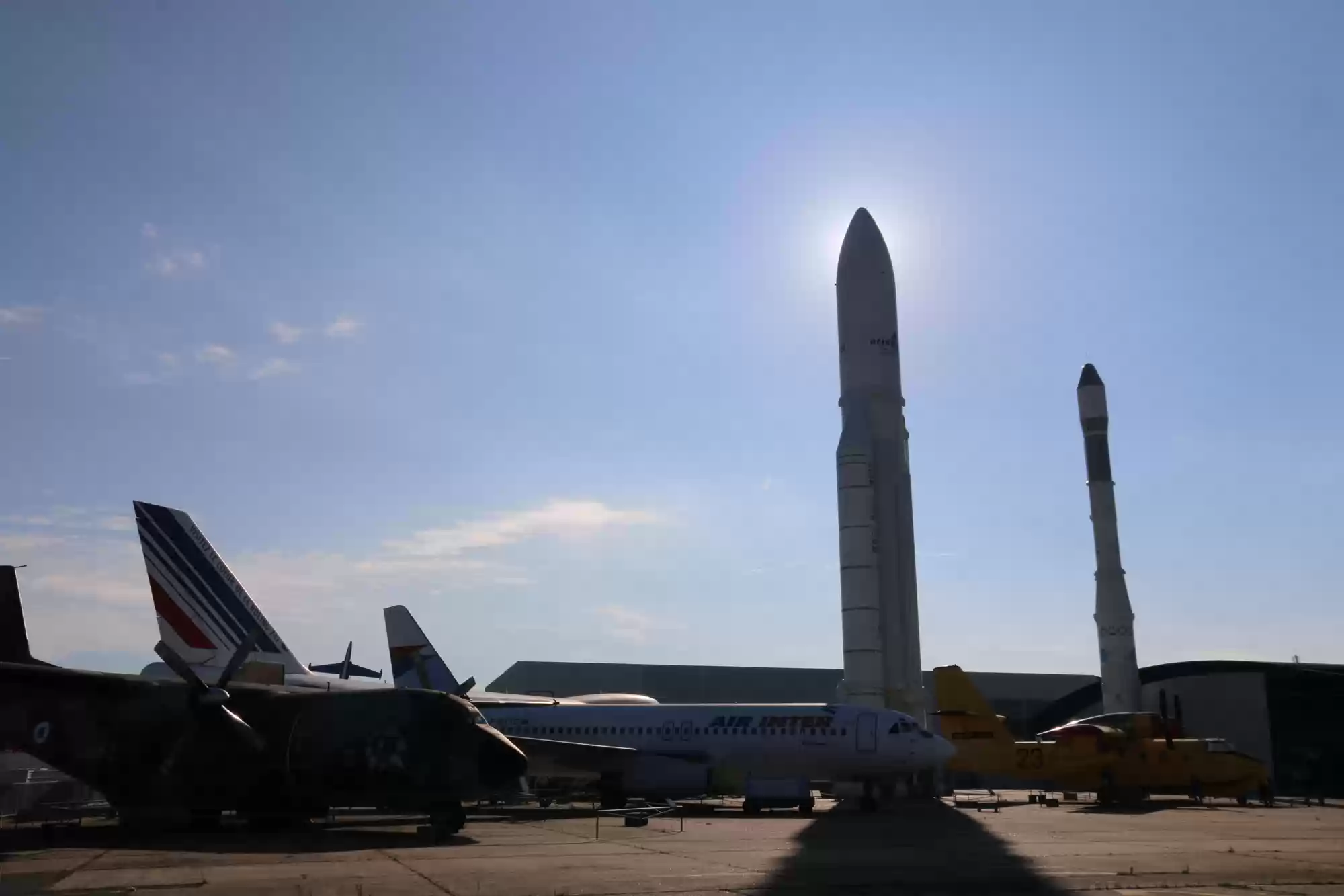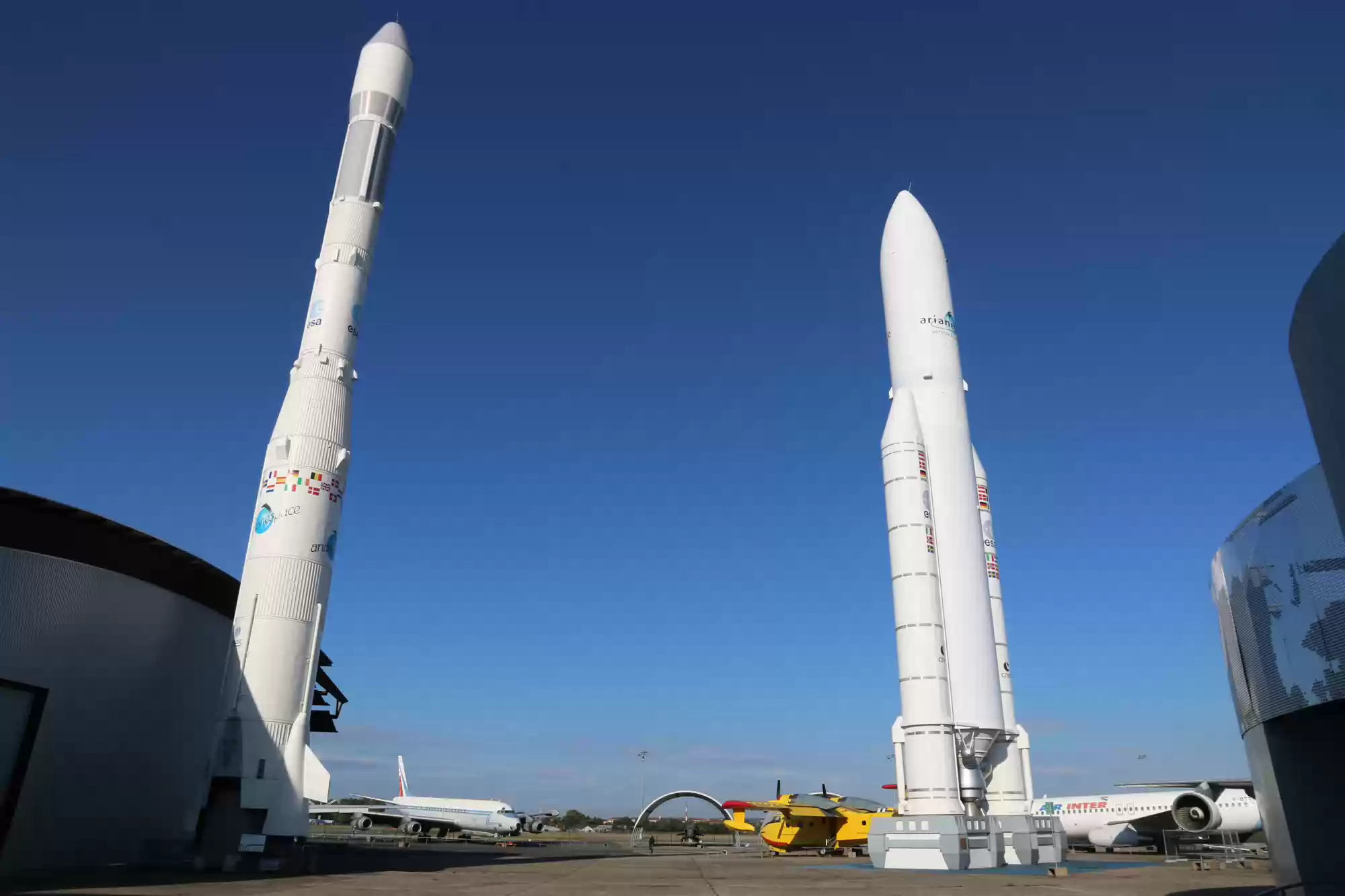 Ariane 5 launcher: first launch on 4 June 1996, 50 consecutive launches between 2003-2013, 50-55m tall, payload: more than 20 tons.