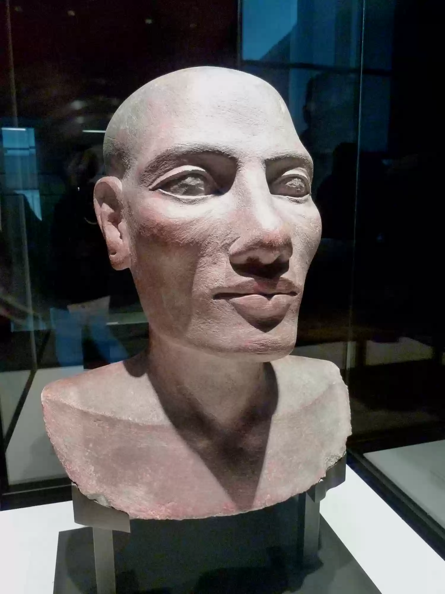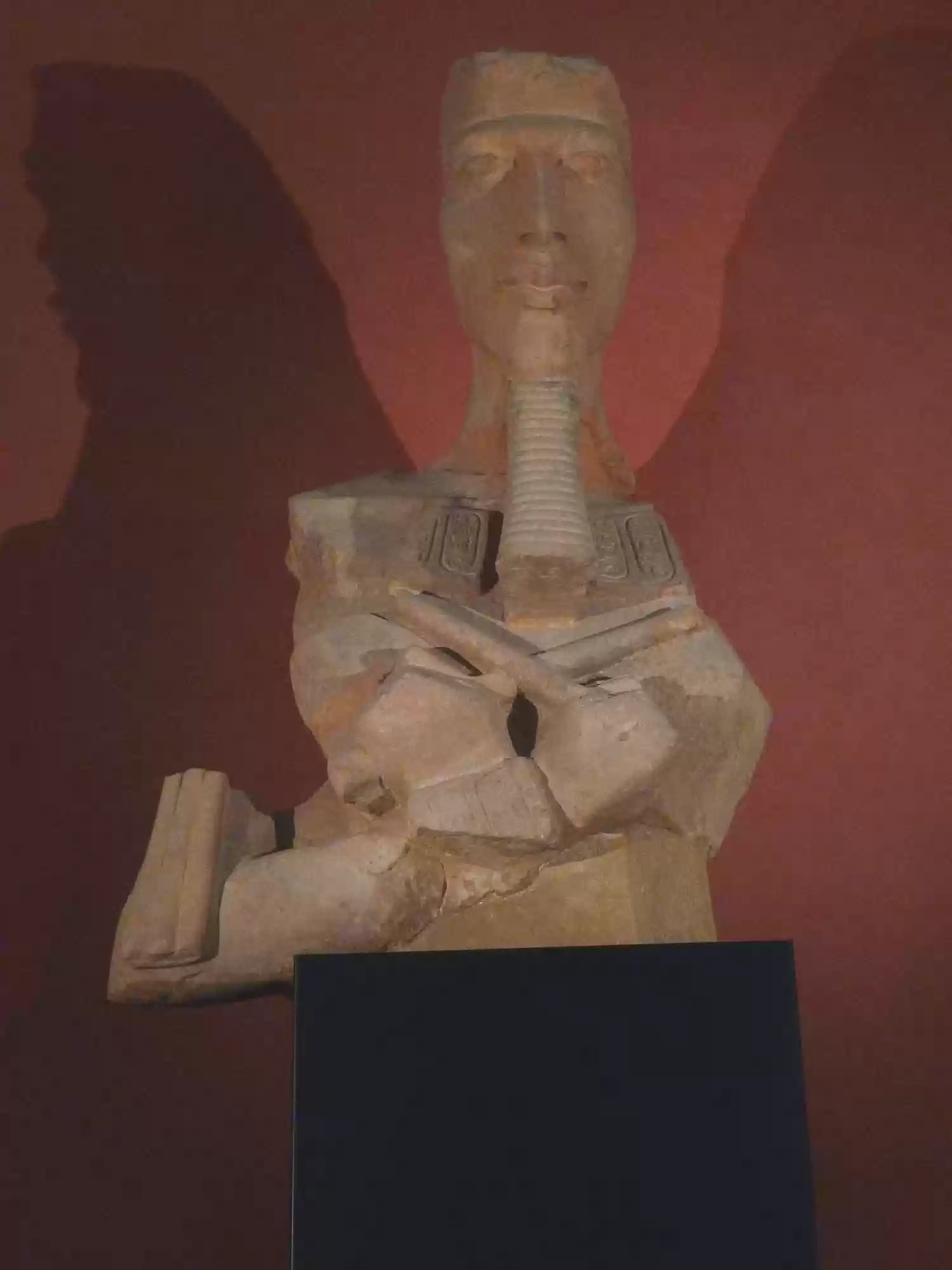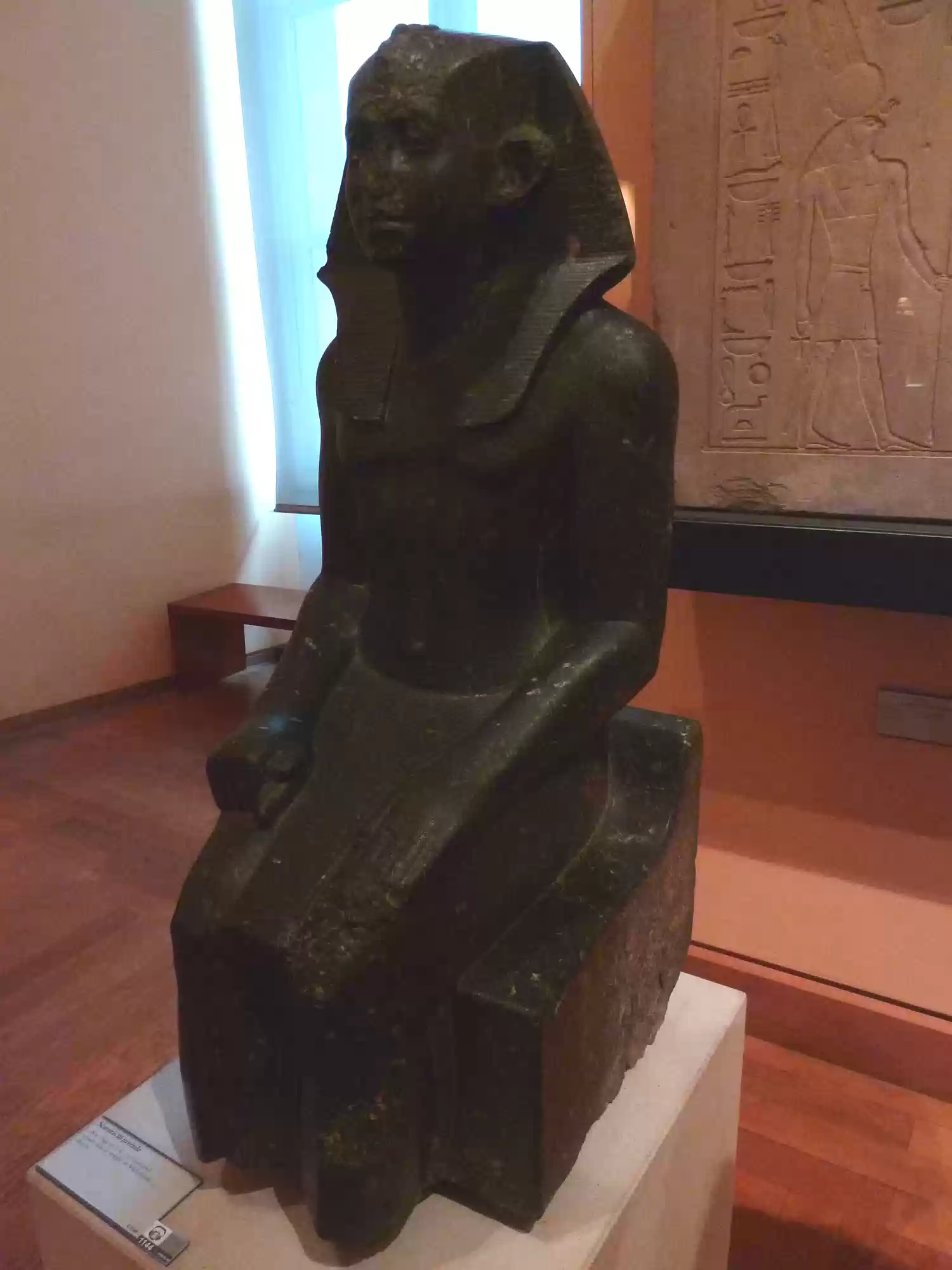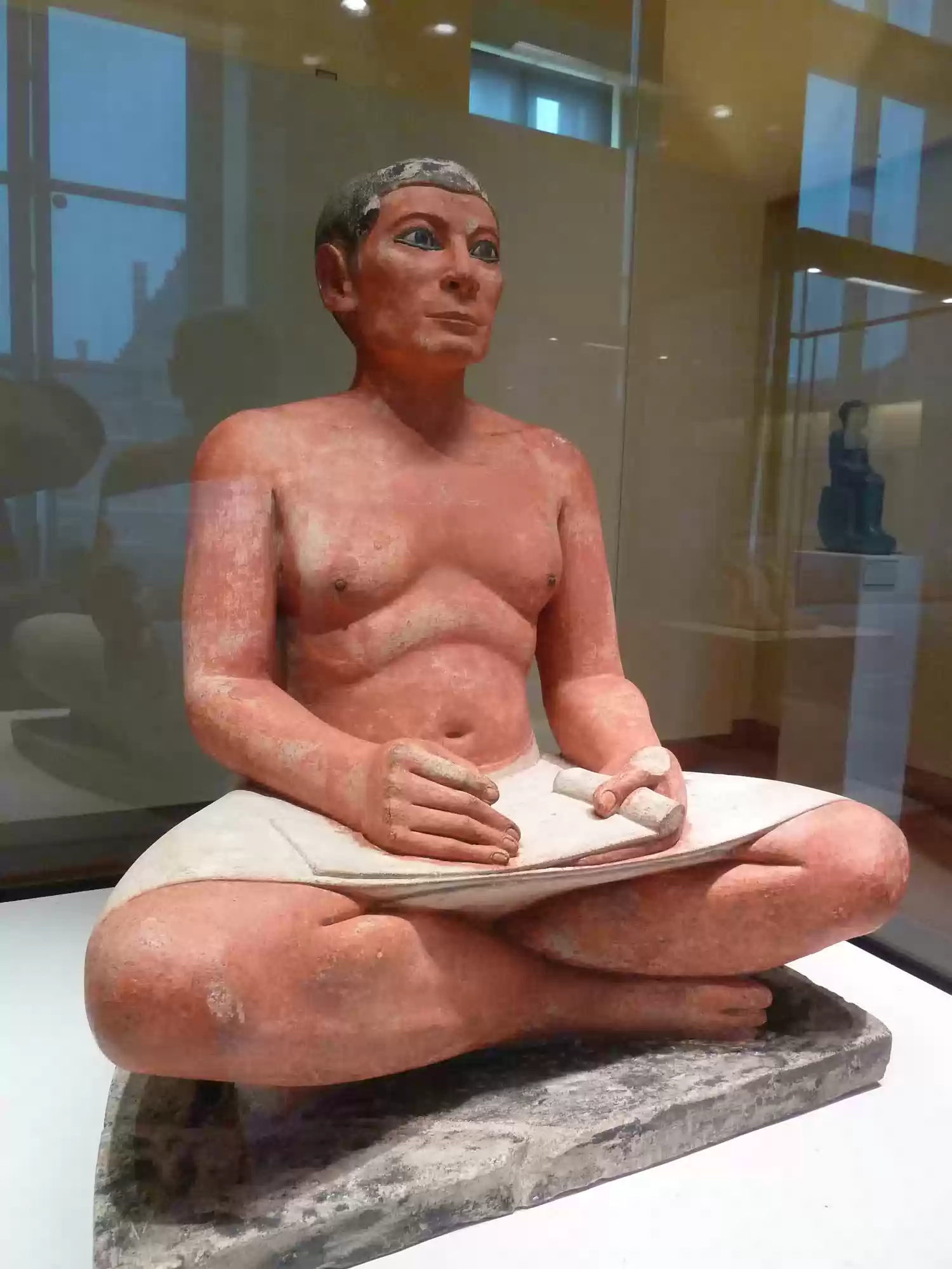 Seating scribe, 2600-2350 BC, found in Saqqara, painted limestone, eyes inlaid in rock crystal in copper.