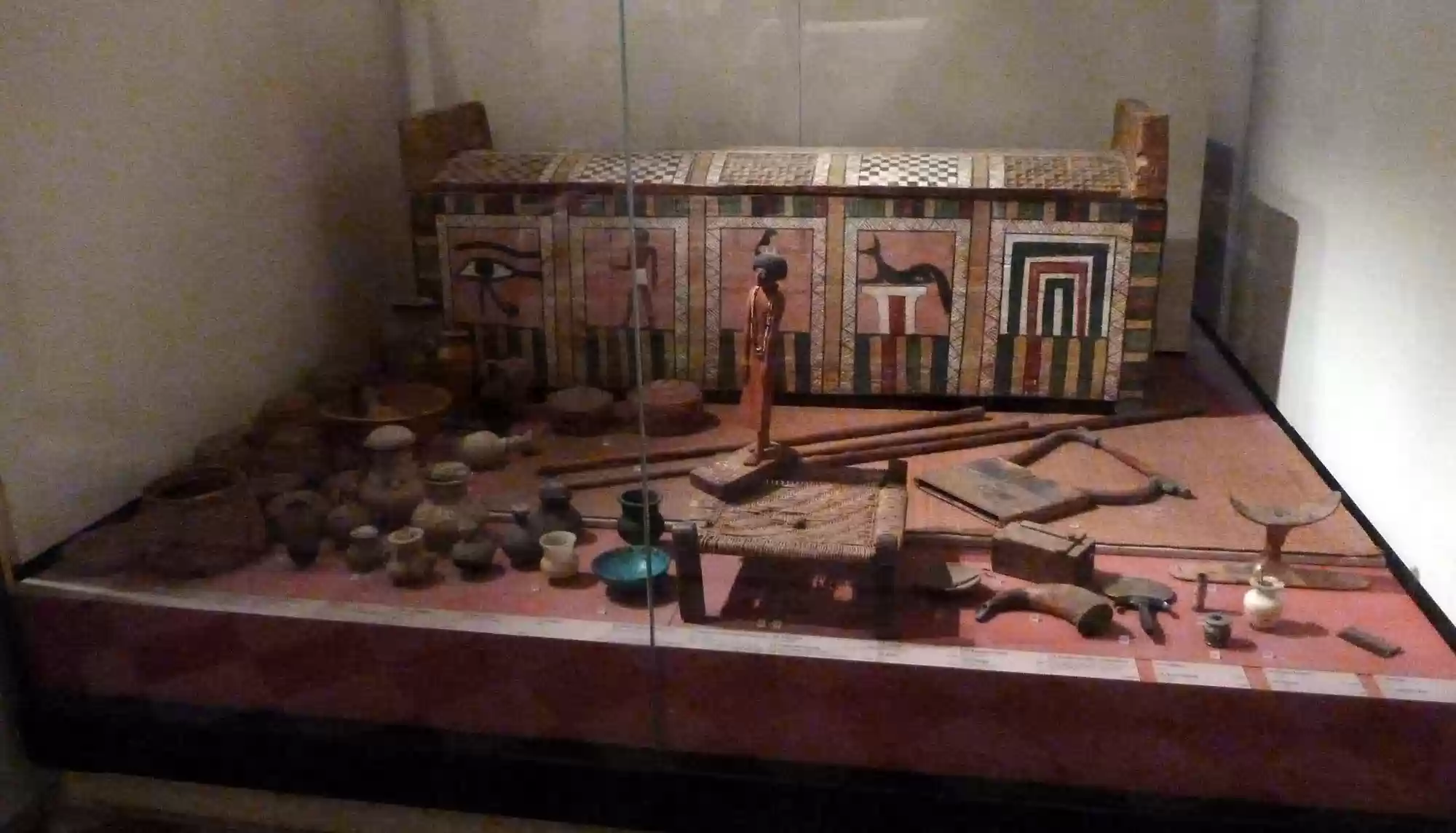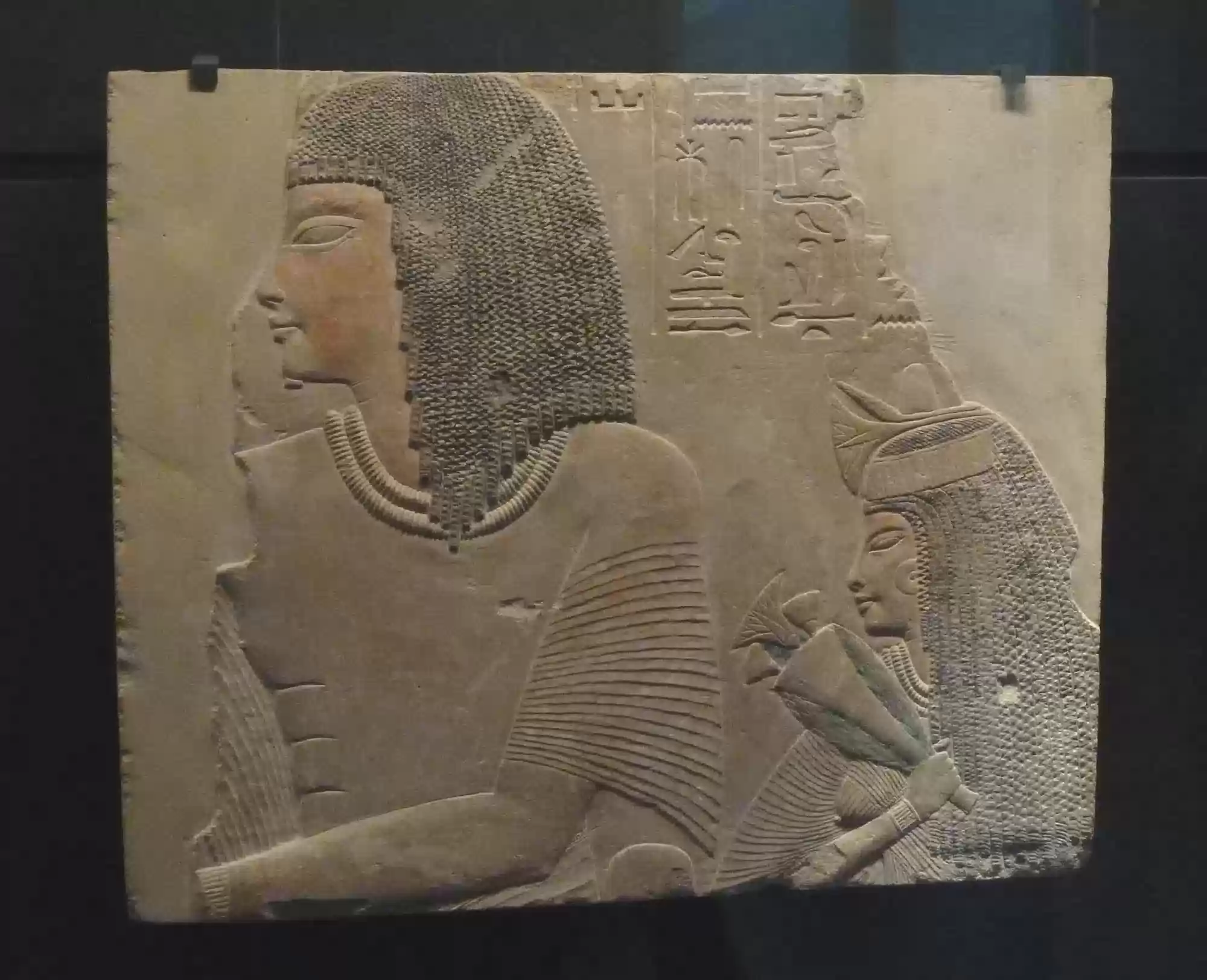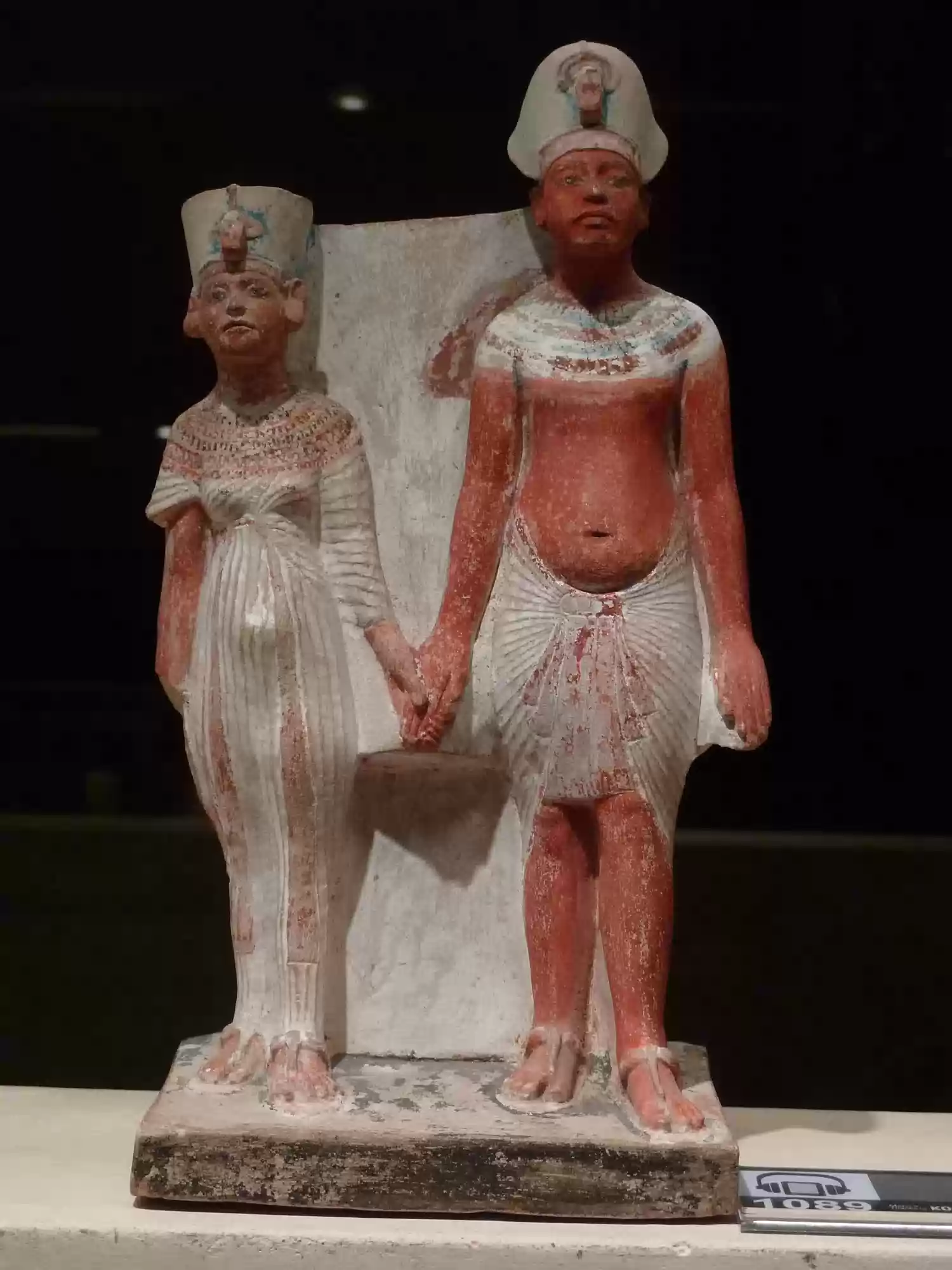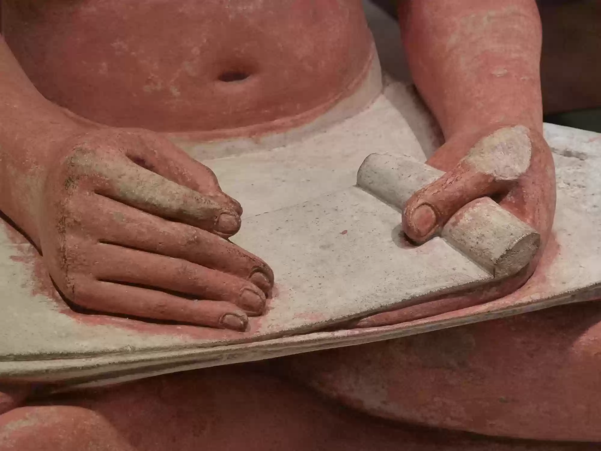 Seating scribe, 2600-2350 BC, found in Saqqara, painted limestone, eyes inlaid in rock crystal in copper.