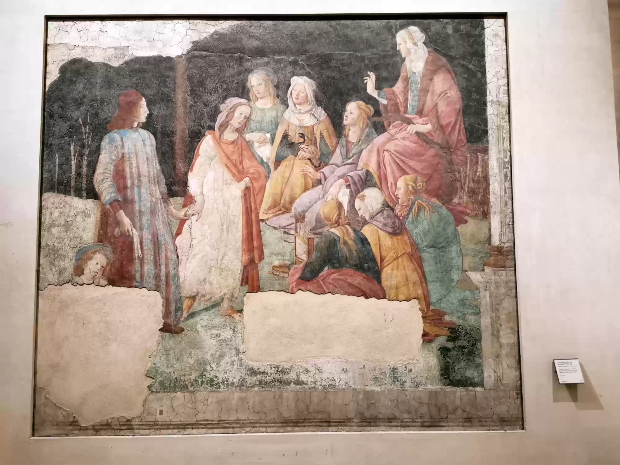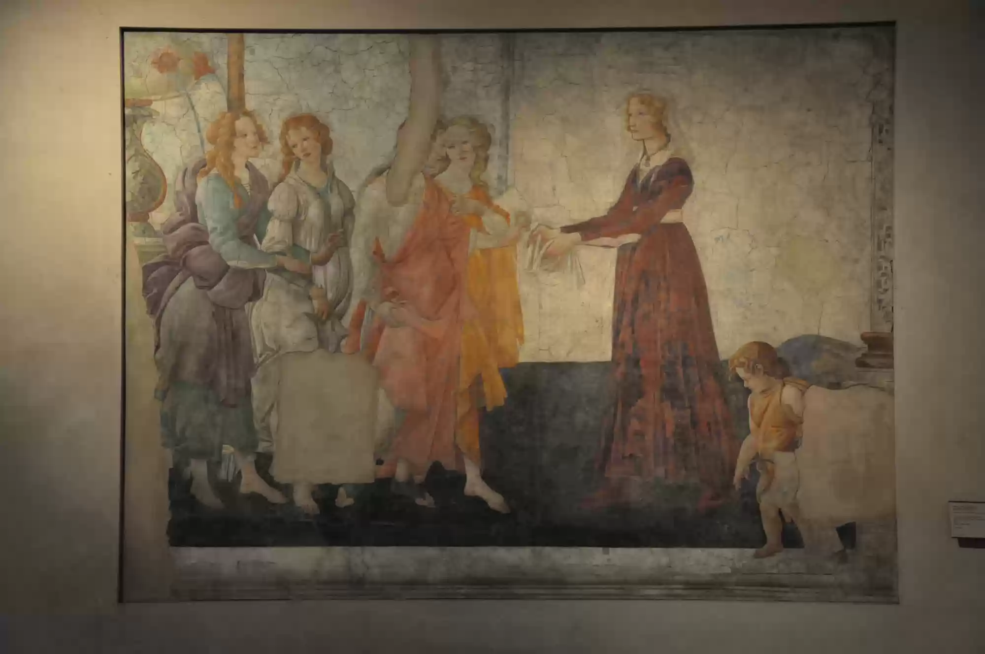 Botticelli, Venus and the 3 graces offer presents to a young lady, fresco, 1483-1485 (originally in Villa Lemmi near Florence).