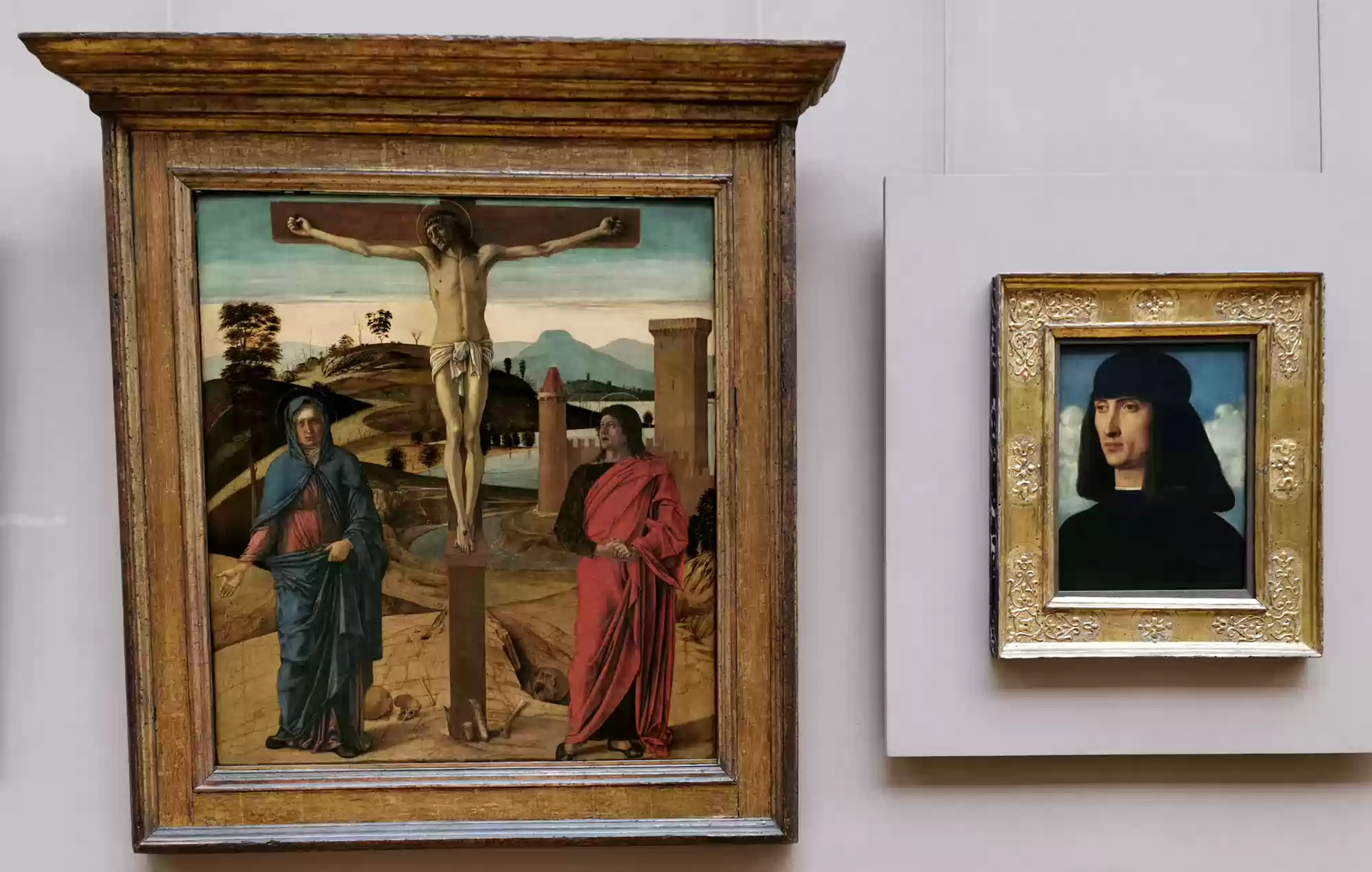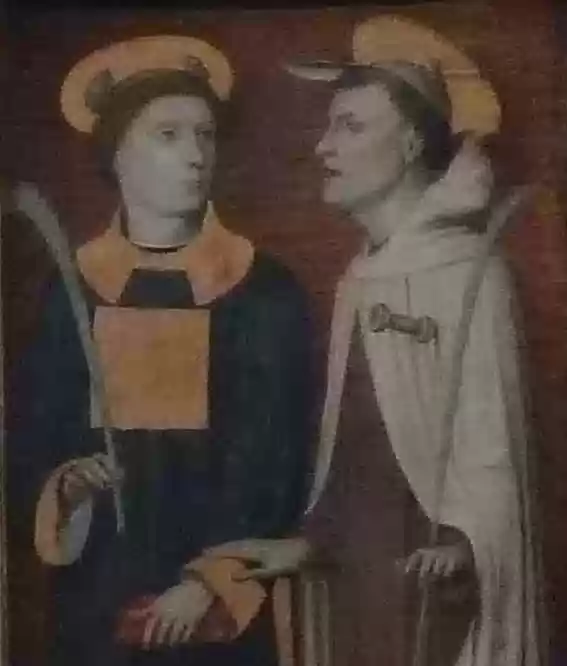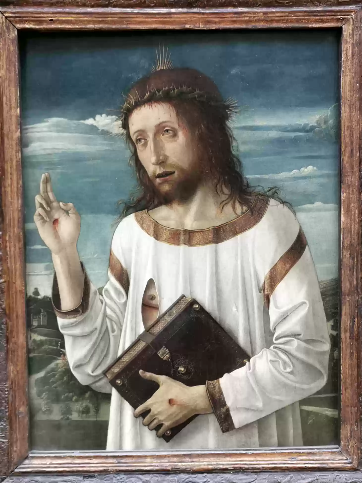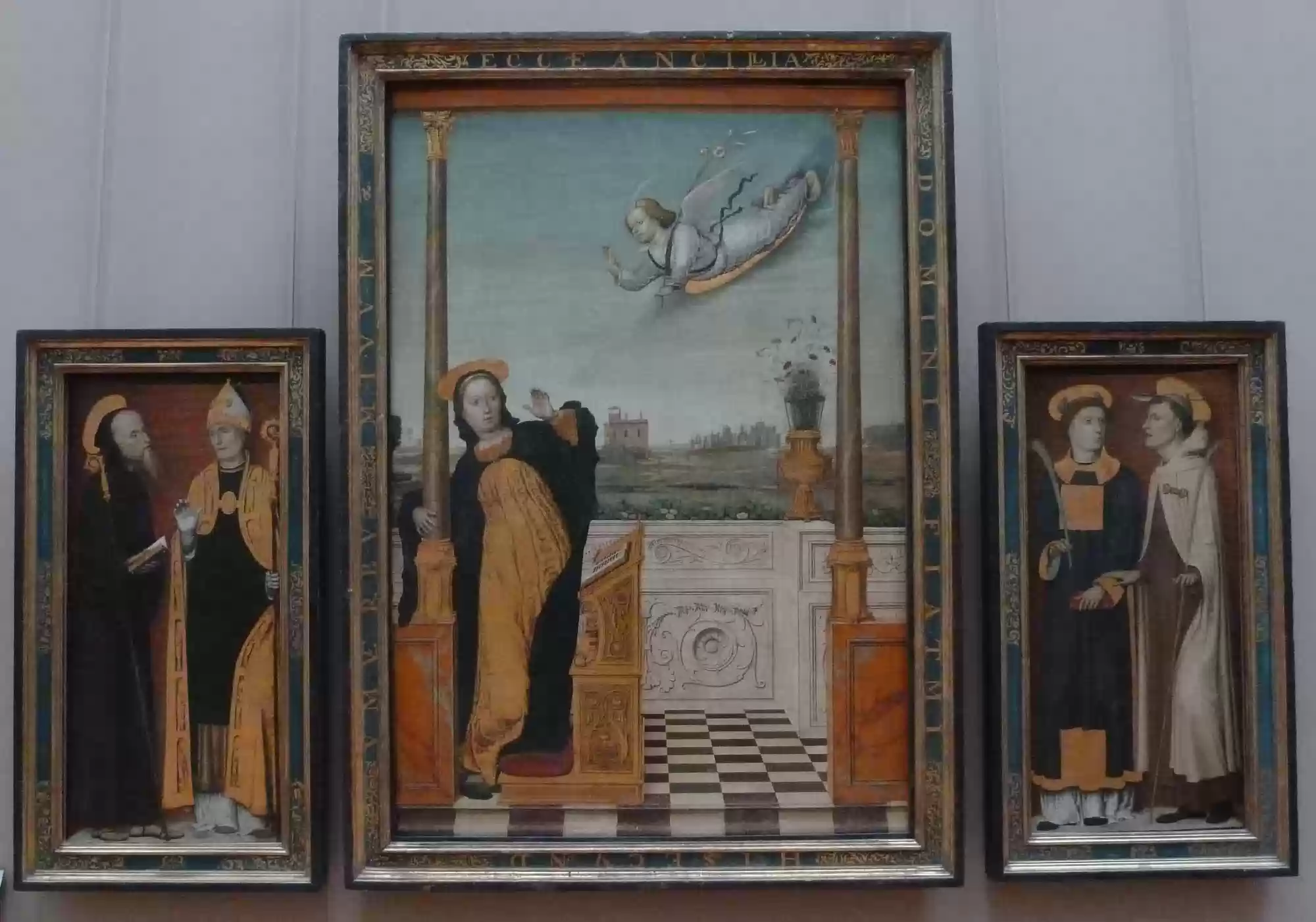 Carlo Braccesco, The annunciation, St Benedict and a bishop, St Stephen and saint Ange le carme, ca. 1490-1500.