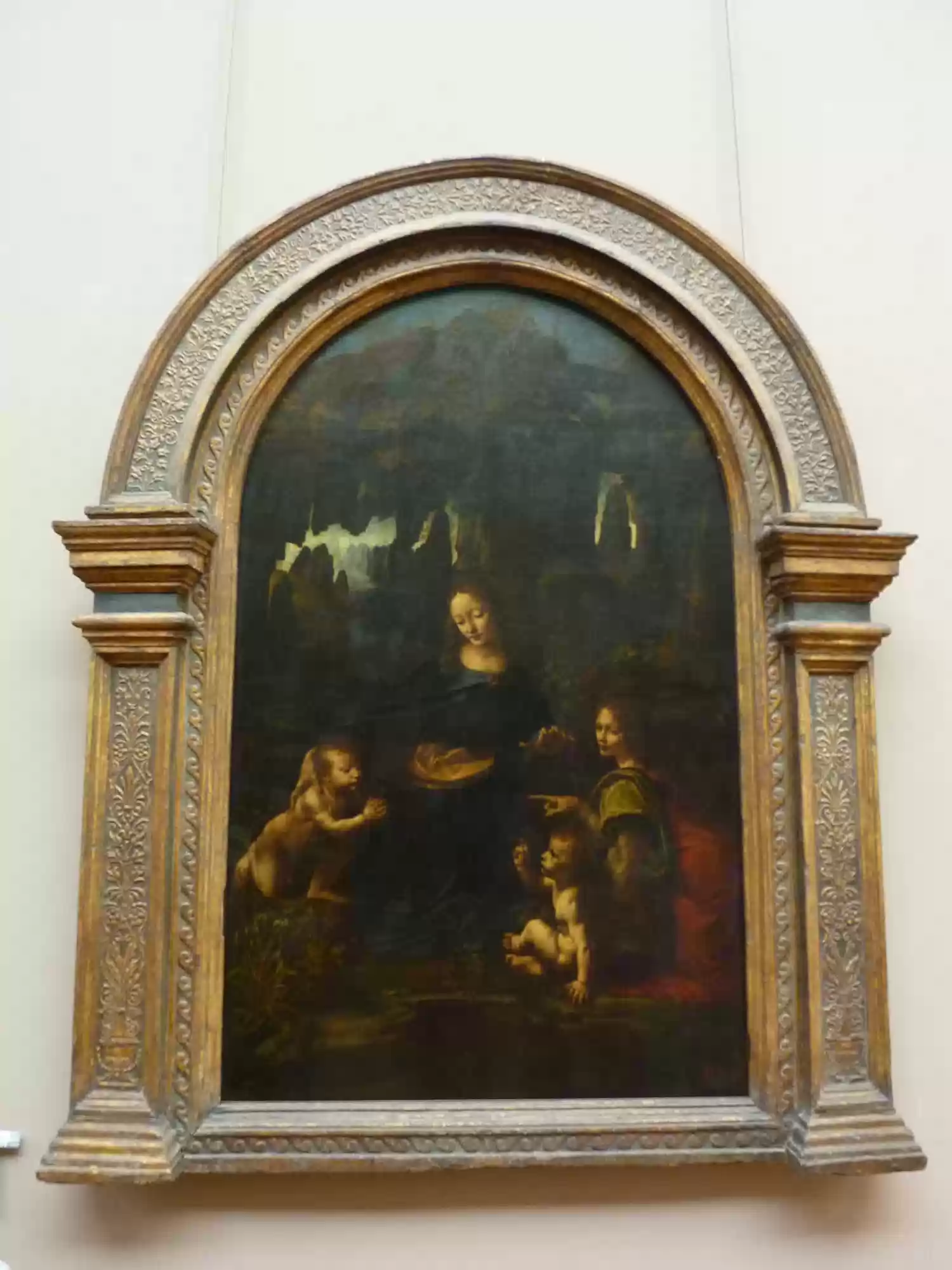 Leonardo da Vinci: Virgin of the rocks, 1483-1490. This is the earlier of 2 versions, the other versions is exhibited at the National Gallery of London .