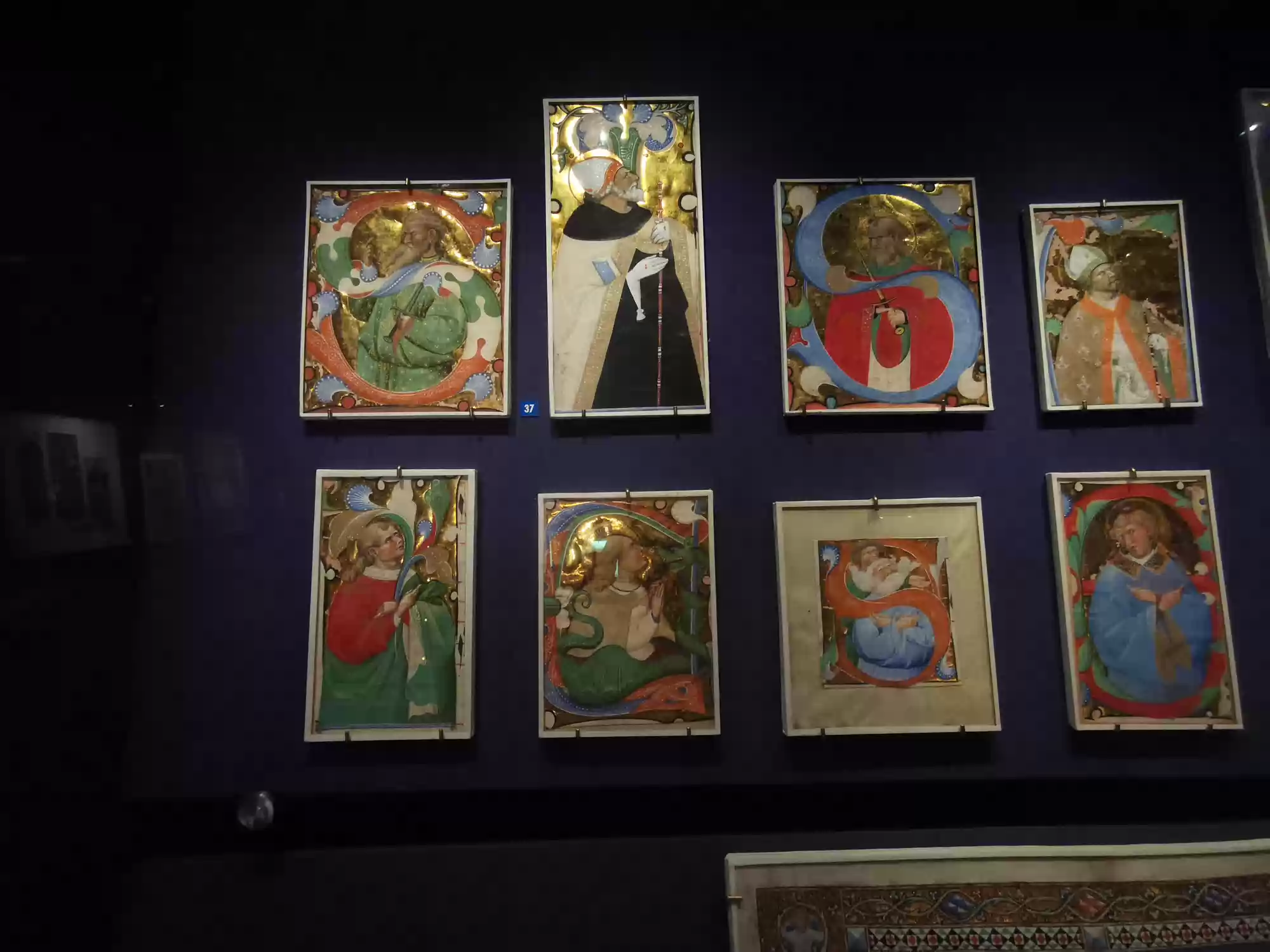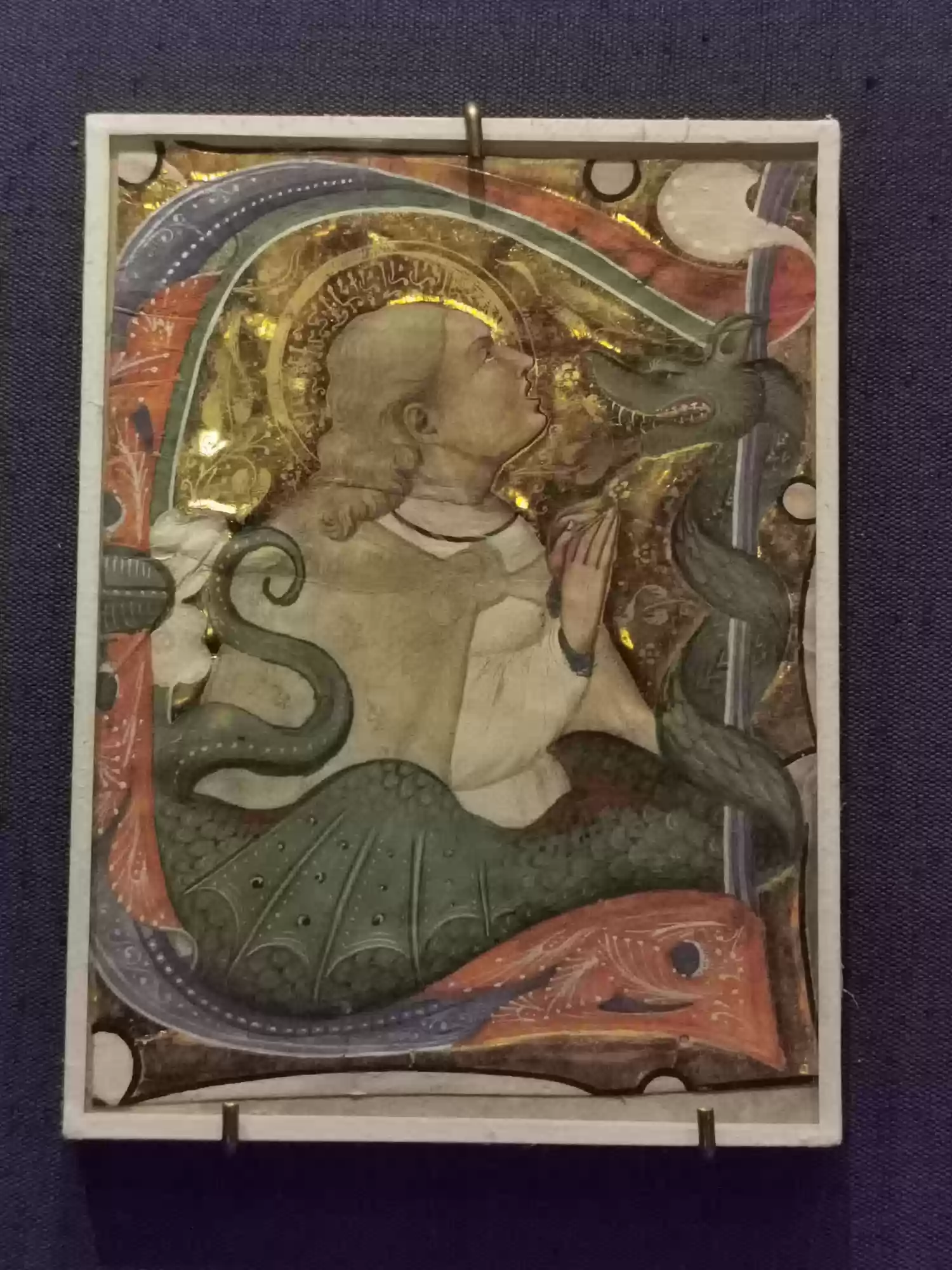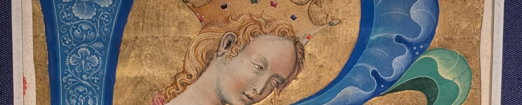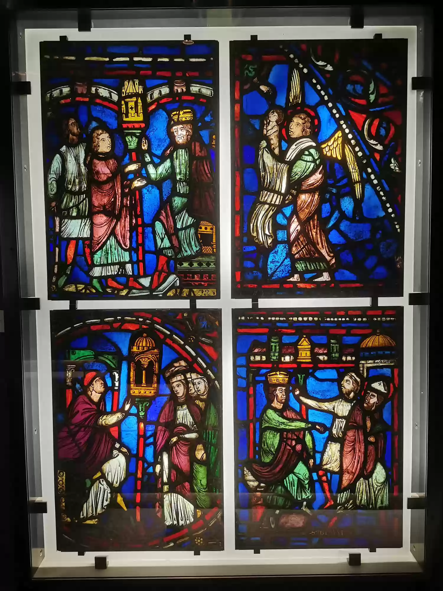 Stained glass windows depicting the life of Saint, 13th century. Master of Cesi, Assumption of the Virgin, 13th century. A bishop is accused of simony by two fornicators, pleads his case to the archbishop of another province, Toulouse, ca. 1340. Adoration of the magi, Sienna, mid-14th century. God creating the stars, Siena, 15th century. Northern Italy, first half of the 15th century. Northern Italy, first half of the 15th century. Saint Catherine of Alexandria, Lombardy, mid-15th century. Meal of Christ with Zachaeus in Jericho, and the gate of Jerusalem, Tournai (Flanders), ca. 1460-1470. Julius Caesar welcomes the Germanic embassador, Bourges or Paris, ca. 1485. Saint Agatha, Sienna, ca. 1500. Nativity, Sybils and the Vision of Augustus, Flanders, early 16th century. Madonna and child, Malines school, ca. 1500. Saint Agnes, Malines school, ca. 1500. Monet Labels