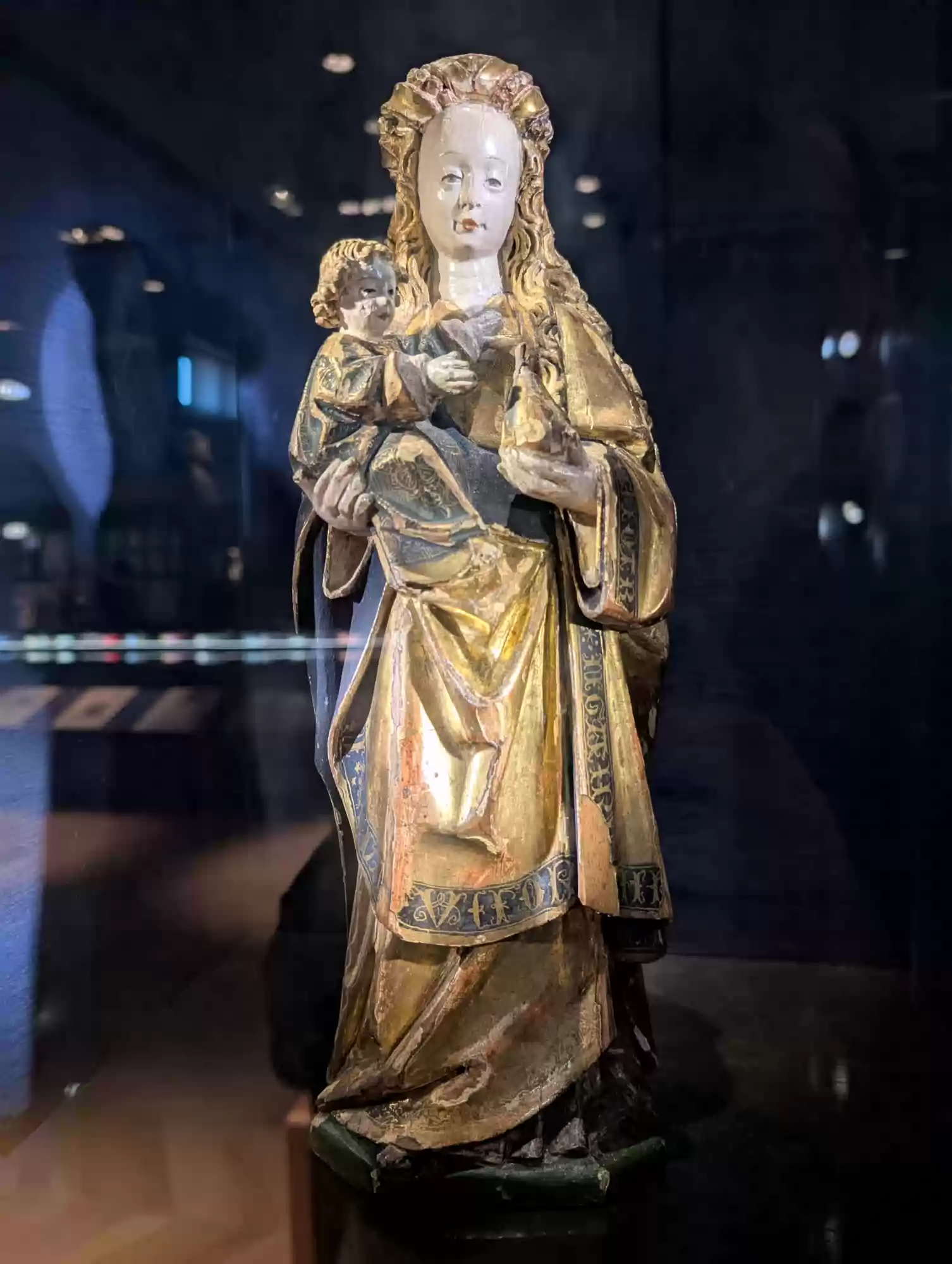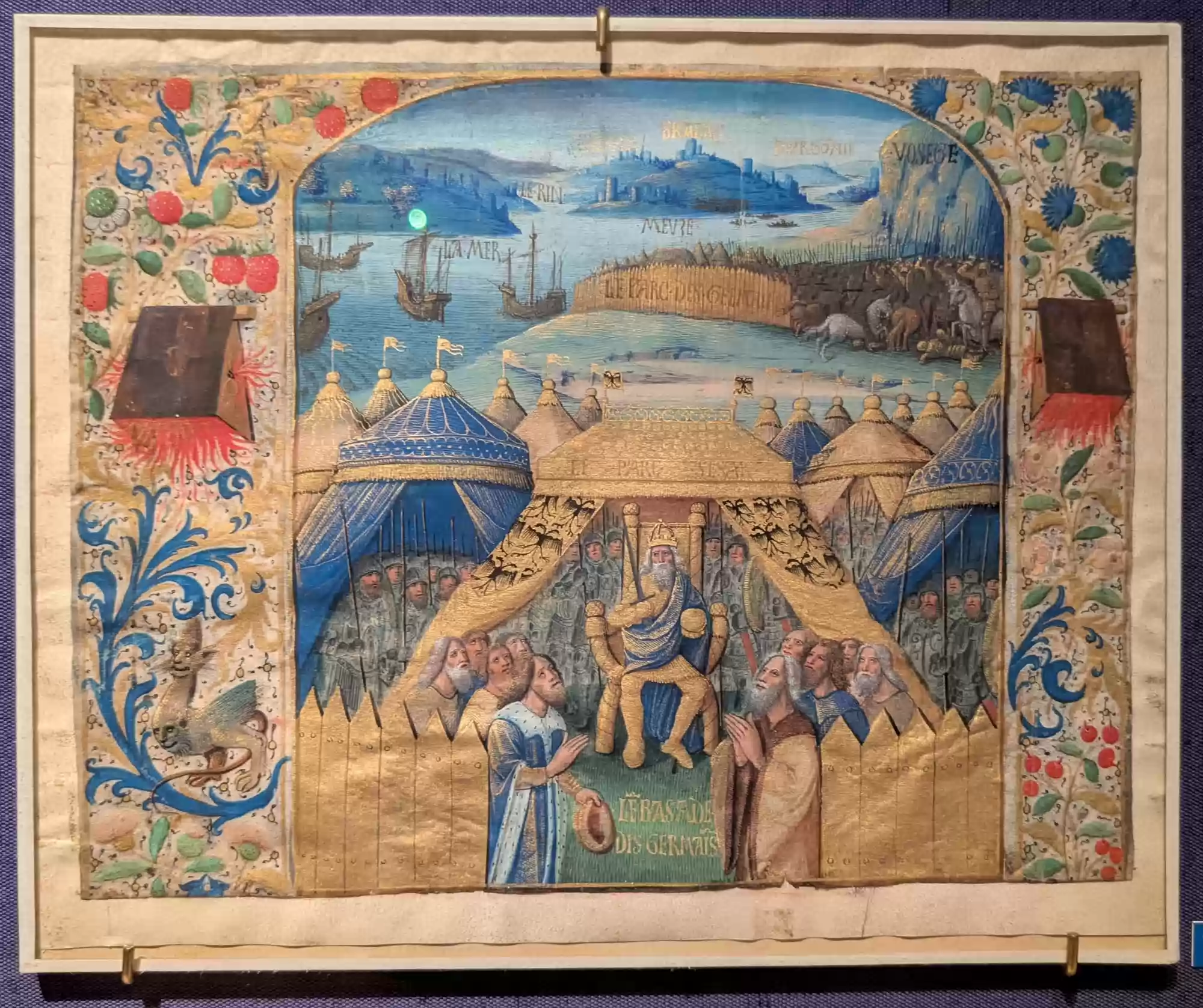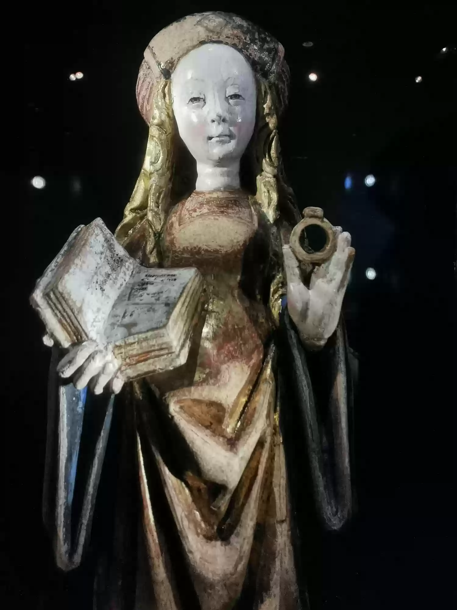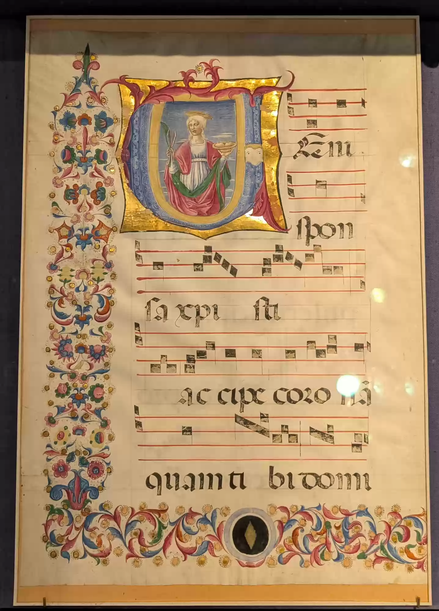 Stained glass windows depicting the life of Saint, 13th century. Master of Cesi, Assumption of the Virgin, 13th century. A bishop is accused of simony by two fornicators, pleads his case to the archbishop of another province, Toulouse, ca. 1340. Adoration of the magi, Sienna, mid-14th century. God creating the stars, Siena, 15th century. Northern Italy, first half of the 15th century. Northern Italy, first half of the 15th century. Saint Catherine of Alexandria, Lombardy, mid-15th century. Meal of Christ with Zachaeus in Jericho, and the gate of Jerusalem, Tournai (Flanders), ca. 1460-1470. Julius Caesar welcomes the Germanic embassador, Bourges or Paris, ca. 1485. Saint Agatha, Sienna, ca. 1500. Nativity, Sybils and the Vision of Augustus, Flanders, early 16th century. Madonna and child, Malines school, ca. 1500. Saint Agnes, Malines school, ca. 1500. Monet Labels