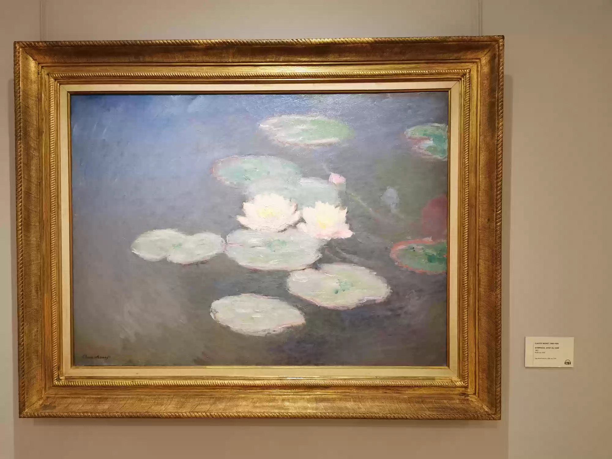 Impression Soleil Levant (Impression sunrise), the 1872 Monet painting that gave its name to Impressionism. Monet, Portrait of Michel Monet with a pompom hat, 1880. Claude Monet, Beach in Pourville, sunset, 1882. Monet, Sasso valley, sun effect, 1884. Claude Monet, Castle of Dolceacqua, 1884. Monet, Seine in Giverny, 1885. Claude Monet, Portrait of Poly, 1886. Claude Monet, Creuse valley, evening, 1889. Monet, Rouen cathedral: sun effects, end of day, 1892. Monet, Norway: red houses in Bjornegaard, 1895. Monet, Norway landscape: blue houses, 1895. Monet, Water lilies, evening effect, 1897. Monet, Water lilies, 1903. Monet, Water lilies, 1916-1918. Claude Monet, Waterlilies, 1914-1917. Monet, Water lilies, willow reflecting, 1916. Middle ages and RenaissanceSwords Labels