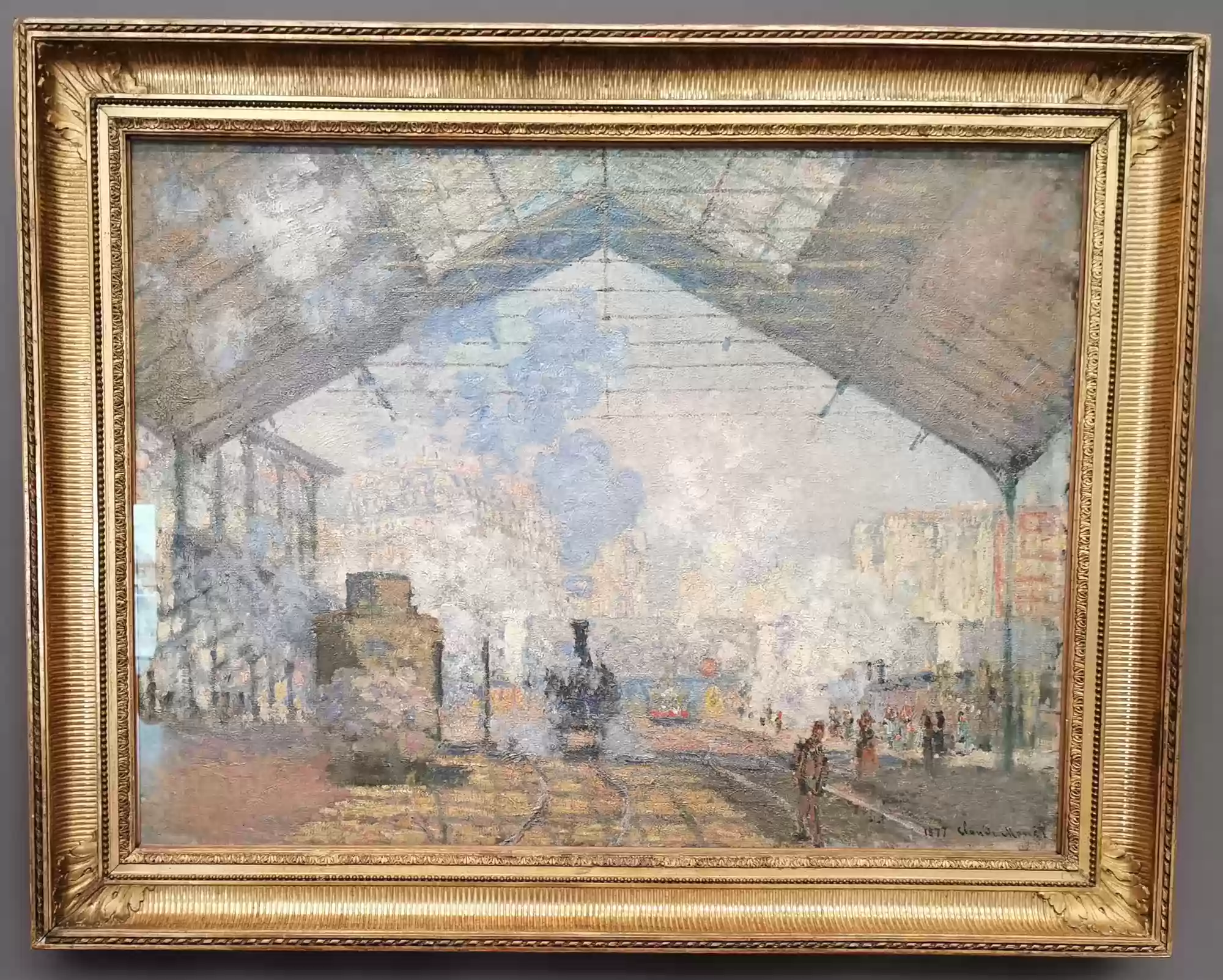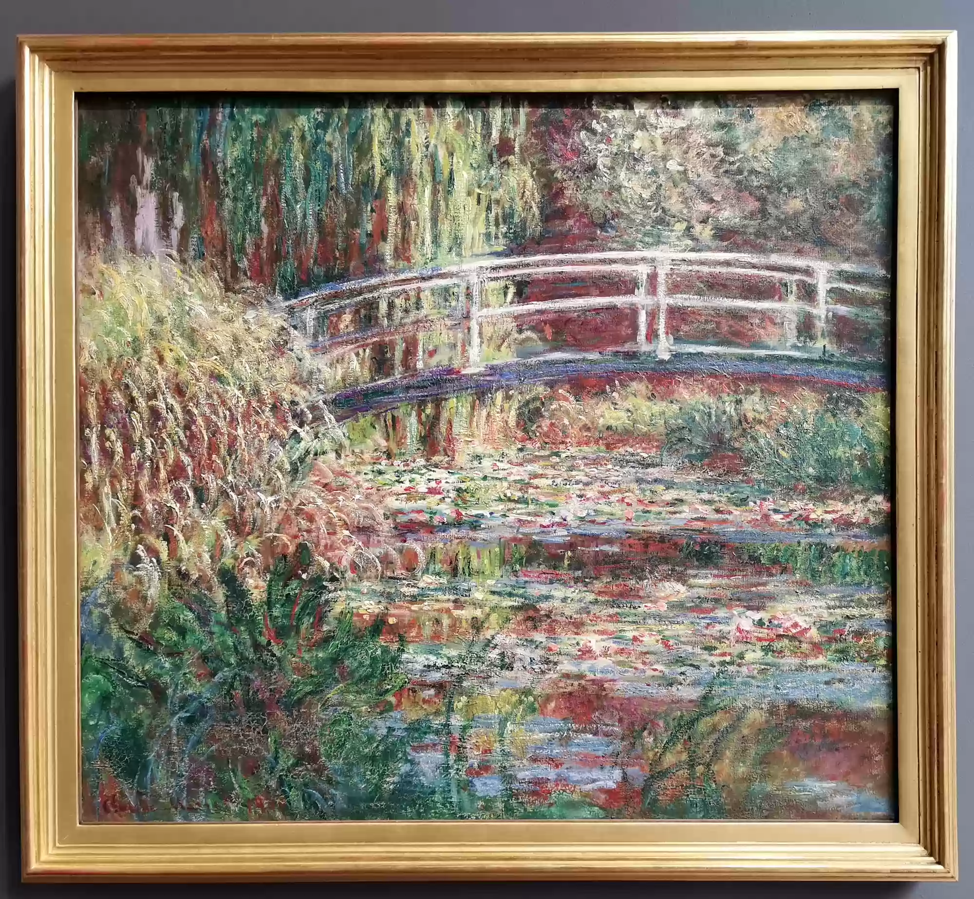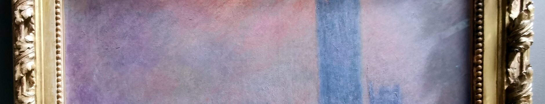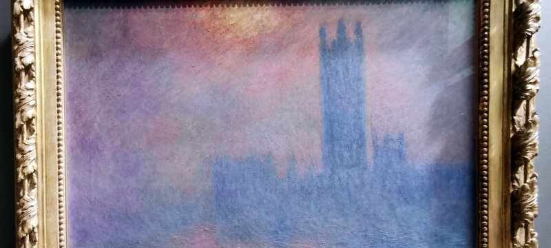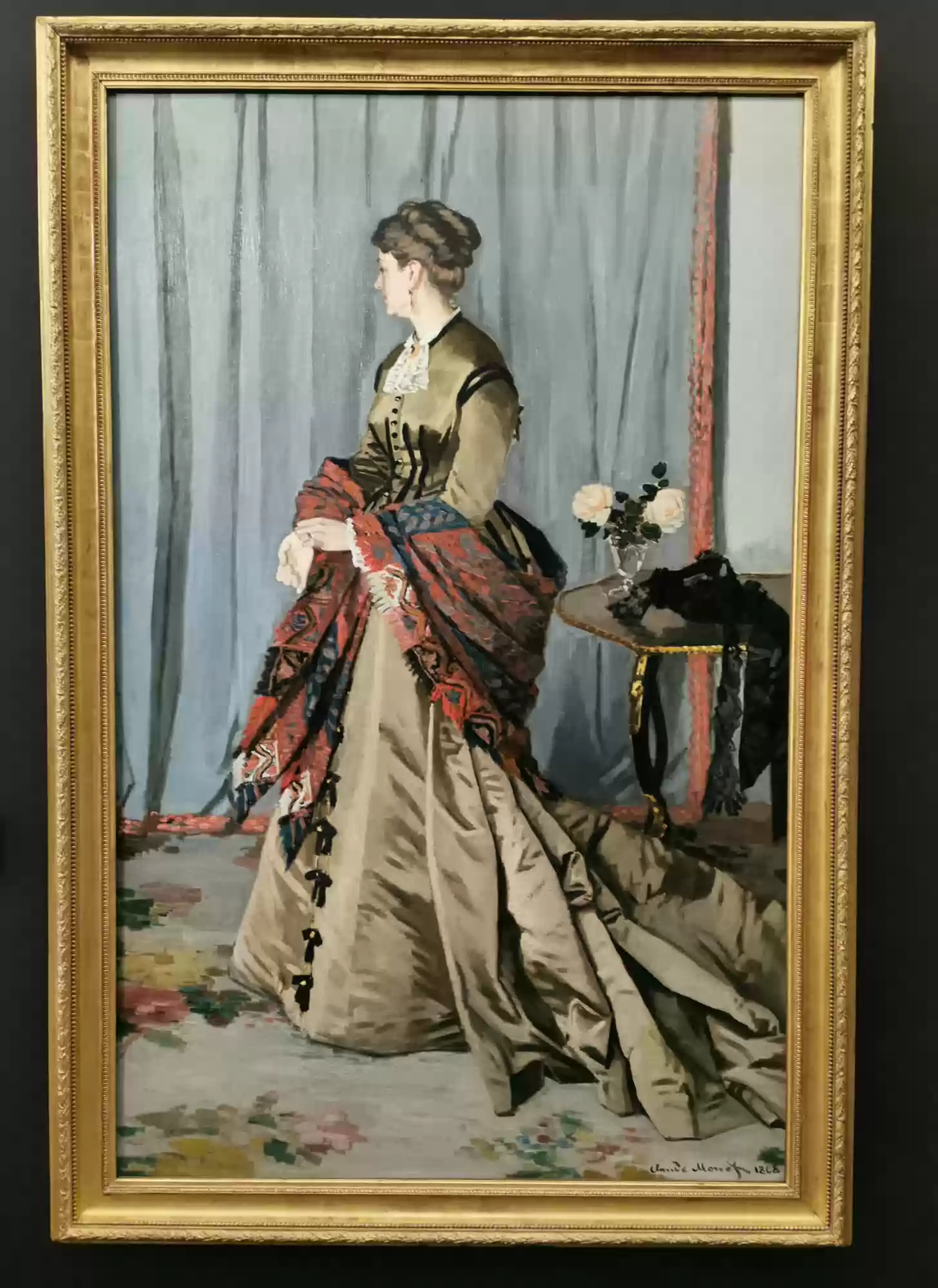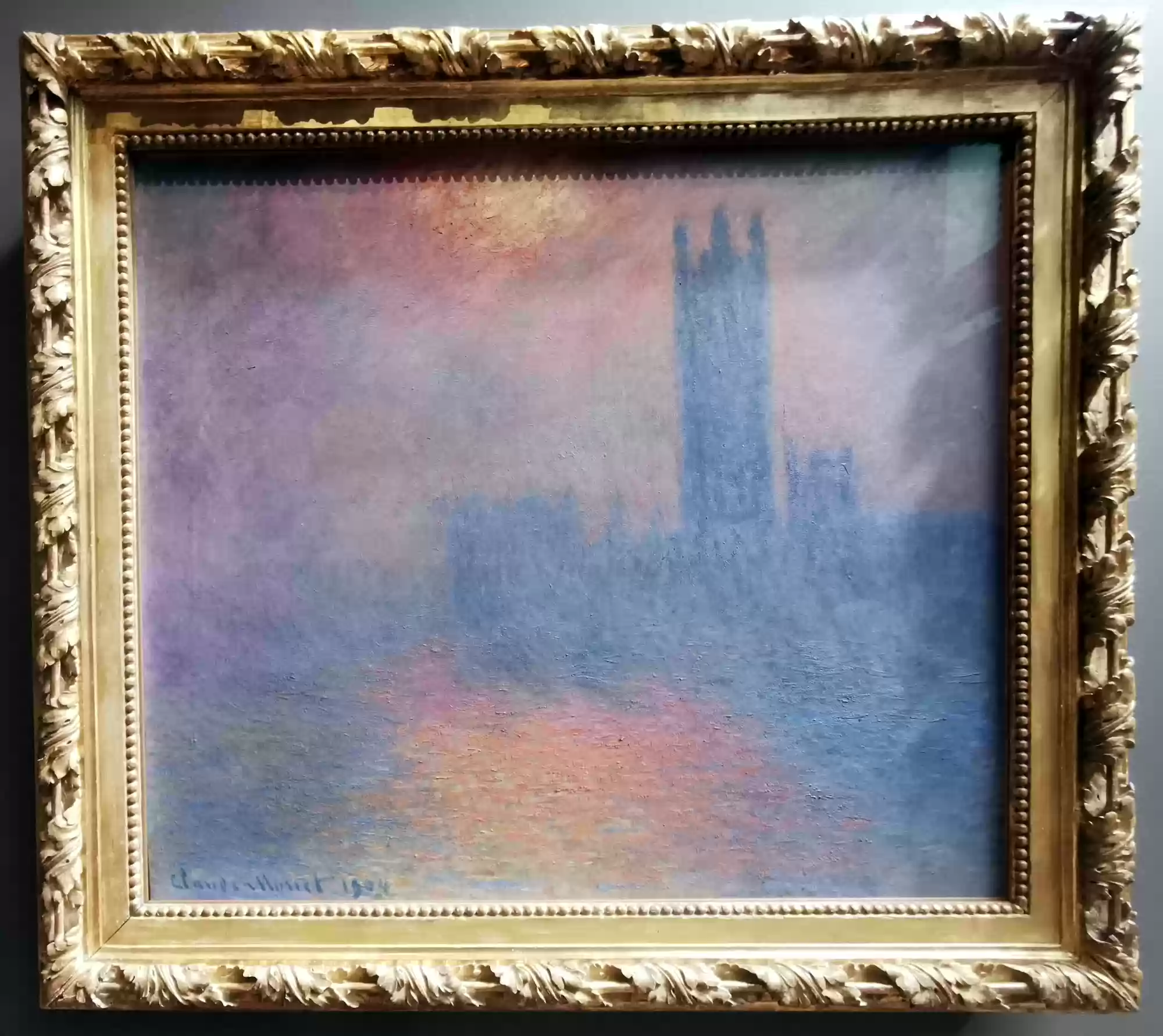Claude Monet, Luncheon on the grass, 1865-1866, left unfinished (an attempt to outperform Manet). Claude Monet, Madame Louis Joachim Gaudibert, 1868. Claude Monet, The magpie, 1868-1869. Claude Monet, Madame Monet on a sofa, ca. 1871. Monet, Rouen cathedral. Claude Monet, Inside an apartment, 1875. Pierre-Auguste Renoir, Portrait of Claude Monet, 1875. Claude Monet, Saint-Lazare station, 1877. Claude Monet, Camille on her deathbed, 1879. Camille Monet was Claude's wife. Claude Monet, Ice melting on the Seine river, 1880. Claude Monet, Villas in Bordighera, 1884. Claude Monet, Water lillies, pink harmony, 1900. Claude Monet, London, the Houses of Parliament, Sunlight Opening in Fog, 1904. ManetVan Gogh Labels