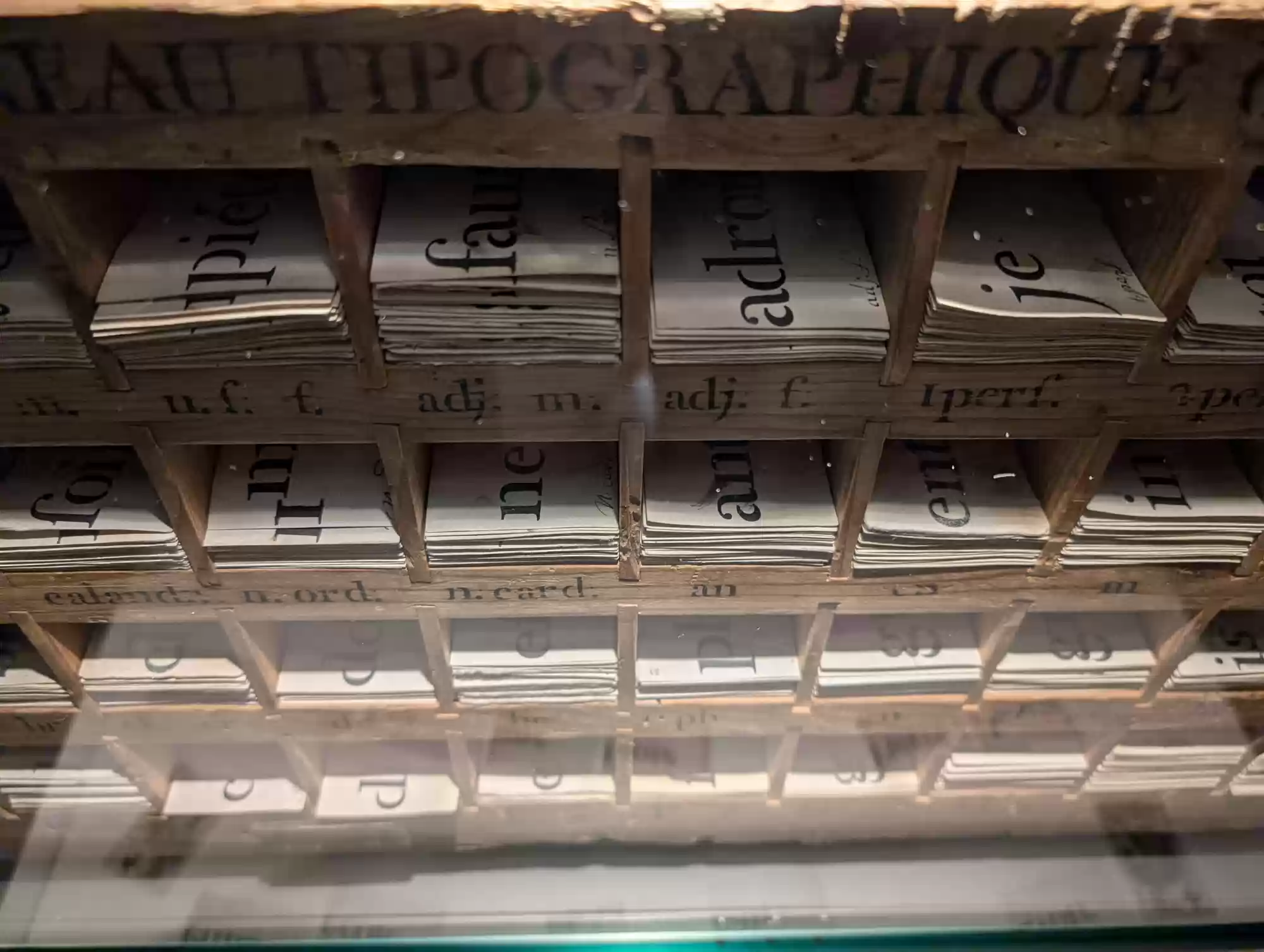 Tipographic desk. Players may compose words and sentences using cards with pre-written syllables.