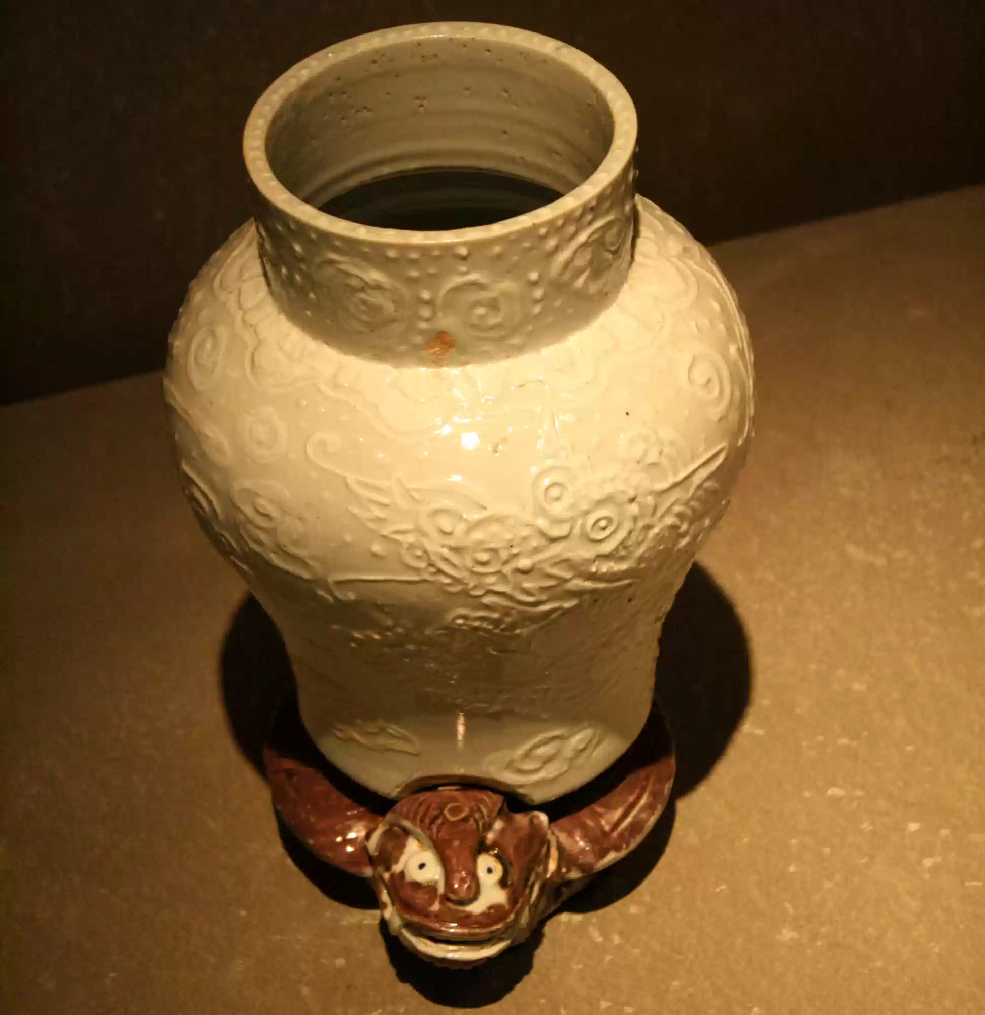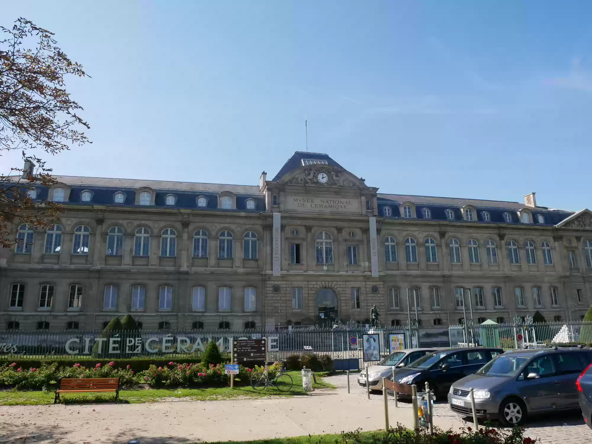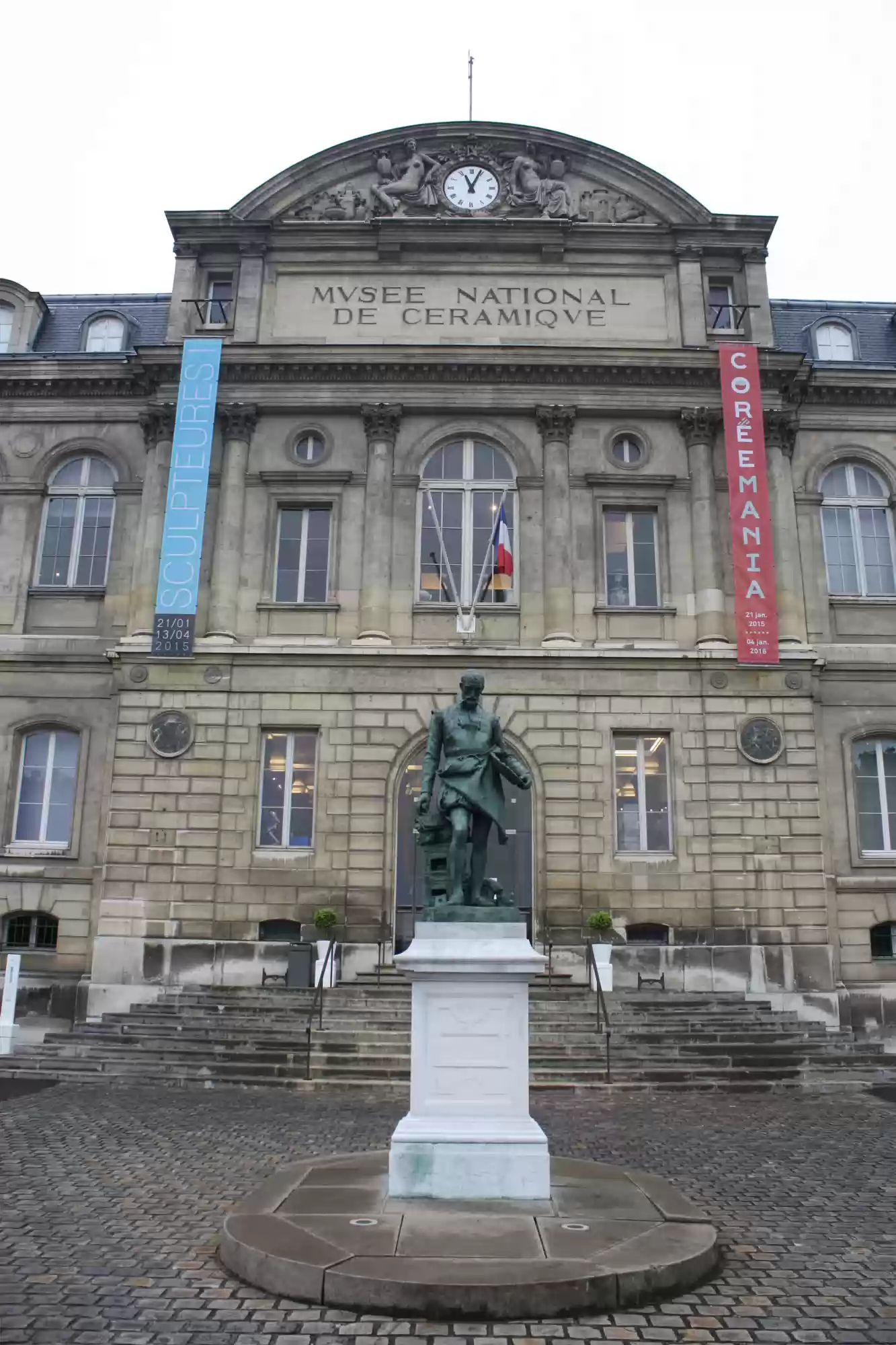 Sèvres porcelain factory and museum, founded in 1740 in Vincennes and transfered in 1756 in Sèvres. Ceramic factory. Gardens behind the ceramic factory. From Kyongju, Korea, 5-6th centuries. Celadons. Celadon with relief chrysanthemums at the bottom, Kangjin, Korea, 11th century. Celadon with relief chrysanthemums at the bottom, Kangjin, Korea, 11th century. Celadon: Wine pitcher, Kangjin, Korea, 12th century. Celadon from Kangjin, Korea, 13th century. Vase with cranes in clouds, Kangjin, Korea, 14th century. Epitaph of Gul de Soju, Korea, 1698. The text was located inside a tomb. Vase with turtle base, Korea, ca. 1880. Plate with turtle decoration, Korea, 19th century. Plate, Jingdezhen, China, 1340. Budai, Dehua, China, 1662-1722. Buddhic lion, Dehua, China, 18th century. Spanish and Italian ceramics, 14-15th centuries. Seoul vase, Sèvres, 1900. Rodin museumPalais de Tokyo Labels