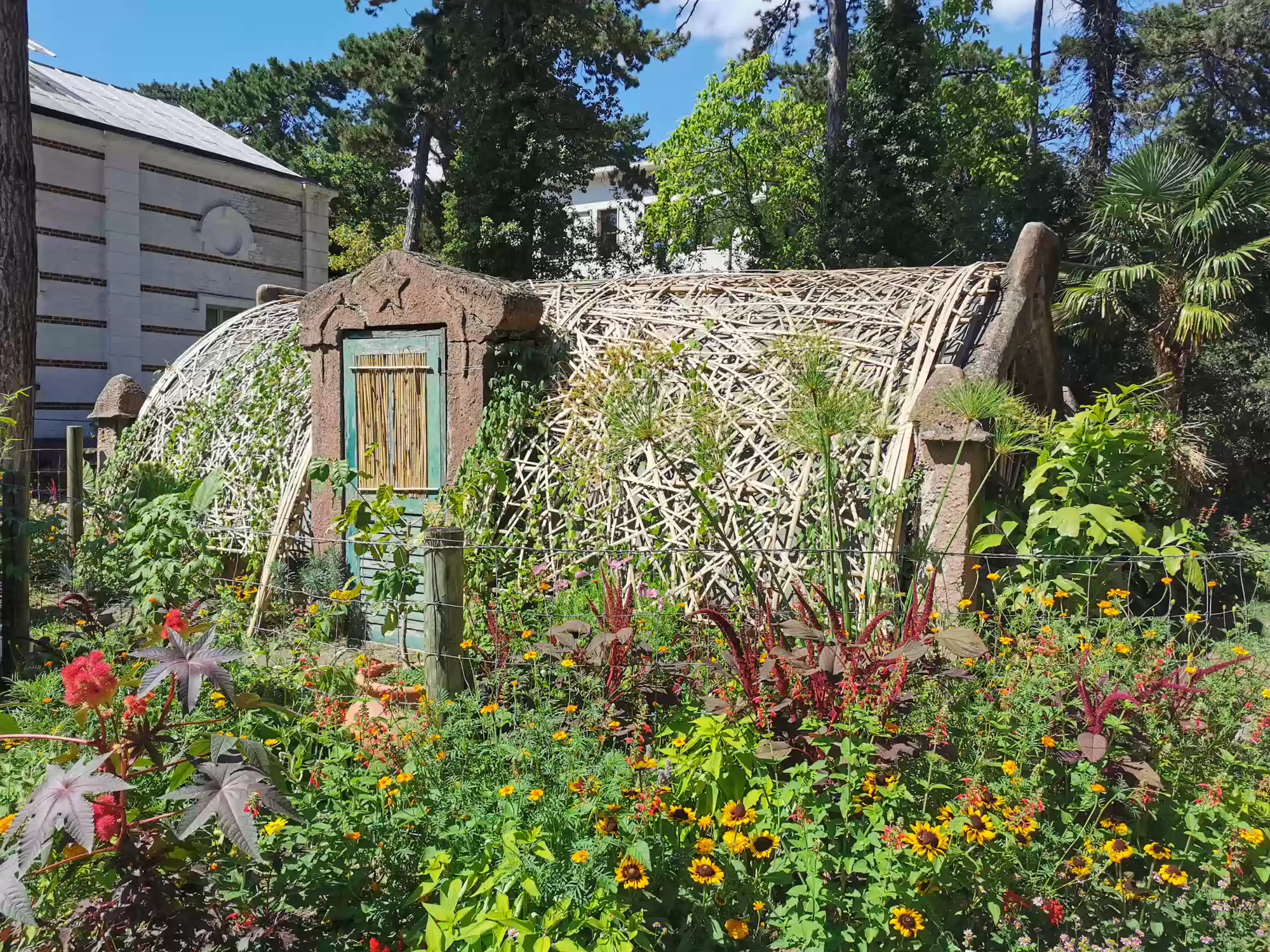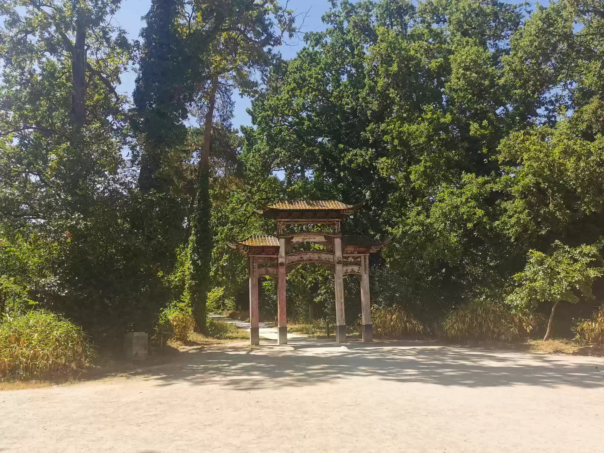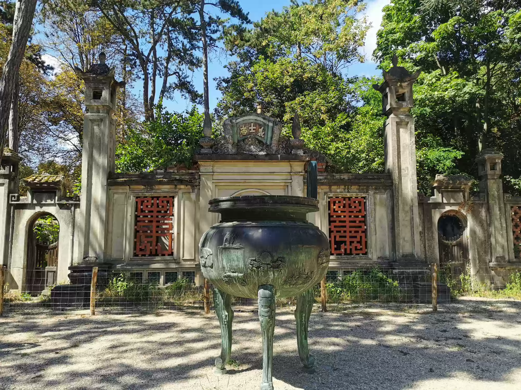 Remnant of the 1899-1939 colonial garden, home to the 1907 colonial exhibit, now used as a tropical agronomy garden. Cochinchine pavilion. Dahomey greenhouse, 1900. Indochine pavilion. Morocco pavilion. Guyana pavilion. Palais de la Porte Dorée Labels