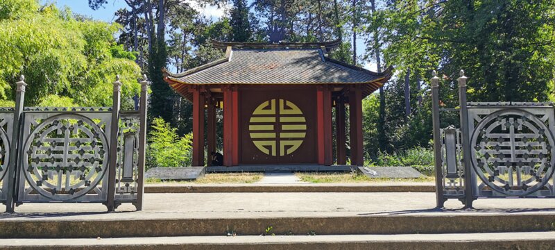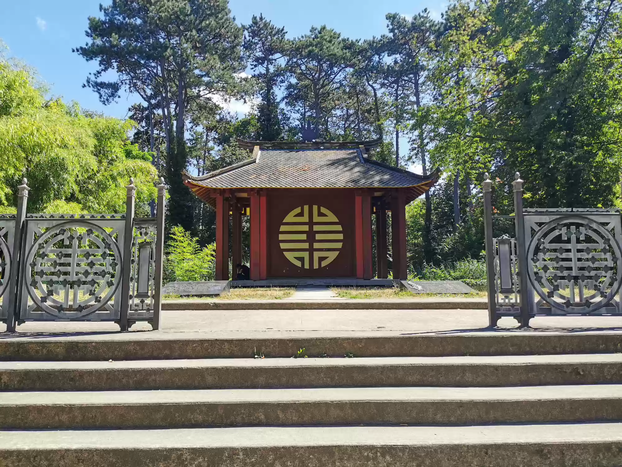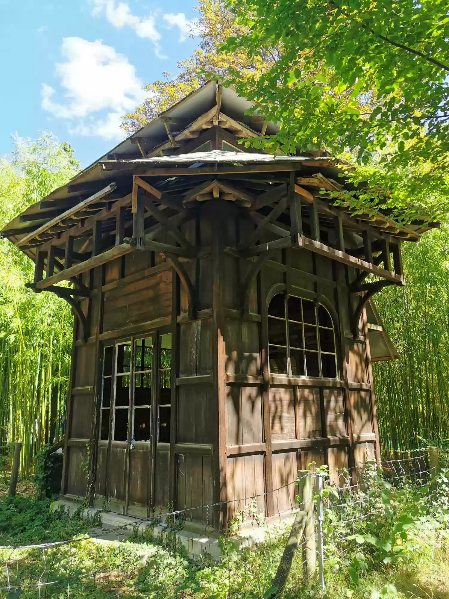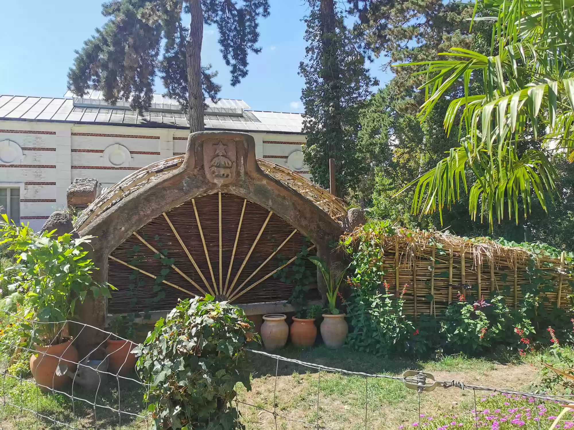 Remnant of the 1899-1939 colonial garden, home to the 1907 colonial exhibit, now used as a tropical agronomy garden. Cochinchine pavilion. Dahomey greenhouse, 1900. Indochine pavilion. Morocco pavilion. Guyana pavilion. Palais de la Porte Dorée Labels