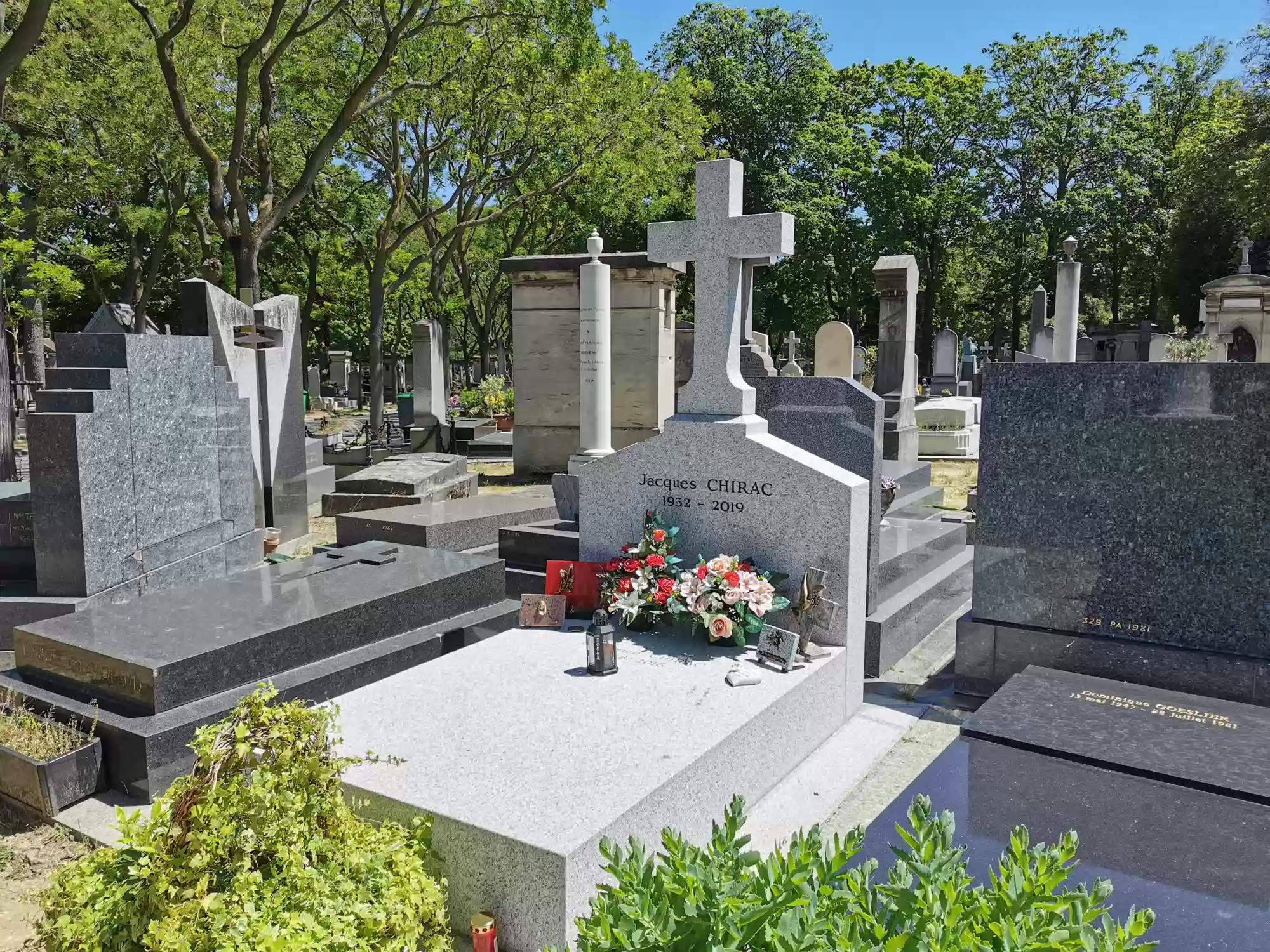 Montparnasse cemetery. Montparnasse cemetery. Montparnasse cemetery. Tomb of Jacques Chirac, 1932-2019, President of France 1995-2007. Montparnasse cemetery. Tomb of Serge Gainsbourg, 1928-1991. Labels